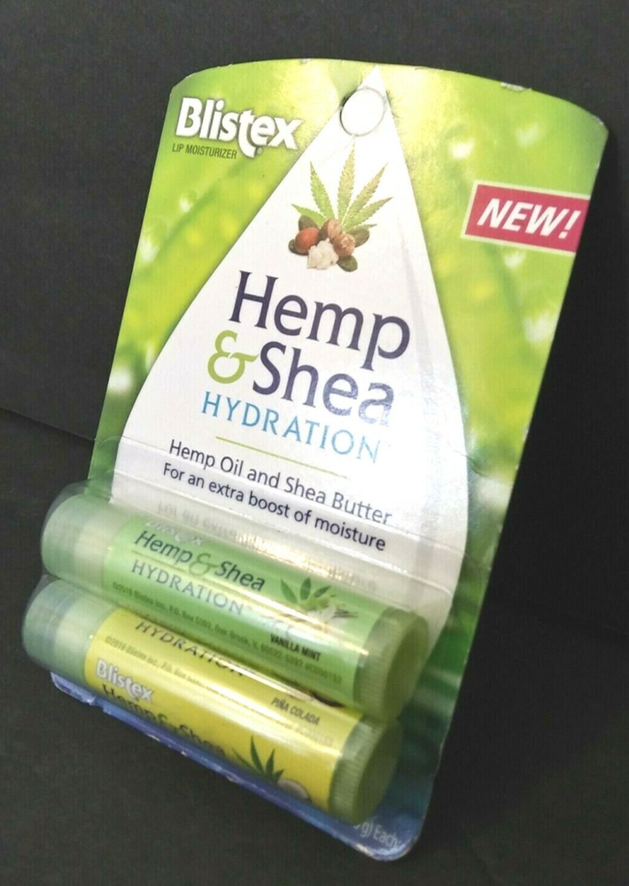 Blistex Adult Lip Balm Hemp And Shea Hydration Vanilla Mint And Pina Colada NEW The Blistex Adult Lip Balm in Hemp and Shea Hydration combines nourishing ingredients like Shea Butter and Jojoba Esters to provide deep hydration for dry, chapped lips. The lip balm comes in a delightful vanilla mint and pina colada flavor, making it a treat for your lips. With a PAO of 12 months, this product is perfect for all skin types and is proudly made in the United States by the trusted brand Blistex.