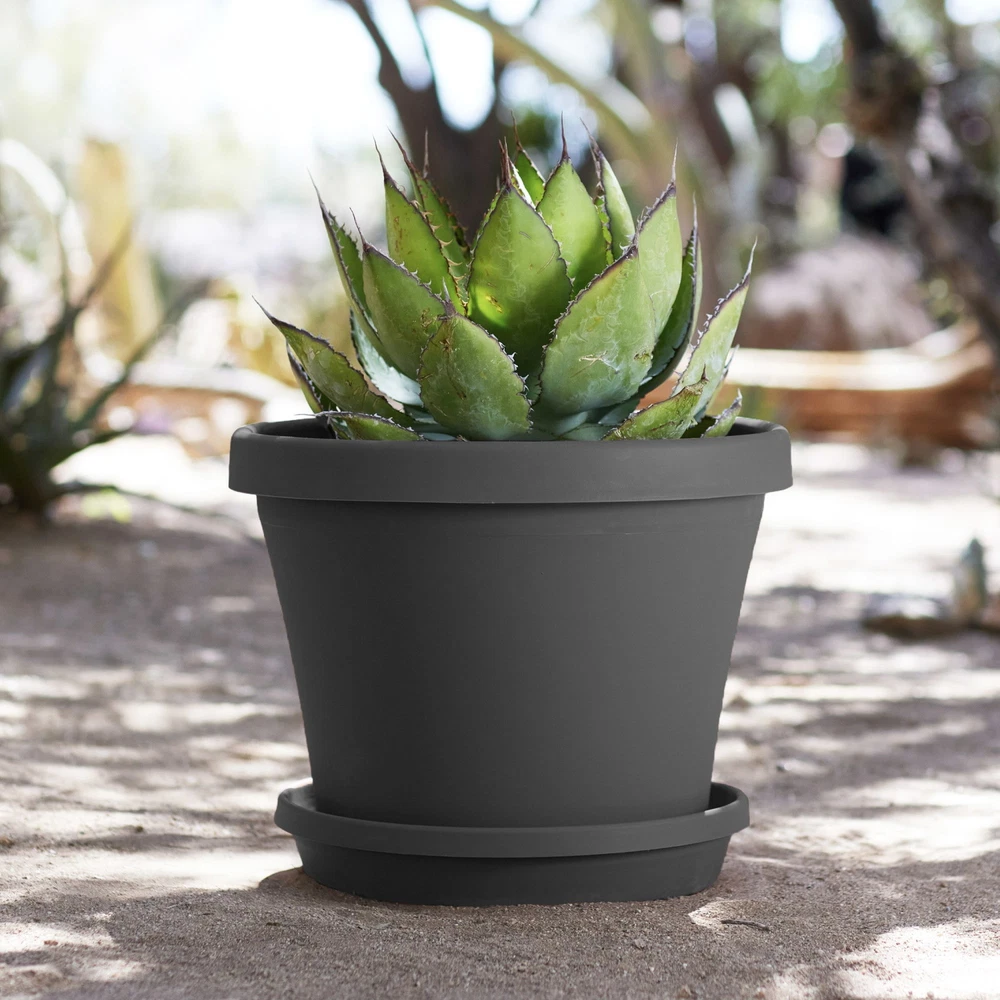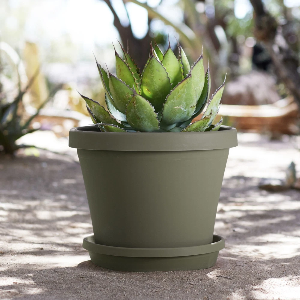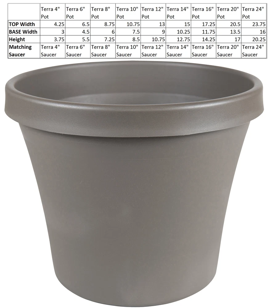 It’s easy to see why the Terra Planter by Bloem is a fan favorite; It has the look of a traditional clay pot, yet is made from durable polypropylene material, enabling years of functionality and reliable use. This tapered planter is a tough, lightweight alternative to terra cotta and other ceramic planters. It has six pre-drilled drainage holes to protect against overwatering and allow plant roots to absorb water as needed. Matching saucer sold separately. Capacity: 8 Gallons / Size: 17.25 in. Top width x 11.75 in. Bottom width x 14.25 in. Height. Classic clay pot design blends effortlessly in any indoor and outdoor setting Pre-drilled drainage holes to prevent root rot Durable and fade-resistant construction with a matte finish
