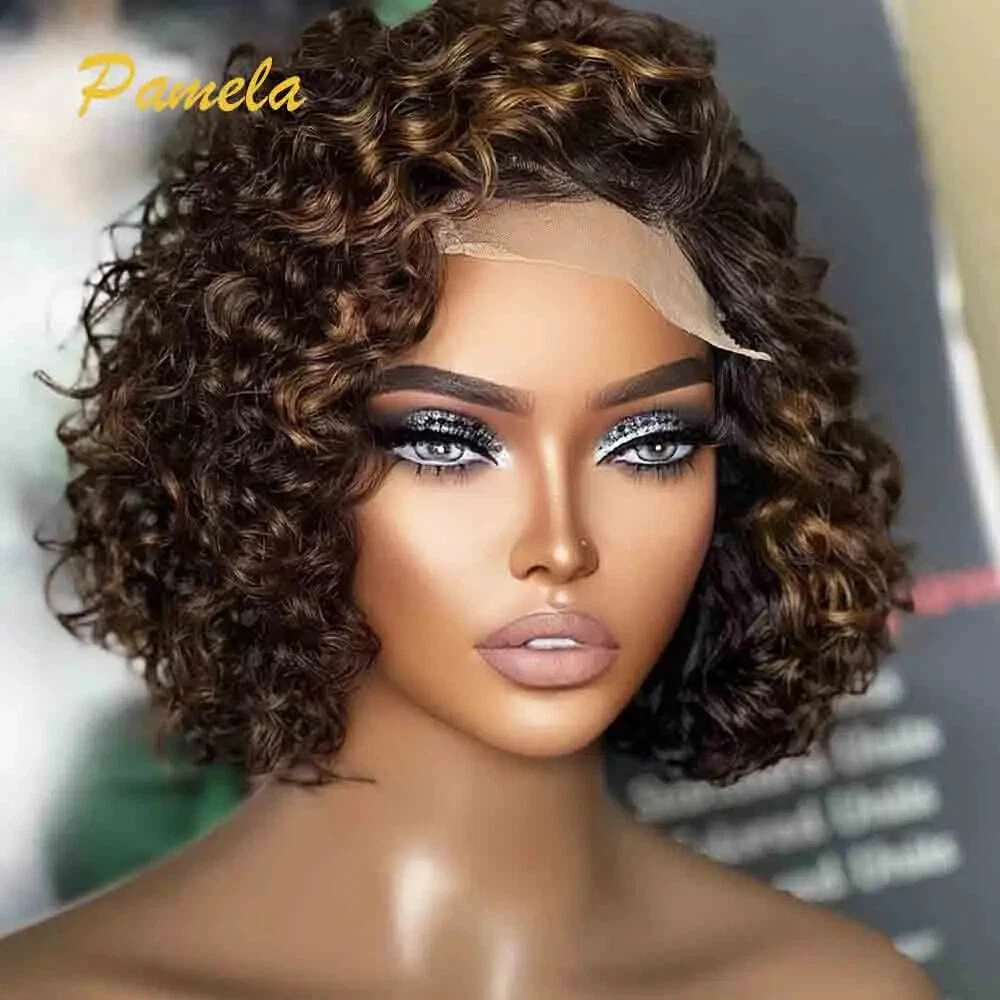 $ 75.9Curly Lace Front Wig Pre Plucked Human Hair Glueless Short Bob