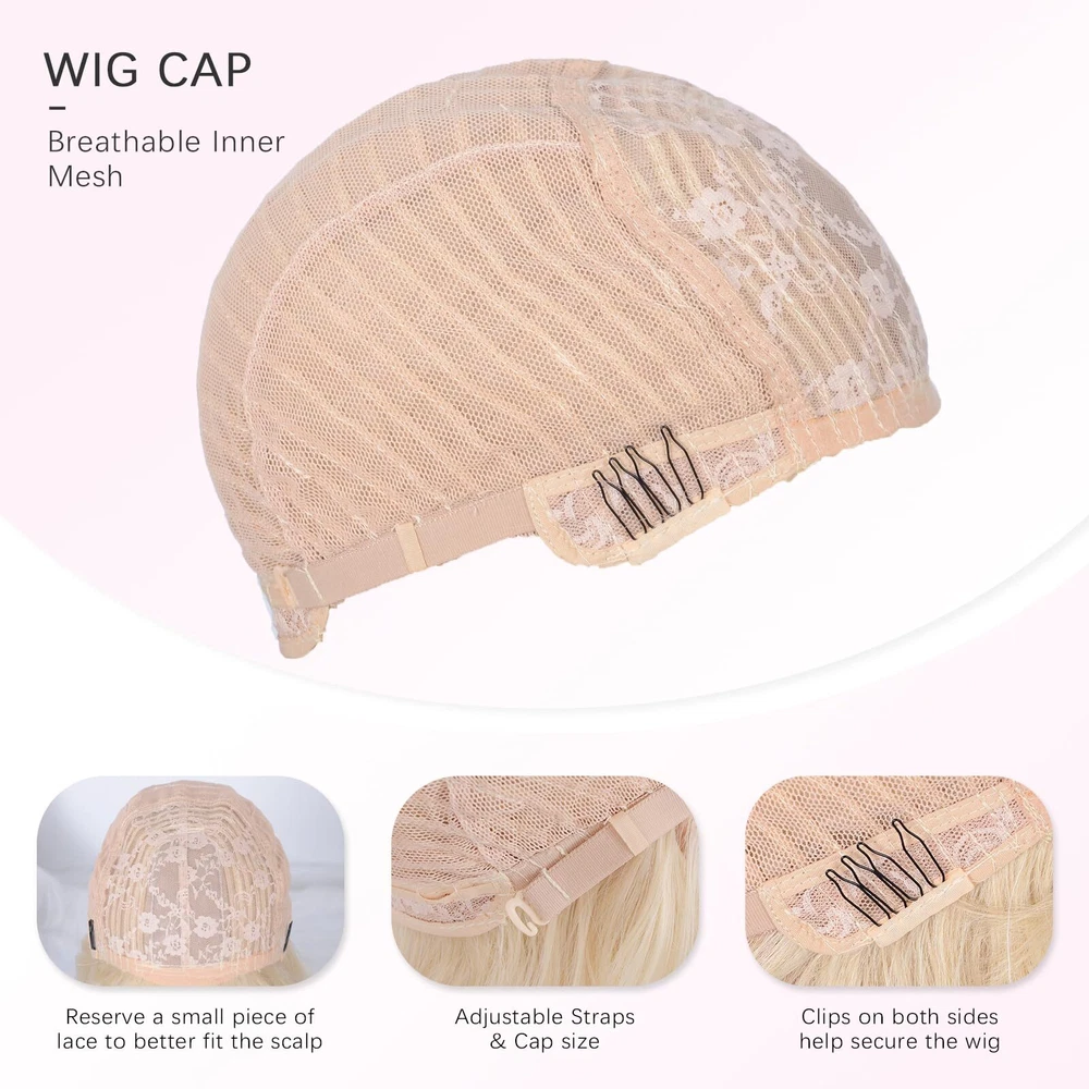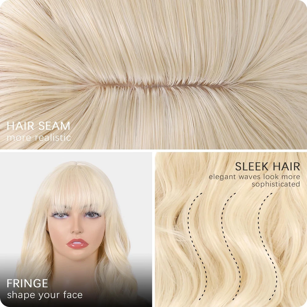 【Wigs Styling】 Long wavy wig is the current trend of women's wigs, which is suitable for all kinds of styling. The bangs that can be trimmed make the wig more slimming to your face shape. This long blonde wavy wig is natural and comfortable to wear, making it easier for you to stay beautiful. 【High Quality Wigs Material】 The blonde wig with bangs is made of 100% high quality heat resistant synthetic fiber, soft, comfortable without odor and not easy to knot. With a hair dryer or curling iron, you can design your favorite style for the blonde wig. Tip:The temperature should be below 150°C. 【Wig Cap Structure】This long blonde wig cap average size (21"-22.5") This size fits most women. There are two elastic bands and clips inside the hair cap, you can adjust the bands according to your head shape and don't have to worry that the wig will fall off. The lightweight and breathable wig cap can make you feel comfortable wearing this blonde wig for women all day long. 【Suitable for Multiple Occasions】This blonde curly wig is suitable for daily use, it can also allow you to attract attention at parties, vacations, graduations, music festivals. You can wear this long wave blonde wig with bangs to weddings, Halloween, fashion shows, anywhere you want to go, you can also give it as a gift to your friends, family. 【After-sale Service】If you have any questions with this long blonde hair wig, please feel free to contact us. we will reply within 24 hours.we are happy to serve you to help you solve the problem.