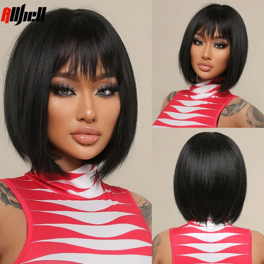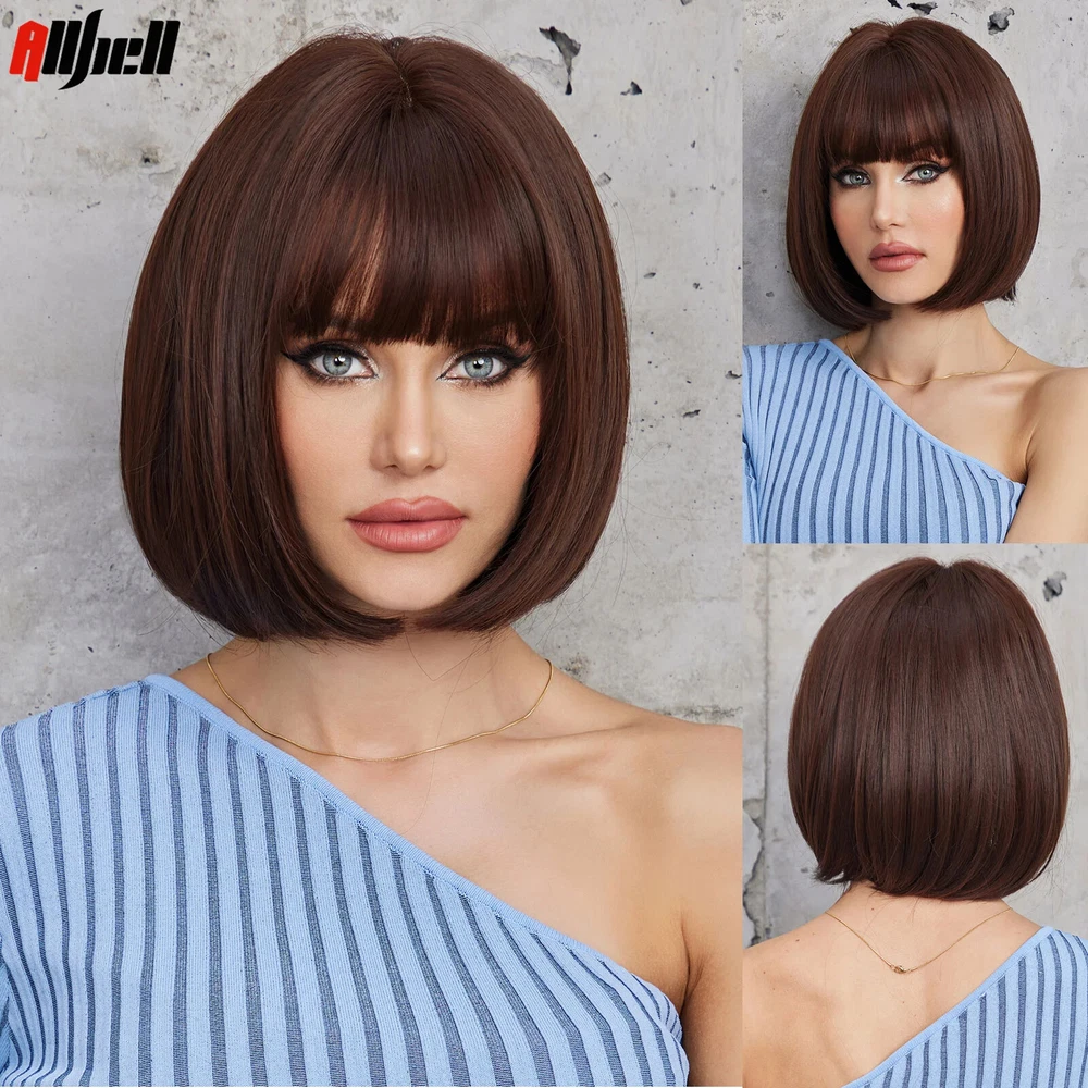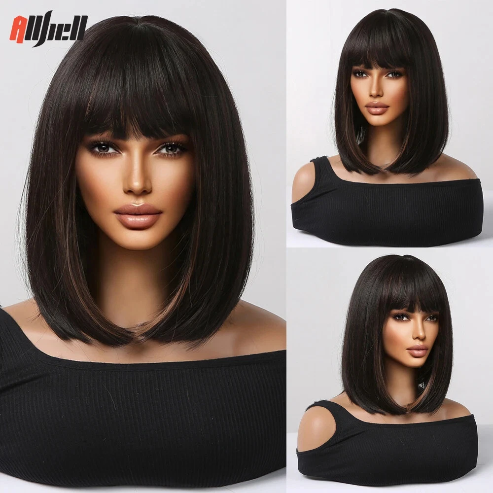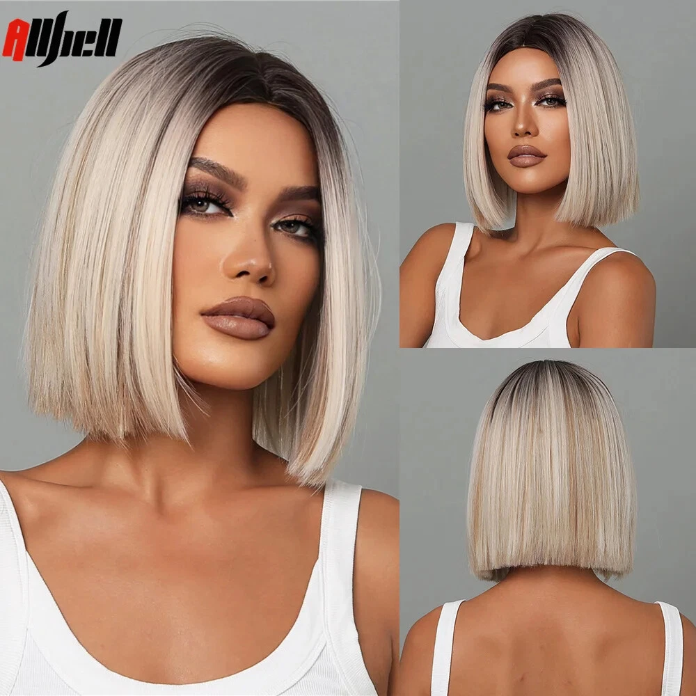 Short Straight Synthetic Wigs for Women Blonde to Brown Ombre Bob Wigs with Bangs Daily Cosplay Party Heat Resistant Fake Hair 【Adjustable size】: The hair cap of synthetic wigs is average size. There are two adjustable elastic bands inside the wig, which can better fit different head shapes and suit most people. 【Premium material】: Our synthetic wigs is made of heat resistant fiber. You can do any hairstyle you like within a safe temperature range. It is not easy to tangles and frizzy, giving you the soft feel 【Exquisite design】: The synthetic wigs design stylish and beautiful, you can use it to make a variety of shapes, very suitable for daily use, party and cosplay, to help you create the perfect date, concert, role-playing, theme party or video shooting. 【Warm Notice】: The color will show some differences on different monitors. If you have sensitive skin, please be aware that using synthetic wigs may cause dryness, heat, or itching of your scalp, so please make sure if you are allergic to wigs. Product Display All Styles Display