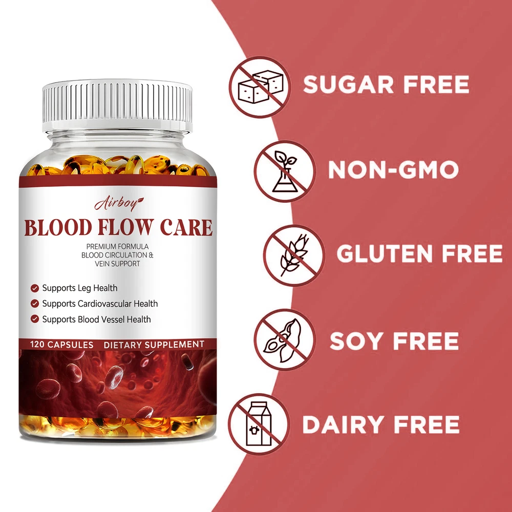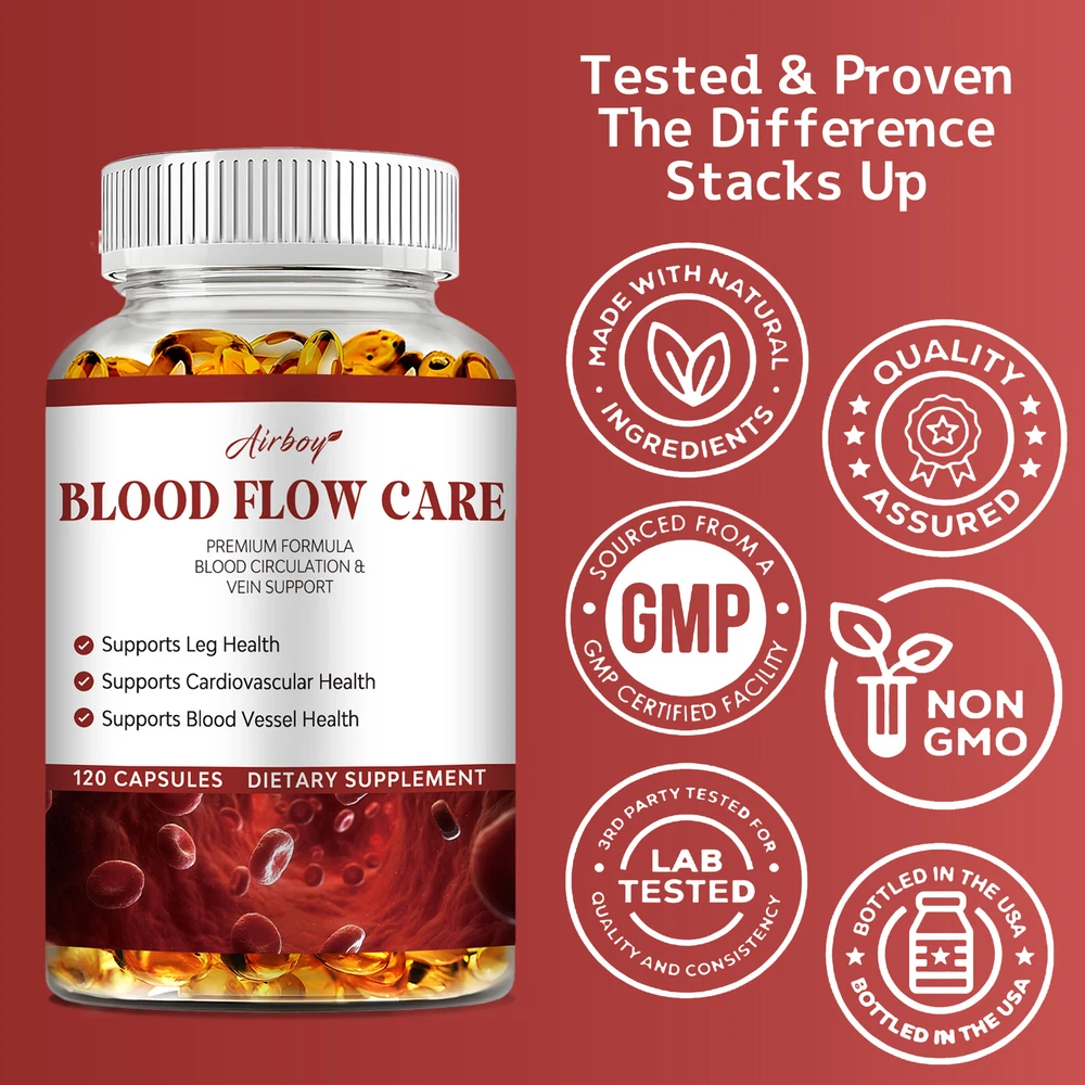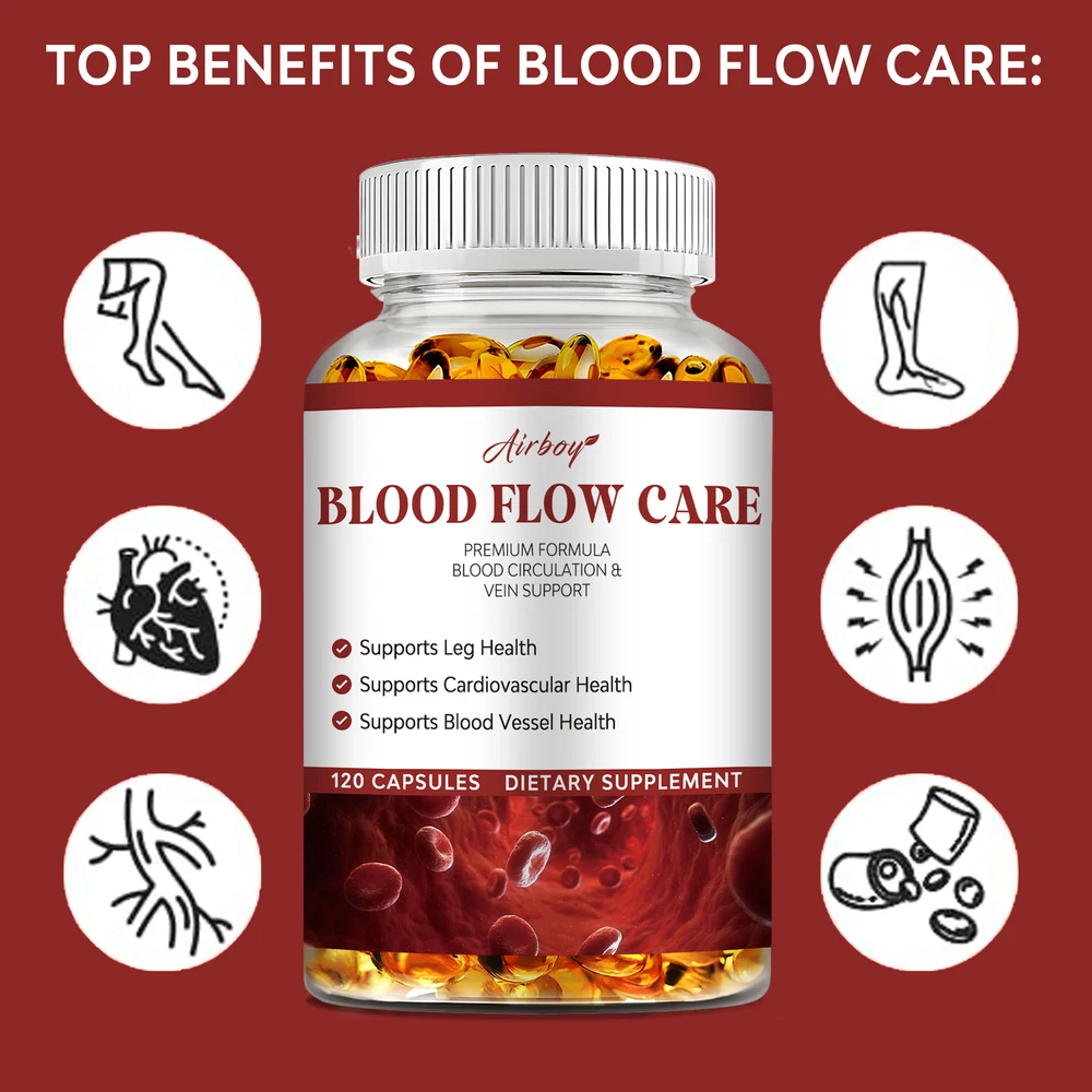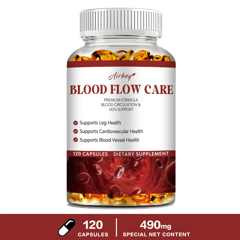 Effects: Cardiovascular Health,Heart Health Ingredients: Hawthorn, Ginger Root, Cayenne Pepper Directions: Take 2 capsules once daily after a meal. Shipping: Ships within 48 hours on working days. Shelf life: 2 years Description: Our Blood Flow Care supplement acts as a nitric oxide booster to help reduce muscle cramps, fatigue, varicose veins. Blood Flow Care can enhance leg, heart and cardiovascular health while giving you more stamina to stay active. A better circulatory system can enhance energy and vitality in the body. Document