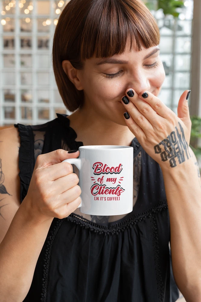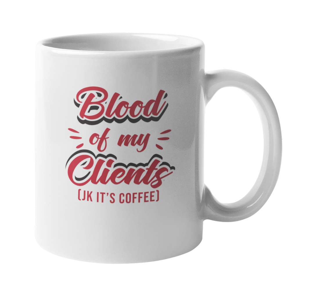 Blood Of My Clients. Joke It's A Coffee. Quote Coffee & Tea Mug