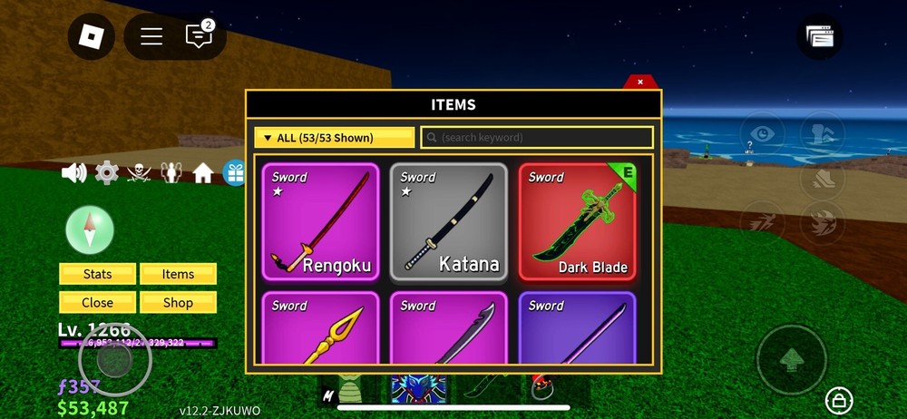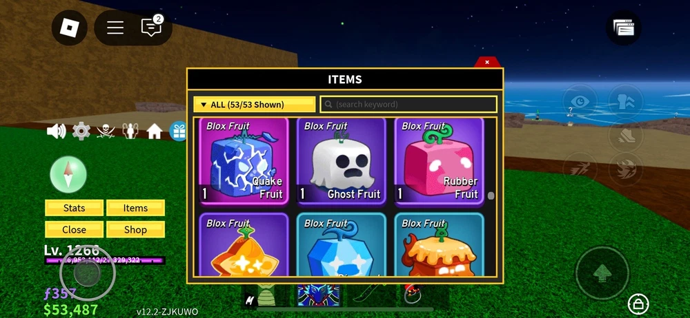 Blox Fruit Account with Perm Kitsune, Dough, Rocket & Dark Blade