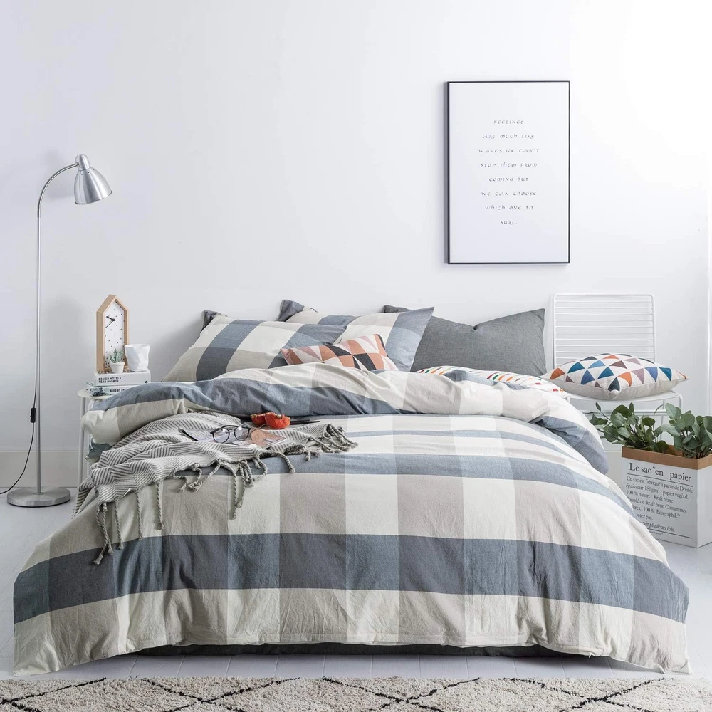 Store New Arrivals Add to Favorite View Feedback Contact Blue Checkered Duvet Cover Queen Size 100% Washed Cotton Plaid Duvet Cover Set 3 Pieces 1 Grid Duvet Cover with Zipper Ties 2 Pillow Cases Luxury Soft Blue Checkered Bedding Set Breathable Description Item model number SZJRQC2017041097 Style Modern Pattern Checkered Country of Origin China Theme Checkered,Plaid Cartoon Character Checkered Number of Pieces 3 Unit Count 1 Count Pillowcase Quantity 2 Material Cotton Item Display Dimensions 17 x 12 x 3 inches Age Range (Description) Adult Seasons All Is Discontinued By Manufacturer No Included Components Pillowcase, Duvet Cover Closure Type Zipper Item dimensions L x W x H 17.01 x 13.5 x 2.48 inches Percent Cotton 100 Item Weight 3.4 pounds Pillowcase Length 17 Inches Special Feature Breathable Color Blue Thread Count 400 Product Dimensions 17.01 x 13.5 x 2.48 inches Product Care Instructions Machine Wash, do_not_bleach Size Queen 【100% Washed Cotton】: SUSYBAO checkered plaid duvet cover set made of 100% washed cotton fabric, a raw material handled by special process, will be softer and more comfortable than other fabric, breathable and durable. Soft and comfy sense of touch always gives you a sweet sleep experience. And the thickness of the blue plaid duvet cover set is suitable for all seasons. 【Blue Checkered Duvet Cover Set】: Blue checkered grid plaid duvet cover set, simple but stylish, the shades of dark and light colors soften the visual, adding a sense of layering and elegance to the bedroom, delivers a relax and cozy feel. And the surface of washed cotton fabric was high-temperature ironing double-sided blanch treatment, prominent membrane sense, and wrinkles in a slight degree reflect a sense of old materials and vintage modern look. 【Queen Size Duvet Cover 3 Piece Set】: Includes 1 queen checkered duvet cover measures 90 x 90 inches and 2 pillow cases measures 20 x 26 inches. No PILLOW INSERT and COMFORTER INCLUDE. 【Zipper Closure & Cornre Ties】: Duvet cover finished with a hidden zipper closure and corner ties keep comforter in place; pillow shams with envelope closure. Easy to remove and wash. 【Easy To Care】:Recommend to wash before first use. Machine wash or hand wash in cold water, gentle cycle; sun-dry or hang-dry; tumble dry on low; wash separately; do not bleach; do not dry clean. Product Description We are professional bedding store, aim to make the most comfortable products with good materials.At the same time, we committed to providing customers with high quality and comfortable products, so that customers enjoy a high quality sleep experience. Looking forward to your presence. Luxury Quality & Classic Checkered Plaid Duvet Cover Set: Simple but modern checkered plaid design is easy to surrounded with any room in your house. It is minimalist and stylish, returns your room to nature, conforms to the concept of advocating simple life, and never goes out of style. King Size Duvet Cover Set: 1 x Duvet cover: 90 in x 104 in, 2 x Pillowcases: 20 in x 36 in Queen Size Duvet Cover Set: 1 x Duvet cover: 90 in x 90 in, 2 x Pillowcases: 20 in x 26 in PRODUCT DETAILS 100% Washed Cotton Fabric Our products are made of 100% washed cotton fabric, a raw material handled by special process, will be softer and more comfortable, which featured with breathable, durable, not easy fading and not easy to shrink, brings you a comfortable sleeping experience. And the thickness of cloth is perfect for all seasons. Zipper Closure Design Exquisite hidden zipper design is length enough for you to put your duvet insert, comforter/blanket in and out. And the zipper is sturdy and durable to extend the service life. Concealed Corner Ties Sturdy bow ties was set in four corners of the inside of the cotton duvet cover to keep the insert from shifting. Envelope End Pillow Cases Timeless checked grid plaid pillow cases, smoothly exquisite stitches makes it more durable and the envelope pocket end design is easy to organize. 100% COTTON MATERIAL Research proves that you can get a comfy sleeping experience at night with pure cotton duvet cover set. The features of cotton matrial allowing you to have a peaceful and refreshing sleep all night. SIZE & CARE INSTRUCTION ABOUT US We offer the best prices around on high quality products. Our E-store includes media such as books, movies, music and games while offering electronics, toys, sporting apparel, clothing, tools, general home, garden items and more. SHIPPING We are always working hard to ensure your package arrives as soon as possible. Please understand that some factors like weather, high postal traffic, and the performance of shipping companies are outside of our control. We offer free shipping to the lower 48 states and ship within 2 business days of payment, usually sooner. We do not accept P.O. Boxes. Please provide a physical address. For shipping outside of the continental USA, we only use eBay's Global Shipping Program.The item is shipped to KY and then sent to the rest of the world. International customers are responsible for all duties and taxes. Continue to check out in order to calculate costs for shipping the item to your country. Messages regarding eBay's Global Shipping Program MUST be directed at eBay EXCLUSIVELY. RETURNS We offer a 30-Day Return Policy on items which you are not completely satisfied with. You have the option for a full-refund or an exchange of the item. No returns are available on items shipped outside of the USA. PAYMENT We accept PayPal. CONTACT US This page content is yet to come Please ad us to your favorite seller and visit again later Thank You CUSTOMER SATISFACTION We try our very best to make sure every customer is completely satisfied. If there's a problem, message us! We're happy to help. WE ACCEPT Copyright © 2021 AutoDS. | All Rights Reserved