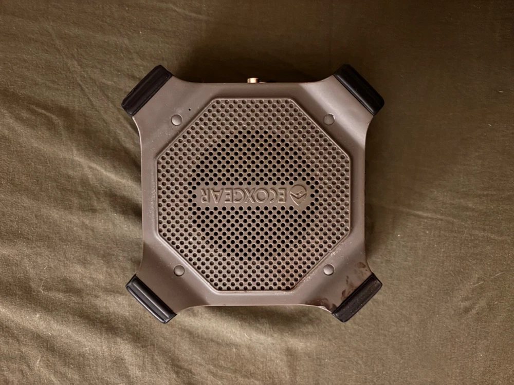The Ecoxgear EcoEdge Plus Waterproof Portable Bluetooth Speaker in blue is a rectangular-shaped smart speaker designed for outdoor use. It features a waterproof and dustproof construction, making it suitable for various environments. This speaker has a wireless Bluetooth connection, allowing for convenient playback from compatible devices. With a maximum output power of 20 Watts, it provides quality audio for outdoor activities. The speaker also includes audio inputs such as USB and input/output ports for charging and wired connections.