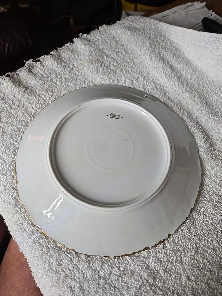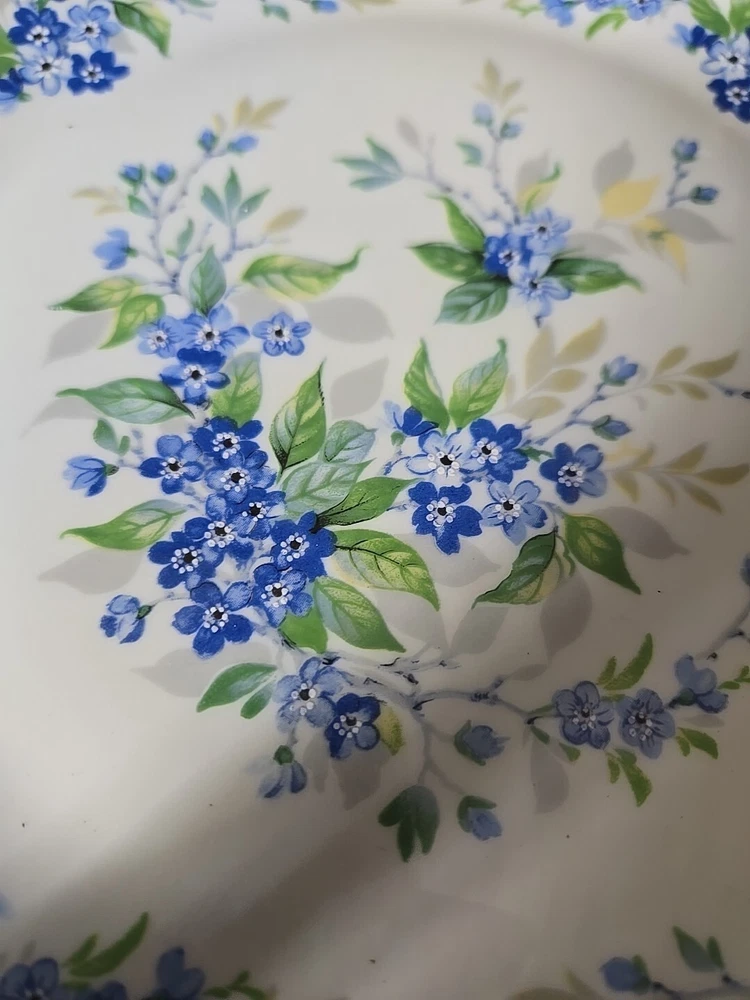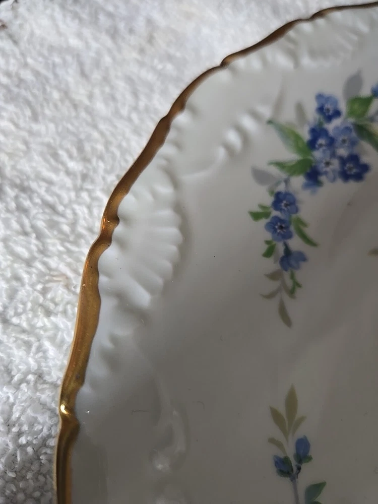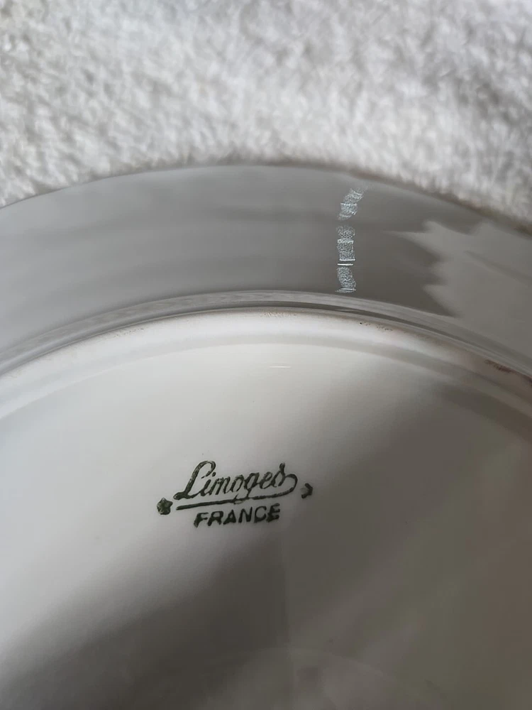 This Limoges dinner plate, originating from France, features a beautiful blue flower design on its round porcelain surface. With a diameter of 9 inches, this plate carries a souvenir theme and is perfect for adding a touch of elegance to any dining setting. Crafted in France, this piece showcases the fine craftsmanship and artistic detailing that Limoges is renowned for.