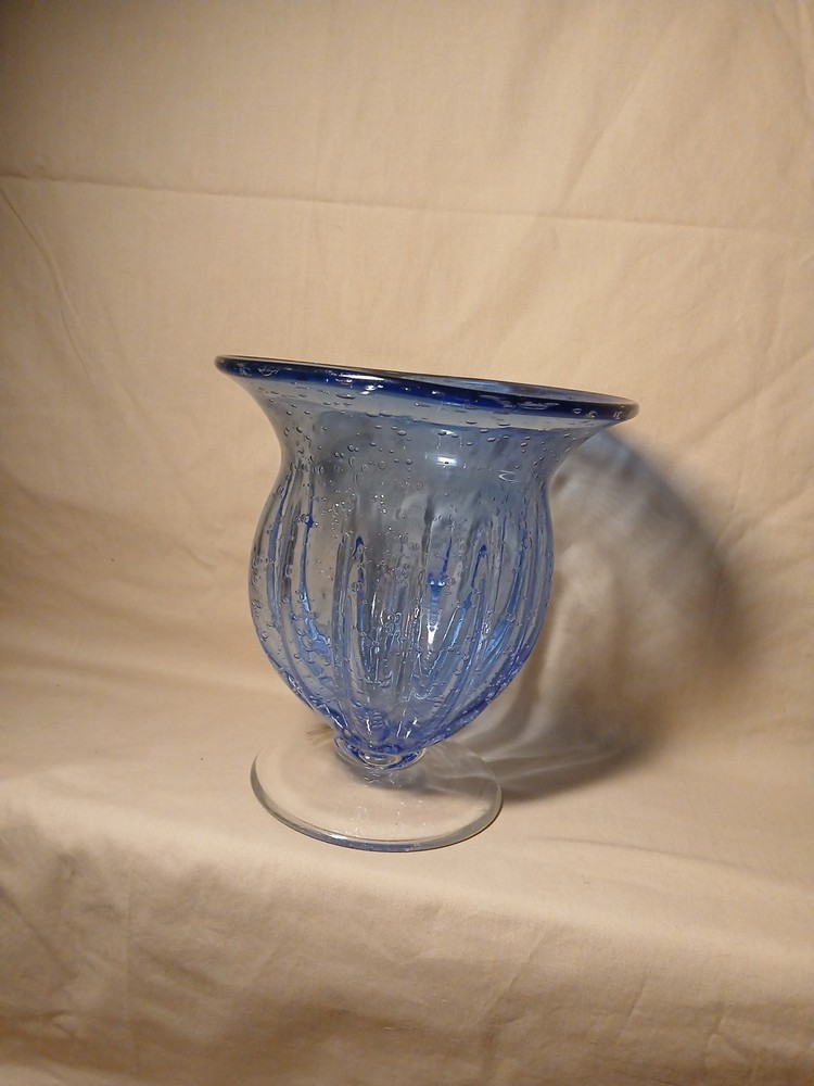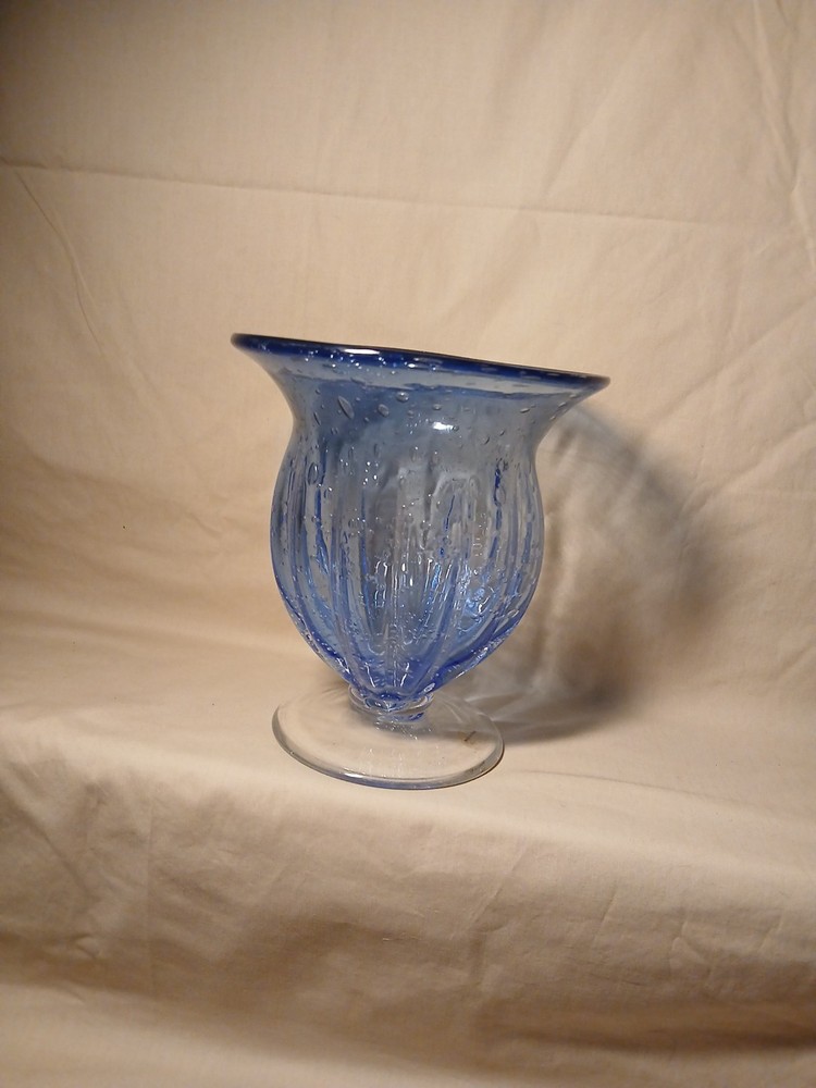 This Blue Hand Blown Glass Hurricane Pedestal Candle Holder stands at 6.5" tall, making it a medium-sized decorative piece perfect for a living room. The elegant blue color and unique pedestal shape add a touch of sophistication to any space. Made of glass, this candle holder is suitable for pillar candles and is a free-standing design that does not require additional parts for use. The Hurricane brand ensures quality and style for a beautifully lit ambiance in your home.