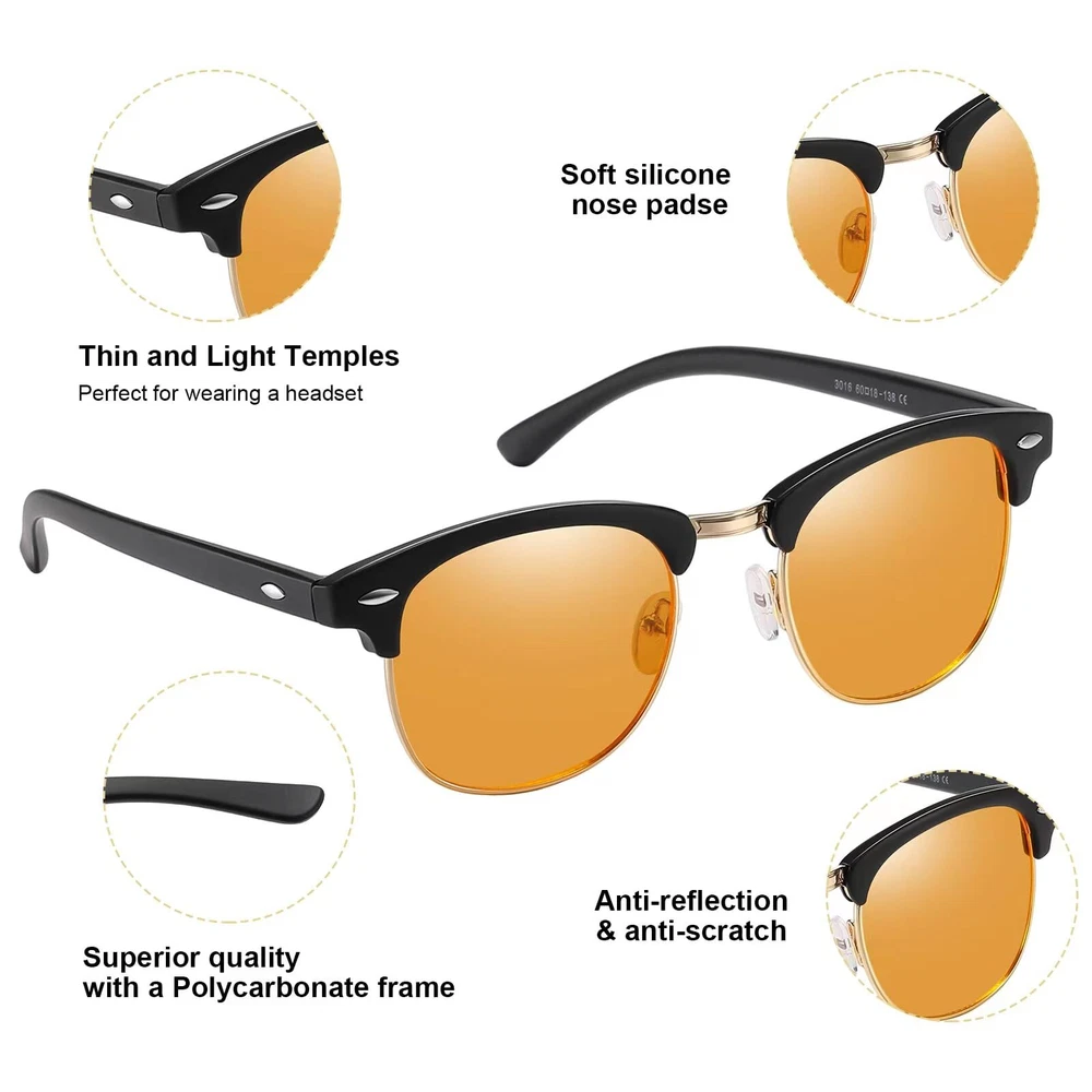 Enhance your gaming experience with our top-of-the-line Gaming Glasses for Men and Women! Specially designed for gamers, these blue light blocking Gamer Glasses provide optimal eye protection during intense gaming sessions. Whether you're a gamer, PC enthusiast, our glasses offer the Gamer Advantage, ensuring you stay at the top of your game. Level up your gaming with our wide range of gaming glasses for men, women, and teens. Protect your eyes with our anti blue ray computer game glasses and enjoy the ultimate gaming experience with our video game glasses blue light blocking capabilities. Upgrade your gaming gear with our stylish and protective gaming glasses for eye strain. Get the best protection with our blue light glasses gaming men and blue light glasses for gaming women men. Our gaming glasses are also perfect for console gaming, providing gaming glasses that shield your eyes from harmful blue light. Discover the best gaming glasses for eye protection, including UV light blocking glasses for teenage gaming. Our blue light gaming glasses for teens men and women offer superior protection during long gaming sessions. Our youth gaming glasses are tailored to protect young gamers' eyes during extended gaming sessions. Stay ahead in the gaming world with our blue gaming glasses for men, designed to block blue light. These computer gaming glasses for men offer optimal eye protection and reduce eye strain during gaming. Upgrade your gaming experience with our blue light blocking gaming glasses, perfect for gamers who prioritize eye . Our gaming computer glasses provide superior eye protection during long gaming sessions. Enjoy the ultimate gaming experience with our video game glasses blue light blocking capabilities. Protect your eyes and stay ahead in the gaming world with our top-gaming glasses for men women and teens. Say goodbye to eye strain with our top-gaming glasses designed for men women and teens. π High-Quality Materials π - Crafted with Advanced German Optical Quality Amber Lenses and a premium metal/polycarbonate rounded half-frame, along with solid smooth metal hinges and soft silicone nose pads featuring an Anti-slip design to reduce the burden on your nose and prevent red marks. Not only do they provide superior optical performance, but they also add a touch of sophistication to your look. Embrace our diverse collection designed for both men and women and revel in comfort. π₯ Clear Vision and No Distortion π₯ - Our 8-Layer Coating Lenses, equipped with anti-radiation technology, effectively reflect harmful 100% blue rays (480-520 nm) while providing UV400 protection. The premium features found in our HD Amber lenses ensure that even during unavoidable hours of screen time, your comfort remains unrivaled. Whether youβre wearing them for gaming, working late into the night, or binge-watching your favorite show, our blue light blocker glasses are the Ideal choice. π΄ Improved Sleep Quality π΄ - Numerous studies have shown that prolonged exposure to blue light can slow or stop the production of melatonin, leading to sleep disorders and an increased risk of damage to the retina, cataracts, and macular degeneration. Our blue light computer glasses incorporate anti-glare high-efficiency blue light filters, reducing eye irritation and protecting your sleep, so you can enjoy your digital age with peace of mind while taking care of your eyes. π The Perfect Gift of and Style π - Reduce glare, protect , improve sleep, and travel with fashion. Surprise your loved ones with the gift of eye vitality and fashion-forward frames. blue light glasses are not just essential for modern digital life but also serve as stylish accessories that complement any outfit. Give the gift of comfort, protection, and style to those you care about, and witness their gratitude every day they wear these glasses. πͺ Experience Unwavering Confidence and Assurance πͺ - With our 365-day unconditional and service, you can with complete peace of mind. Join the ranks of thousands of delighted customers who have made blue light glasses an indispensable part of their daily routines. Whether at work, enjoying leisure time, or immersing yourself in gaming adventures, these glasses have become trusted companions, providing you with healthier eyes and a life with enriched sleep quality.