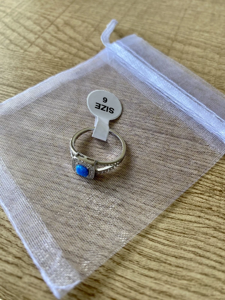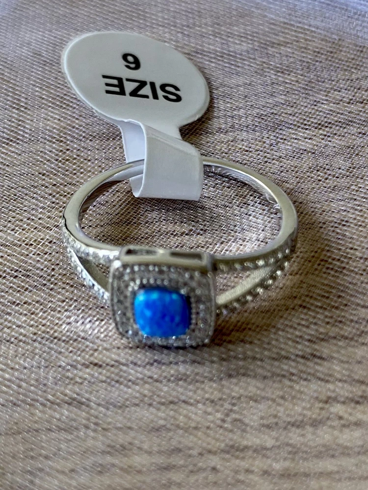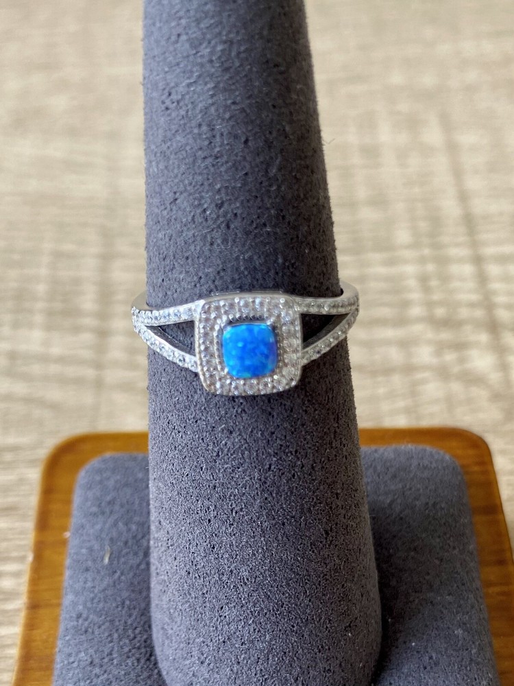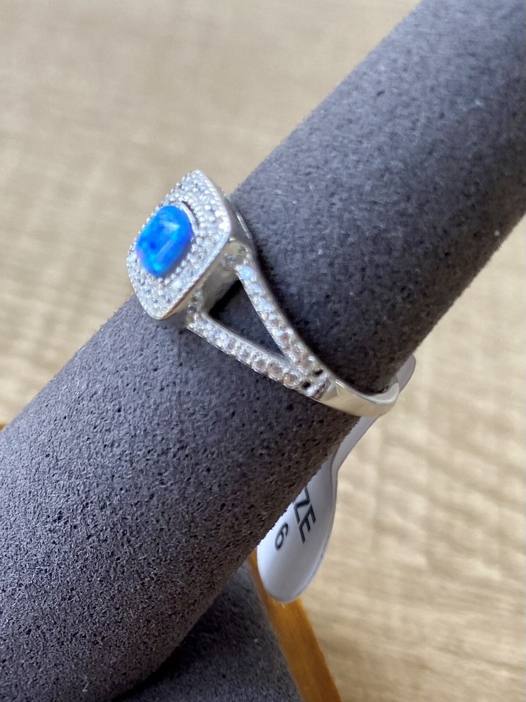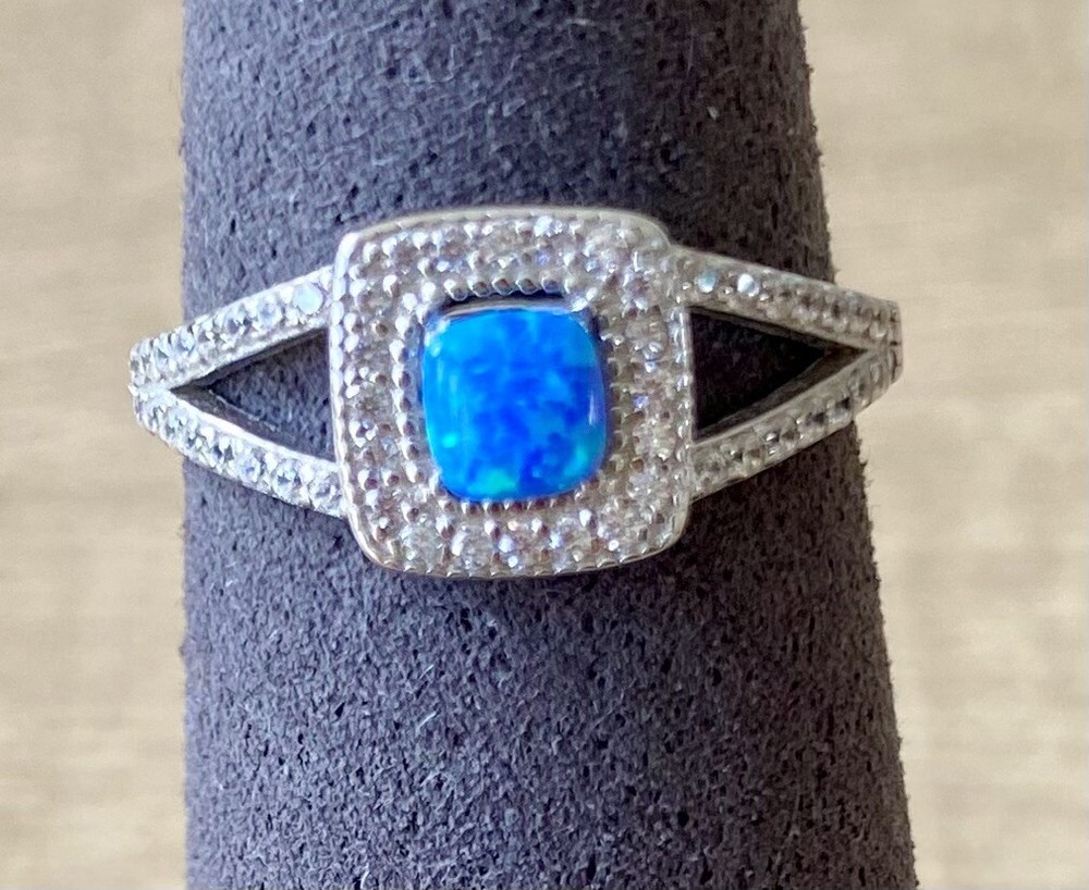 women's 925 sterling silver ring. The ring features a beautiful square shape with a unique combination of cubic zirconia and opal stones. The ring is hallmarked and crafted with high-quality materials, ensuring durability and longevity. It comes in a size L. All rings come in a gift bag