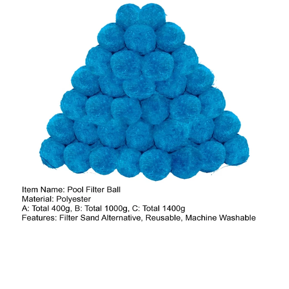 Other | | | | | | Blue Pool Filter Balls Lightweight Reusable Swimming Kit for Machine > > > > > > < < < < < < < < < > > > > > > > > > Description: Upgrade your pool filtration system with the pool filter ball and enjoy crystal clear water all season long! made from high-quality polyester fiber, these filter balls offer superior filtration capabilities compared to traditional sand and filter glass media. With a higher filtration rate and the ability to capture tiny suspended solids and impurities down to microns, these filter balls ensure that your pool water stays clean and inviting for you and your family to enjoy. Not only do these swimming pool filter balls provide excellent dirt interception and fast filtration speed, but they are also reusable, long-lasting, and consume less water, making pool maintenance a breeze. Each 3. 1-pound pack of filter balls is equivalent to 110 pounds of filter sand, offering a lightweight and more effective alternative that won't clog your filter. Machine washable and easy to clean, these filter balls can last for multiple seasons, providing a cost-effective and efficient solution for your pool filtration needs. Ideal for use with sand filter pumps in above-ground pools, aquariums, fish tanks, and more, these filter media balls are a versatile and essential accessory that will simplify your filter cleaning and maintenance routine, saving you time and energy. Say goodbye to cloudy pool water and hello to a hassle-free swimming experience with the pool filter ball! Item Name: Pool Filter Ball Material: Polyester A: Total 400g, B: Total 1000g, C: Total 1400g Features: Filter Sand Alternative, Reusable, Machine Washable Size Detail: L: 4cm/1.57", W: 4cm/1.57", H: 4cm/1.57" (Approx.) Notes: Due to the light and screen setting difference, the item's color may be slightly different from the pictures. Please allow slight dimension difference due to different manual measurement. Package Includes: A: 2 x 200g Pool Filter Balls or B: 2 x 500g Pool Filter Balls or C: 2 x 700g Pool Filter Balls Payment Shipping Return Contact Us 1. We acceptPayPal,Credit card,Debit card,Apple Pay,Google Pay ect as payment. 2. Please be sure your shipping address is correct before make a payment. 1. We ship to your eBay or Paypal address. Please make sure your eBay and Paypal address is correct before you pay. 2. Items will be shipped within 1-7 business days when we received payment. 3. Delivery time depends on destination and other factors. 4. International buyers please note: a. Import duties, taxes and charges are not included in the item price or shipping charges. These charges are buyer's responsibility. We will try our best to reduce the risk of the custom duties. b. Please check with your country's customs office to determine what these additional costs will be prior to buying. 30 DAY RETURN POLICY Customer Satisfaction is our main goal, all items are quality checked prior to being listed and sent out. Please contact us prior to leaving any Negative Feedback and allow us to make things right! If you not satisfied with it please include the original packaging and return form & tracking number otherwise the return may take longer to process the refund. Once we have received the item and inspected it we will issue the refund or resend within 1-7 business days. Please contact us in time if any enquriy under any circumstances. We greatly appreciate your positive feedback and we'll do the same to you. We care about our valued customers, and will always try our best to help you, if you have any problems. Working time: GMT+8 / 9:00-18:30 in normal we will reply you in one working day.