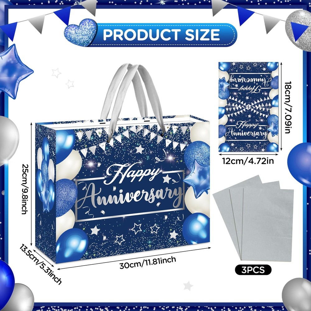 eBay Product Listing Welcome to Your Favorite My Store Your satisfaction is our top priority – Shop confidently Blue Silver Anniversary Party Gift Bag with Tissue Papers and Card, Blue Silver Wedding Anniversary Paper Gift Wrapping Bag for Men Women Wedding Party Supplies 11.8'' Item Gallery Item Description Happy Anniversary Favor Bag: You will get 1pc navy blue and silver happy anniversary gift bag, 1pc anniversary greeting card, 3pcs tissue papers. you can wrap a gift with tissue paper, write your wishes on the blank greeting cards, and put them into the anniversary gift bag. which is quite convenient and eye-catching party favors set Suitable Size: The wedding anniversary gift bag measures 11.8 x 9.8 x 5.3 inches, large enough to party favors such as candies, anniversary gifts, cakes, etc. The tissue paper measures 19.6 x 27.5 inches, suitable for wrapping items. wedding anniversary greeting card measures 4.7*7 inches Unique Design: The blue anniversary paper gift bag and greeting card are designed with an eye-catching "Happy Anniversary" letter, stars, balloons, and confetti patterns, beautiful and full of the party atmosphere, very suitable for anniversary party, wedding anniversary party decor Quality Material: The anniversary gift wrapping bag and greeting card are made of quality cardboard, lightweight, printed with bright patterns, and not easy to fade, suitable for you to anniversary party favors or other items Wide Application: The blue silver anniversary gift party favors bag with the card is suitable for men's or women's anniversary and wedding anniversary parties. the navy blue anniversary gift bag can be used to candies, cakes, or anniversary gifts, and also be a table decoration for your anniversary party, adding more highlights Special Features Features: [Wide Application]-The blue silver anniversary gift party favors bag with the card is suitable for men's or women's anniversary and wedding anniversary parties. the navy blue anniversary gift bag can be used to candies, cakes, or anniversary gifts, and also be a table decoration for your anniversary party, adding more highlights Specifications: Main Colors: blue, silver Material: cardboard, paper Size: Blue Anniversary Gift Bags: 11.8x 9.8 x 5.3 inches Blue Anniversary Greeting Card: 4.7x 7 inches Tissue paper: 27.5 x 19.69 inch Package includes: 1 x Blue Silver Happy Anniversary Gift Bag 1 x Blue Silver Happy Anniversary Greeting Card 3 x Tissue Papers Our Guarantee To You We offer fast shipping, free delivery, and 100% customer satisfaction guarantee. Not satisfied? Return your item for free within 30 days. 30-Day Free Returns Shipping Details Items will be sent to your eBay address. Please verify before purchasing. Typical delivery within 3-7 business days. Professional shipping services used for all orders. We ship to the continental US (48 states only). Unable to deliver to Alaska, Hawaii, or territories. No APO/FPO or PO Box deliveries available. We use eco-friendly packaging Payment Options We accept these secure payment methods: All transactions securely processed through eBay's payment system. Simple Returns 30-Day Satisfaction Promise Contact us through eBay messages within 30 days of delivery. We'll provide return instructions and our address. Return the item in its original condition. We'll process your refund within 48 hours of receiving the item. Get In Touch Have questions about your order? Contact us through eBay messaging for prompt assistance. We typically respond within 24 hours.