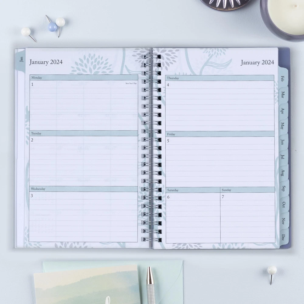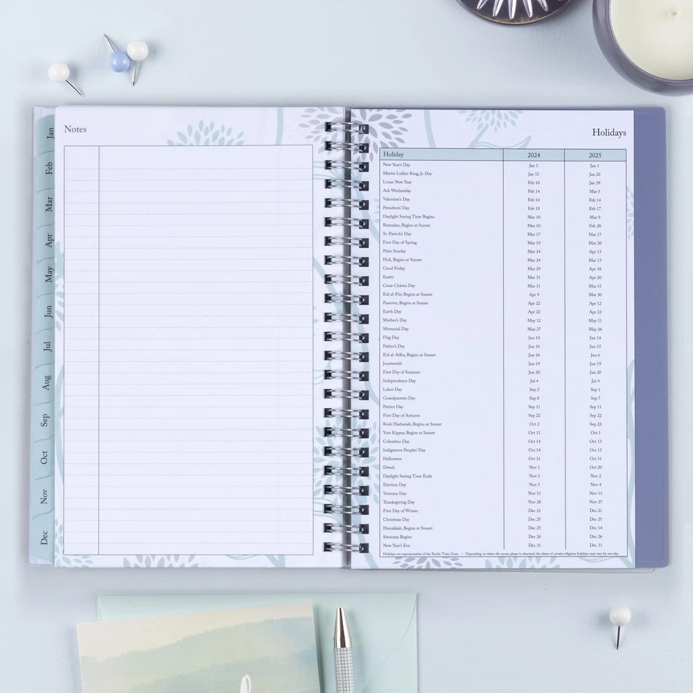 Blue Sky 2024 Weekly and Monthly Planner, January - December, 5" x 8", Frosted Cover, Wirebound, Rue Du Flore (101603-24) Plan your year in style with the beautiful florals and soothing colors of the 2024 calendar year Rue Du Flore collection. This stylish weekly and monthly planner will keep you organized everywhere you go. Simple page designs add a touch of sophistication and offer plenty of room for all of your important information. Designed with practicality and ease of use in mind, this floral agenda's monthly calendar tabs allow for easy access to each month’s plans while weekly views offer ample writing space for detailing each day. High quality white paper provides clean writing space for jotting down your appointments, to-dos and reminders. Use this dated planner to keep track of your appointments, and to write down notes and ideas in one place. Durable coated tabbed dividers are long lasting and make accessing information a breeze. Premium quality covers and twin-wire binding provide reliable durability for daily use. Stay on track throughout the year with this portable 5 x 8 planner dated January 2024 - December 2024. Mix and match with other Rue Du Flore Collection planning products from Blue Sky to organize your daily life. January 2024 - December 2024 pretty day planner with 12 months of monthly and weekly pages for easy year-round planning; 6 additional monthly pages (July 2023 - December 2023) are included Monthly view pages contain previous and next month reference calendars for long-term planning, and a notes section for important projects; Major holidays listed, elapsed and remaining days noted Weekly view pages offer ample lined writing space for more detailed planning, allowing you to keep track of your appointments, reminders, ideas and to-do lists every day of the week Yearly calendar planner includes a poly storage pocket, a convenient list of holidays, reference calendars, contacts pages and extra notes pages to accommodate your scheduling needs Printed on high quality white paper for clean writing space, with premium quality covers in soothing colors and durable, coated tabs that withstand constant use throughout the year Shipping from the USA All of our products are shipped from the USA, ensuring quick delivery to your destination. Payment We offer the following payment methods: PayPal, credit card, bank transfer, and eBay's secure payment system. Free Shipping & Free Returns Shipping within the USA is FREE. Additionally, any return is absolutely free for you. Risk-Free Purchase You have the option to return an item within 30 days without any justification. We cover the return shipping costs! Fast Shipping We ship immediately upon receipt of payment. Generally, the package is delivered within 2-3 days in the USA. If it takes longer, we will contact you. Quality and Costs Made in Europe, USA, China No customs fees or additional charges Total satisfaction guarantee Invoice with declared VAT available upon request in .pdf format Feedback Your feedback is very important to us. After you pay for your purchase, you will automatically receive positive feedback from us.