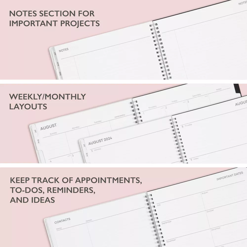Blue Sky 2024-2025 Academic Year Weekly and Monthly Planner, 8.5" x 11", Flexible Cover, Wirebound, Analeis (130606-A25) Plan your year in style with the beautiful florals and bold colors of the 2024-2025 academic year Analeis collection. This stylish CYO (create your own) cover planner will keep you organized everywhere you go. Add in your favorite photos, sentiments, notes or memories to the clear cover pocket, and keep organized with dated weekly and monthly pages inside for easy scheduling. Simple page designs add a touch of sophistication and offer plenty of room for all of your important information. Designed with practicality and ease of use in mind, this academic agenda's monthly calendar tabs allow for easy access to each month’s plans while weekly views offer ample writing space for detailing each day. Use this dated academic planner to keep track of your appointments, and to write down notes and ideas in one place. Durable coated tabbed dividers are long lasting and make accessing information a breeze. Premium quality covers and twin-wire binding provide reliable durability for daily use. Stay on track throughout the academic year with this large 8.5” by 11” planner dated July 2024 - June 2025. Mix and match with other Analeis Collection planning products from Blue Sky to organize your daily life. • Blue Sky creates modern and sophisticated organizational planners and calendars to fit the scheduling needs of busy people - whether it’s for business professionals, college students, teachers, or anyone with appointments to make note of. Keep your life organized with our full line of products including desk pad calendars, wirebound tabbed weekly and monthly planners with contacts and notes pages to accommodate your scheduling needs, and laminated two-sided wall calendars, all in a variety of colors and patterns to suit your lifestyle and personality. July 2024 - June 2025 floral day planner with 12 months of monthly and weekly pages for easy academic planning and scheduling; 2 additional monthly pages (May 2024 - June 2024) are included Monthly view pages contain previous and next month reference calendars for long-term planning, and a notes section for important projects; Major holidays listed, elapsed and remaining days noted Weekly view pages offer ample lined writing space for more detailed planning, allowing you to keep track of your appointments, reminders, ideas and to-do lists every day of the week Yearly calendar layout includes a convenient list of holidays, reference pages, contacts pages and extra notes pages to accommodate your scheduling needs; Perfect for students and teachers Printed on high quality white paper for clean writing space, with premium quality covers in a beautiful floral pattern and durable, coated tabs that withstand constant use throughout the year Shipping from the USA All of our products are shipped from the USA, ensuring quick delivery to your destination. Payment We offer the following payment methods: PayPal, credit card, bank transfer, and eBay's secure payment system. Free Shipping & Free Returns Shipping within the USA is FREE. Additionally, any return is absolutely free for you. Risk-Free Purchase You have the option to return an item within 30 days without any justification. We cover the return shipping costs! Fast Shipping We ship immediately upon receipt of payment. Generally, the package is delivered within 2-3 days in the USA. If it takes longer, we will contact you. Quality and Costs Made in Europe, USA, China No customs fees or additional charges Total satisfaction guarantee Invoice with declared VAT available upon request in .pdf format Feedback Your feedback is very important to us. After you pay for your purchase, you will automatically receive positive feedback from us.