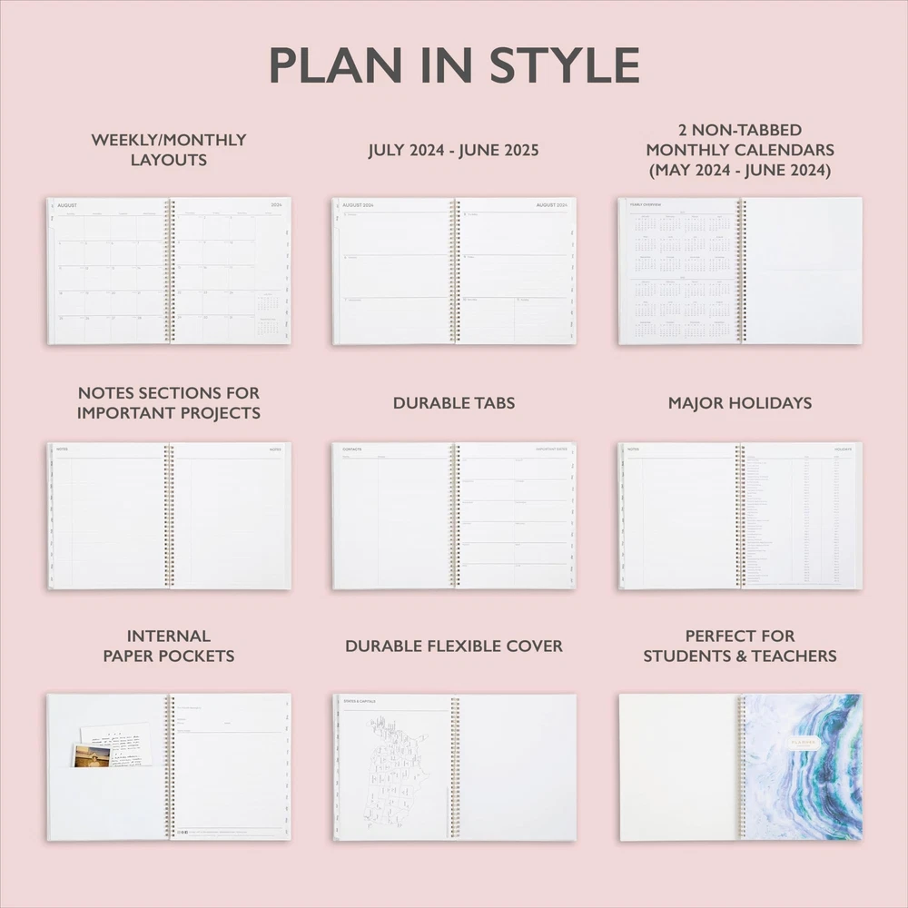 Blue Sky 2024-2025 Academic Year Weekly and Monthly Planner, Organize Schedule, For High School Students, Gemma, 8.5" x 11" Step into the school year with the Blue Sky 2024 Academic Planner, specifically designed to be your trustworthy tool throughout the academic journey. Sporting a unique layout, it encompasses a dated weekly planner, enabling effective organization of your intricate schedule. This planner offers a bird's eye view of the month ahead filled with reference calendars and broad note-writing areas. This planner doubles as a daily planner, ensuring that you never overlook important dates and holidays. The Blue Sky planner comes with an added edge of practical features like contact pages, additional note-taking spaces, and an interior pocket for secure storage. Boasting high-quality white paper for a clean writing experience, it comes in a durable, coated cover, ensuring longevity throughout the academic year. With a frosted flexible cover and a wirebound design, this planner promises endurance and style. The Blue Sky planner, with its comprehensive layout, is the perfect companion to guide you through your academic journey. This academic planner, complete with dated daily sections, efficiently organizes your important dates and deadlines from July 2024 to June 2025 Our academic monthly planner offers a comprehensive view of your schedule, reminders, and notes, with reference calendars for added convenience This planner provides detailed weekly views to effectively manage time, making it an essential tool for daily organization and task management More than a planner, it includes holiday lists, reference pages, contacts, extra notes, and a storage pocket for academic success This Blue Sky planner, with a frosted flexible cover, wirebound durability, and high-quality white paper, is designed to withstand the entire academic year Shipping from the USA All of our products are shipped from the USA, ensuring quick delivery to your destination. Payment We offer the following payment methods: PayPal, credit card, bank transfer, and eBay's secure payment system. Free Shipping & Free Returns Shipping within the USA is FREE. Additionally, any return is absolutely free for you. Risk-Free Purchase You have the option to return an item within 30 days without any justification. We cover the return shipping costs! Fast Shipping We ship immediately upon receipt of payment. Generally, the package is delivered within 2-3 days in the USA. If it takes longer, we will contact you. Quality and Costs Made in Europe, USA, China No customs fees or additional charges Total satisfaction guarantee Invoice with declared VAT available upon request in .pdf format Feedback Your feedback is very important to us. After you pay for your purchase, you will automatically receive positive feedback from us.