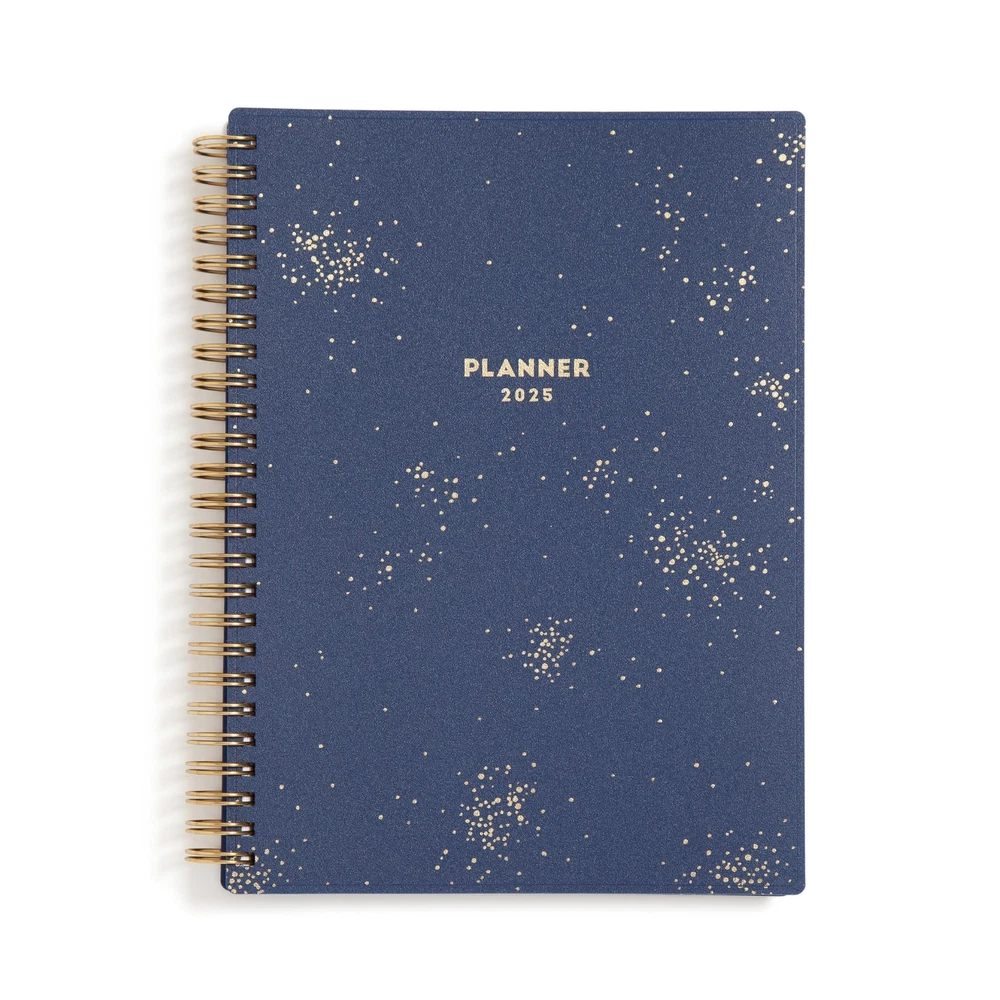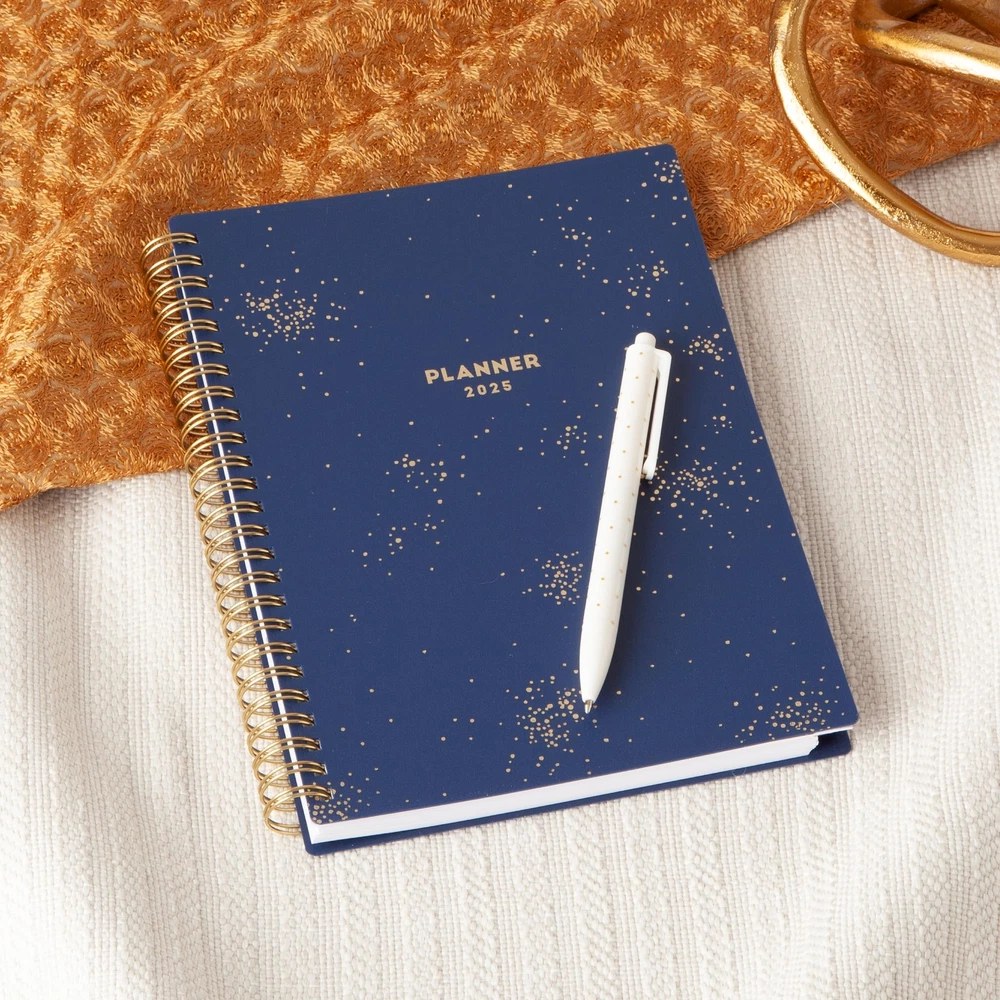 Blue Sky 2025 Weekly and Monthly Planner Calendar, January 2025 - December 2025, 5.875” x 8.625”, Flexible Cover, Laminated Tabs, Wirebound, Storage Pocket, Gold Foil Details, Starlight (Starlight- 2025, 5.875" x 8.625") Plan your year in style with the classic aesthetic of this 2025 planner. This weekly and monthly planner will keep you organized everywhere you go. Simple page designs add a touch of sophistication and offer plenty of room for all of your important information. Designed with practicality and ease of use in mind, this agenda's monthly calendar tabs allow for easy access to each month’s plans while weekly views offer ample writing space for detailing each day. Thirty sheets of notepaper at the back of the planner offer additional space for you to jot down your thoughts, ideas and musings. A yearly overview calendar, a yearly goals layout and budget spreadsheet assist with long-term planning. A snap-in ruler/bookmark, double-sided paper pocket for loose leaf materials, listed holidays and a reference sheet with US States and Capitals add to the usefulness of this organizational tool. Quality flexible covers and metallic twin-wire binding provide reliable durability for daily use. Stay on track throughout the year with this portable 5.875” by 8.625” planner dated January 2025 - December 2025. Mix and match with other Classic Collection planning products from Blue Sky to organize your daily life. Blue Sky creates modern and sophisticated organizational planners and calendars to fit the scheduling needs of busy people - whether it’s for business professionals, college students, teachers, or anyone with appointments to make note of. Keep your life organized with our full line of products including desk pad calendars, wirebound tabbed weekly and monthly planners with contacts and notes pages to accommodate your scheduling needs, and laminated two-sided wall calendars, all in a variety of colors and patterns to suit your lifestyle and personality. January 2025 - December 2025 planner with 12 months of monthly and weekly pages for easy planning and scheduling; 6 bonus monthly pages (July 2024 - December 2024) are included Monthly pages contain previous and next month reference calendars for long-term planning, and a notes section for important projects; Major holidays listed, elapsed and remaining days noted Weekly view pages offer ample lined writing space for more detailed planning, allowing you to keep track of your appointments, reminders, ideas and to-do lists every day of the week This 5.875" x 8.625" planner has a generous, tabbed notes section that provides 60 pages of lined writing space, while a budget tracker helps you manage your finances The planner’s gold-tone, spiral bound spine, flexible, dark blue cover and colorful, durable monthly tabs ensure that this planning calendar can withstand the demands of your busy schedule Shipping from the USA All of our products are shipped from the USA, ensuring quick delivery to your destination. Payment We offer the following payment methods: PayPal, credit card, bank transfer, and eBay's secure payment system. Free Shipping & Free Returns Shipping within the USA is FREE. Additionally, any return is absolutely free for you. Risk-Free Purchase You have the option to return an item within 30 days without any justification. We cover the return shipping costs! Fast Shipping We ship immediately upon receipt of payment. Generally, the package is delivered within 2-3 days in the USA. If it takes longer, we will contact you. Quality and Costs Made in Europe, USA, China No customs fees or additional charges Total satisfaction guarantee Invoice with declared VAT available upon request in .pdf format Feedback Your feedback is very important to us. After you pay for your purchase, you will automatically receive positive feedback from us.