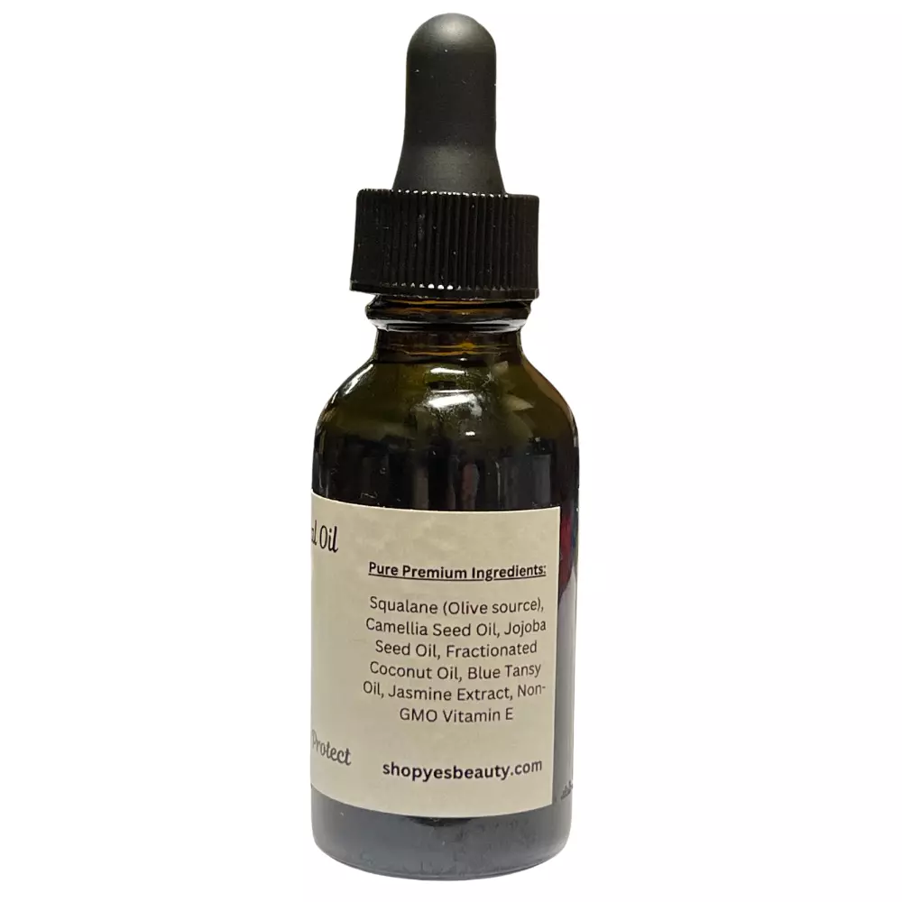 Our Blue Tansy + Camellia Facial Oil combines the soothing, anti-inflammatory properties of blue tansy with the hydrating and nourishing benefits of camellia oil. Here’s a breakdown of the key ingredients and their benefits: Blue Tansy Oil : Anti-inflammatory : Helps reduce redness and irritation, making it great for sensitive or acne-prone skin. Soothing : Calms irritated skin and provides relief from inflammation. Antioxidant-rich : Protects the skin from environmental stressors, which can lead to premature aging. Camellia Oil : Moisturizing : Lightweight, yet highly hydrating, camellia oil absorbs quickly into the skin without leaving a greasy residue. Rich in Oleic Acid and Vitamins : Contains vitamins A, B, D, and E, which nourish and rejuvenate the skin. Improves Elasticity : Promotes skin firmness and elasticity, which is beneficial for anti-aging. Benefits of the combination: Calm + Hydrate : Blue tansy soothes irritation, while camellia deeply moisturizes, making it a perfect combination for sensitive or dry skin. Balance for Oily/Acne-Prone Skin : Blue tansy helps calm acne and reduce redness, and camellia oil provides moisture without clogging pores. Anti-Aging Properties : Both oils contain antioxidants that fight free radicals, helping to minimize fine lines and improve overall skin texture. This blend is ideal for anyone looking for a soothing, anti-inflammatory, and hydrating facial oil, particularly for sensitive, acne-prone, or aging skin. All bottles are safety sealed by us prior to shipping! Formulated with Olive Squalene (regenerative effect), Camellia (moisturizes and clarifies) among others for combination, oily, and blemish-prone skin types or any skin in need of relief from inflammation. Can be used as a regular clarification. WE LET OUR INGREDIENTS DO THE TALKING! Squalane (Olive source) a moisturizer, helps increase hydration , anti-inflammatory properties may help reduce redness and swelling in acne Camellia Seed Oil moisturizes skin, reduces wrinkles, has antioxidant properties, soothes the skin, reduces dark spots Jojoba Seed Oil many benefits including moisturizing and acting as an antioxidant. contains antimicrobial and antifungal properties. Fractionated Coconut Oil penetrates better into the skin and does not leave a greasy film. It has an emollient effect that can soften and hydrate dry skin. It contains antioxidant and antibacterial properties that promote skin health. Blue Tansy Oil Antioxidant and anti-inflammatory properties. Calming irritated skin and reducing redness. Clearing congested pores and killing pimple-causing bacteria. Softening skin texture. Protecting and healing skin from UV exposure, acne, and other environmental aggressors. Jasmine Extract Ideal for warding off environmental wear and tear. By defending against germs, dryness, inflammation, and free radicals, it helps to soothe the skin for a calm, resilient, and rejuvenated complexion. Non-GMO Vitamin E Stops skin from losing moisture. Protects cells from damage. Softens skin. Ingredients: Squalane (Olive source), Camellia Oleifera (Camellia) Seed Oil, Simmondsia Chinensis (Jojoba) Seed Oil, Caprylic/Capric Triglyceride (Fractionated Coconut Oil), Tanacetum Annuum L. (Blue Tansy) Oil, Jasminum Sambac (Jasmine) Extract, Tocopherols (Non-GMO Vitamin E) Here are some tips for using facial oils: When to apply: Apply after cleansing and toning, but before moisturizer, so the oil can penetrate the skin without being diluted. For oily skin, you can apply a few drops in the evening before bed. For dry skin, you can apply in the morning and evening. If you have sensitive skin, you can start by using it once a day to see how your skin reacts. In the morning, you can apply it before sunscreen and makeup, but be careful that it doesn't break down or dilute your SPF. How to apply: Use a dropper to apply a few drops directly to your skin, then gently pat or dab it in with your fingertips to help your skin absorb it. Patting can also nourish deeper skin layers. You can apply a few drops to each cheek and forehead, then work it down to your neck. How to store: Store your oils away from heat, sunlight, and air, as these can break down their ingredients and decrease their shelf life.
