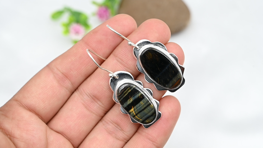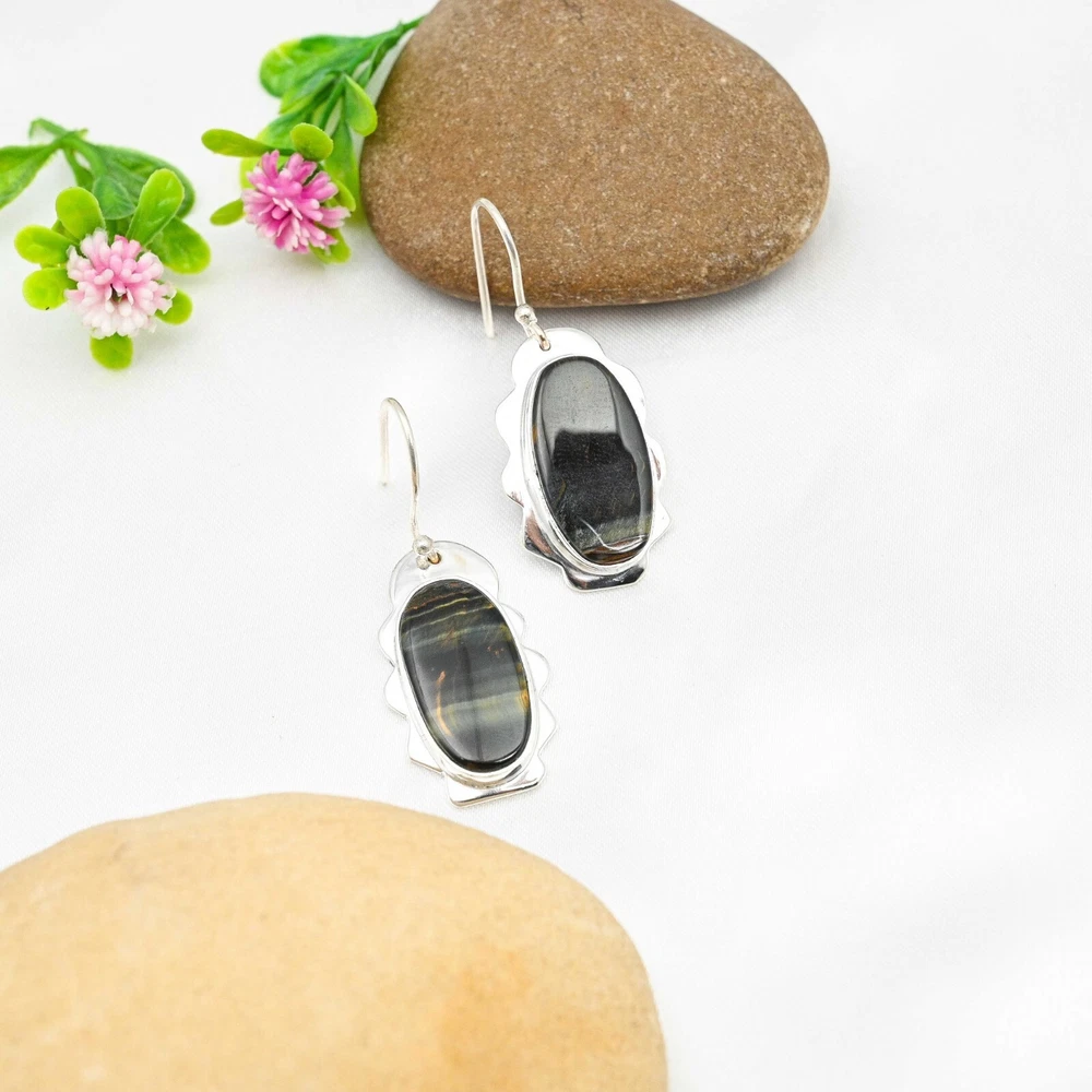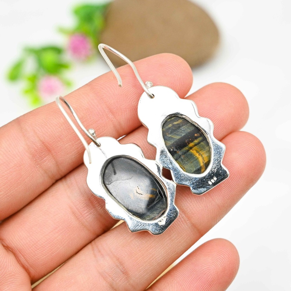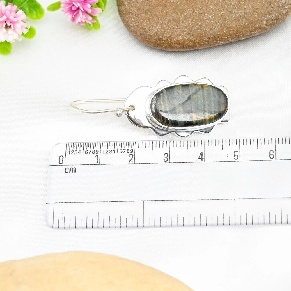 HomeBlue Tiger Eye Dangle Earrings Handmade Sterling Silver Jewelry Gift