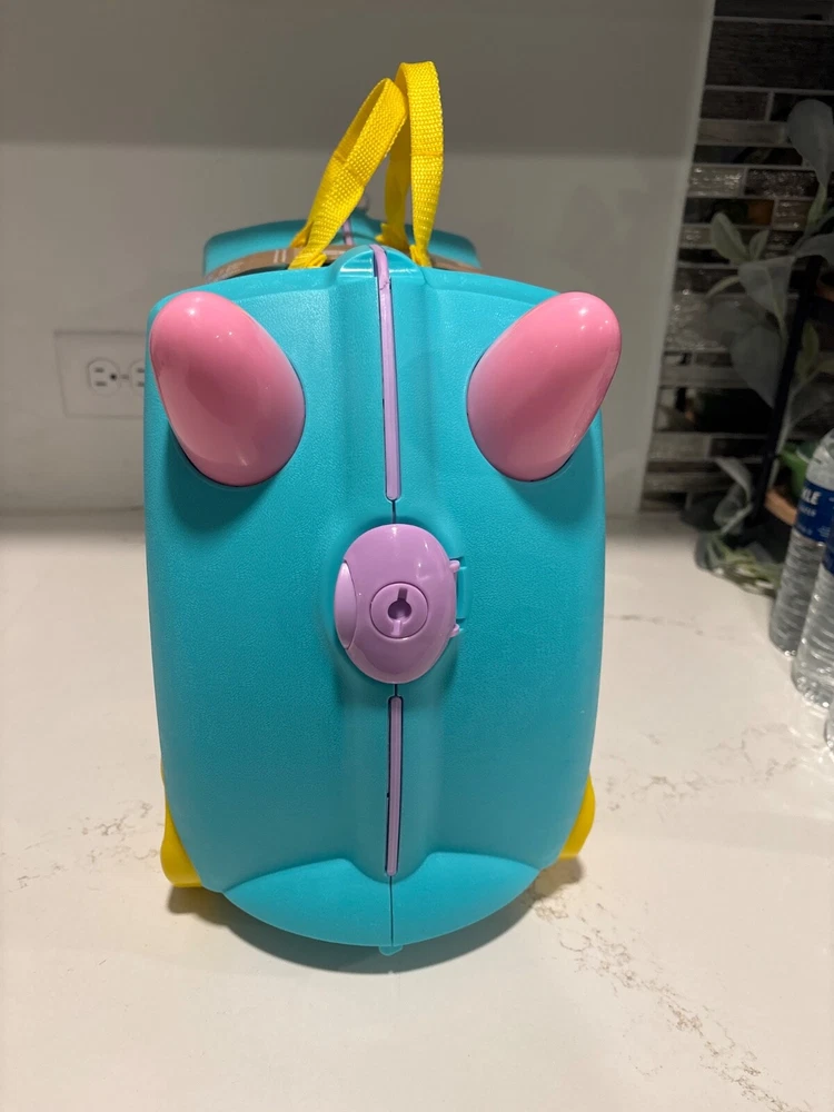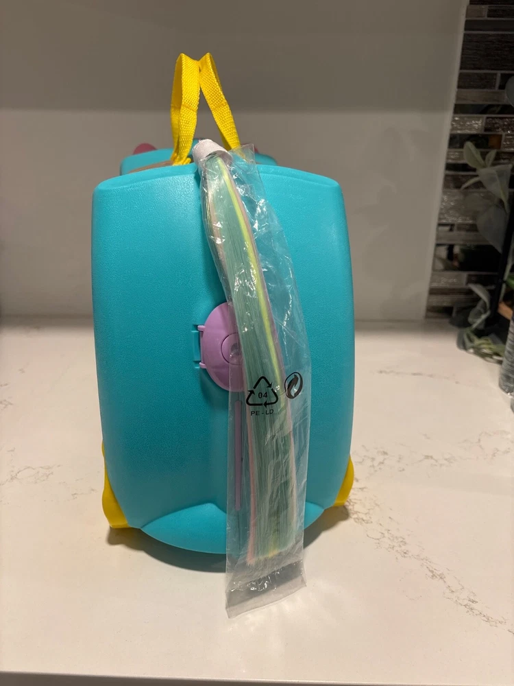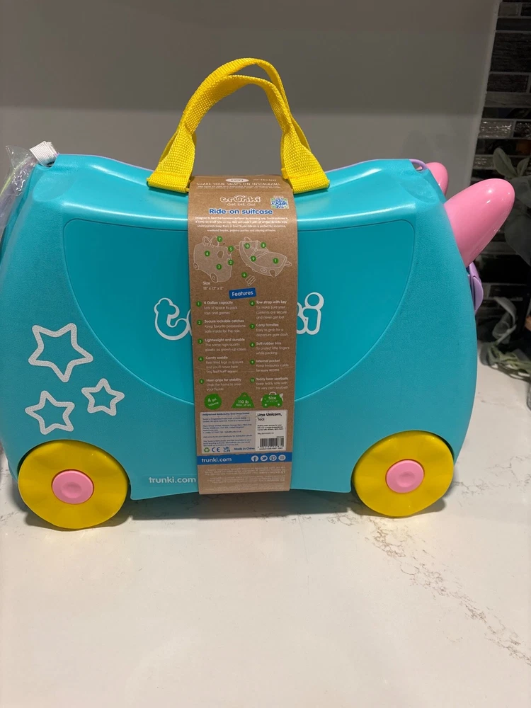 Unicorns and travel go hand-in-hand with this charming Blue Trunki Ride On Kids Suitcase. Designed for the young adventurer, this 16" suitcase is adorned with a playful unicorn pattern that's sure to delight. The durable plastic construction ensures longevity through numerous trips to fantasyland and beyond. Functional as it is adorable, this Trunki suitcase features smooth-rolling wheels and a convenient tow strap for easy maneuvering. Perfect for girls who love a pop of color in their luggage collection, this suitcases is both stylish and practical, making it a great companion for every journey.