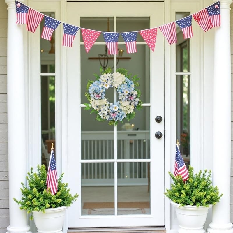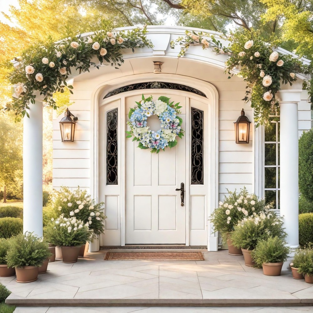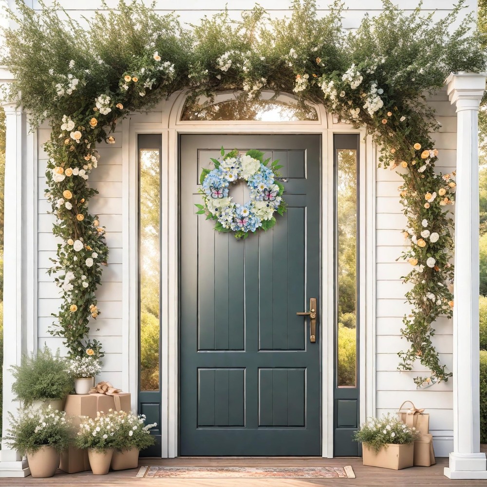 This gorgeous wreath instantly brightens up my front door! The vibrant blue and white hydrangeas look so realistic, and the twinkling lights add a magical touch. The eucalyptus leaves and delicate butterflies give it a lush, garden-fresh feel. Perfect for spring and summer—it’s sturdy, well-made, and arrived carefully packaged. Every guest compliments it! Highly recommend for adding charm to porches, weddings, or any space needing a floral pop.