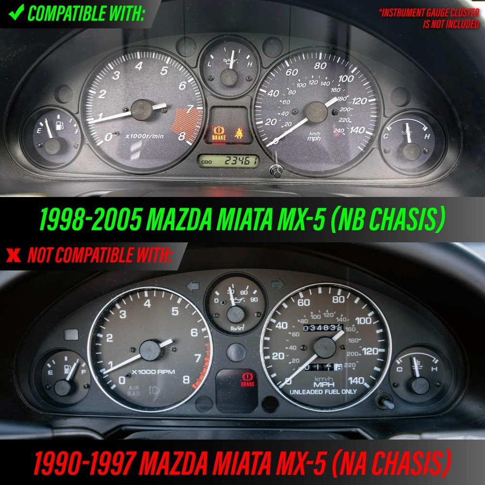 ATTENTION: For fitment and address issues, we will contact you through eBay message system first and by phone. If we are unable to get a hold of you or we cannot ship your order within 24 business hours after your order is placed, we will cancel the purchase instead. Please be sure you check product info carefully and enter your address correctly before purchase. Thank you. visit our store | View feedback | Sign up for our newsletter Please read and understand our complete description and policies/terms below prior to buy. EL-AC001-4 DESCRIPTION Product Details: This listing is for a BRAND NEW Blue/Green Glow Gauge Overlay with an Inverter Dimmer Switch Fit for: 1998-2005 Mazda Miata MX-5 - NB chassis (Please always check the top speed and Redline on RPM matches between your stock instrument cluster vs. Glow Gauge set sold here) Features: * Upgrade to a more Aggressive Blue or Green Output Glow Gauge * Made by ISO2001 certified manufacturer, Excellent Quality! Specs: * Brand: Unique Style Racing (USR) * Type: Glow Gauge Overlay * Color: White Gauge Face by Day / Blue or Green Glow by Night * Surface: Non-Glare/Scratch resistant * Install Process: These gauges do not require the removal of the gauge needles for installation. Though we provide reference installation links upon request, no installation instruction will be included. In the Package: * x1 Glow Gauge Overlay Set * x1 12V Power Inverter Switch Special Note: * Though we provide reference installation link (at buyer request), we highly suggest professional installation. * WARNING: This is the Gauge FACE overlay ONLY. The entire gauge cluster is NOT included. You lay the Overlay face on top of your existing gauge cluster, as this gauge face DOES NOT replace your STOCK cluster. The Glow Gauge Overlay Face here can only worked with the 12V power inverter supplied and the 12V power inverter dimmer should NOT be connected to stock gauge cluster's own dimmer for power. Buyer's discretion is advised, please purchase the item accordingly!! Important Notes: - Although DIY is possible, CERTIFIED & LICENSED PROFESSIONAL INSTALLATION is HIGHLY SUGGESTED . - We do not provide Installation Instruction except the manufacturer's original ones if there is any. - Direct OEM STOCK Replacement - No modification needed to fit the specified years / make / models / trims. - Our Products Are SPECIFICATION SENSITIVE and we ship DOOR to DOOR ONLY. Any package being sent to "FORWARDING COMPANY" is not our responsibility. - You, as the buyer / consumer are solely responsible for all damages and losses. - We highly recommend you to buy new gaskets prior to install the product you purchased from our company since the stock ones by now should have been worn out, therefore, it is easily allowing moisture to get in and create condensation which is NOT due to the product that has leak, but bad gaskets. - Some EXCEPTIONS For Warranty Claims: A.) No visible / physical damages to the product and / or warranty is void, B.) Alteration to the product will result in termination of warranty, C.) Be sure the stock gaskets or rubber seals are not torn and worn as you will need to reuse them when you replace your stock lights with ours. You will also be asked for photos that documents any *leaking*, *misting*, *fogging up* and *condensation* issues, as well as the condition of your stock gaskets or rubber seals. and lastly, D.) All of our lighting assemblies are NOT compatible with XENON HID and LED-type bulbs. Please use either incandescent or halogen bulbs per advertisement. - Please be sure to check the provided PHOTOS, read the DESCRIPTION and ask QUESTIONS before purchase. Thank you for your business. ABOUT US We're genuine and honest sellers and we carry great selection of the quality products to choose from, at a competitive pricing. Every order is carefully packaged and inspected by three of our staff using the latest technology to ensure safe shipment to you. We value good relationship with our customers and if you have any question or concerns regarding a sale, please do feel free to contact us first. Please do check your ebay message often for your order status, we will contact you for any delay that is caused by the payment or shipping complication arises from processing your order. We hope you enjoy your purchase! PAYMENT We accept payment by: Paypal. We accept PAYPAL only at this moment for all ebay transactions and MUST ship to paypal's listed address. 1.) If you are using eBay?s checkout system, please ensure that your registration information is current and will match what you have on PayPal. We will not be able to accommodate to change the original address we receive at the time of payment with an alternative one, once the transaction is completed via eBay and PayPal. 2.) We are required to ship to the address attached to your payment only. 3.) We will not be able to ship to an alternative address besides the original address shown on your PayPal payment detailed page. 4.) Please DO read and understand the policies / terms prior to buy to avoid any future discrepancy from occurring. Thank you for your cooperation! SHIPPING Please read and understand our complete policies/terms below or ask question if you have concerns prior to buy. 1.) Free shipping only applies to the listings that have the ?Free Shipping? icon displayed and for completed transactions. Any canceled, incomplete, refused or undeliverable packages are subjected to a 20% re-stocking fee + all shipping related fees. 2.) Shipping costs incurred are non-refundable under any circumstance. Shipping costs are incurred and paid to the shipping courier and they are not refundable. 3.) We DO NOT ship to APO / FPO, GUAM, MP, PUERTO RICO (PR) and VIRGIN ISLAND (VI) 4.) INTERNATIONAL COUNTRIES: Buyer is responsible for all Brokerage Fees, Taxes & Duties - which may be charged upon delivery. Please contact your local shipping agent to determine your estimated taxes & duties. 5.) Pick up / Will Call servic
