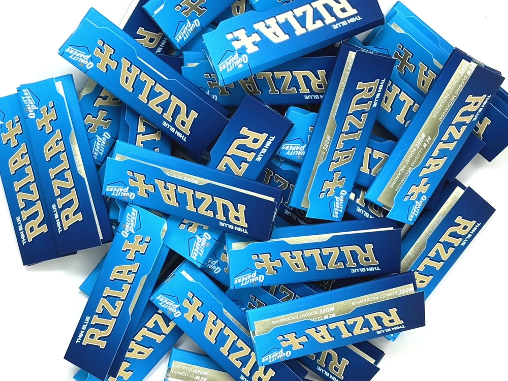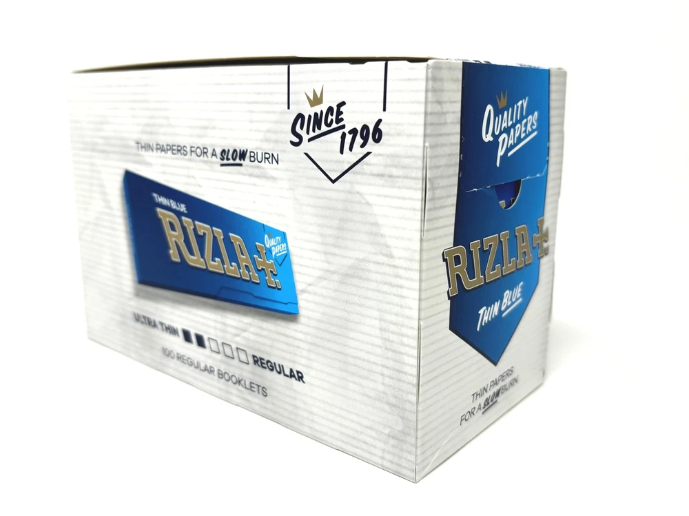 Blue Paper Box for Cigarettes Original product. The complete box contains 100 booklets. Plain Rolling Paper - Blue Box of 100 packs. Official UK product, new packaging. It's not a toy.