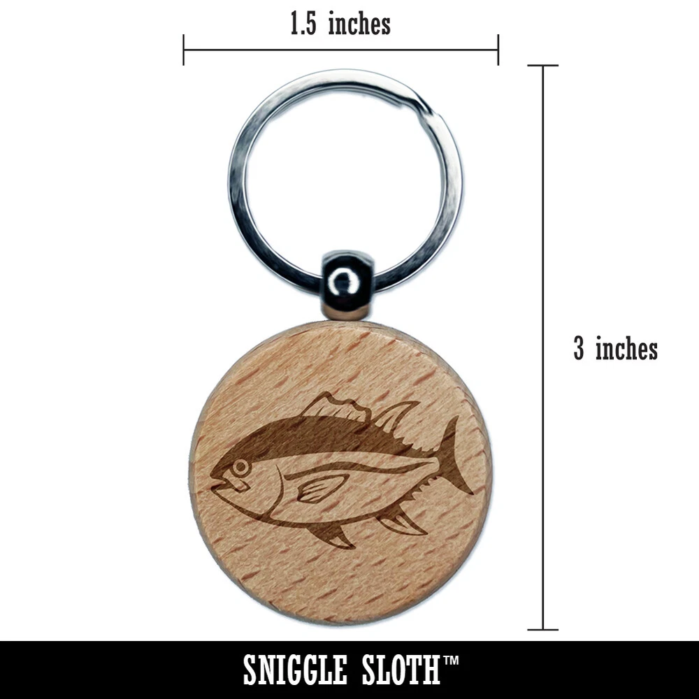 Bluefin Tuna Fish Fishing Engraved Wood Round Keychain Tag Charm