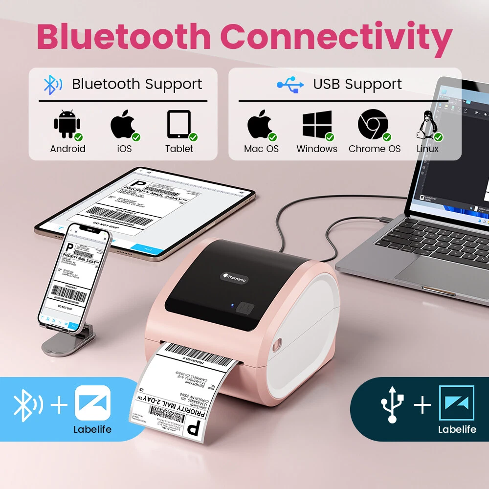 Feature: Brand:Phomemo Model Name:D520-BT Connectivity Technology:Bluetooth Printing Technology:Thermal Special Feature:thermal shipping label printer bluetooth, bluetooth thermal label printer for shipping labels, bluetooth shipping label printer, Compatible with Mobile Phone & PC, Large built-in paper binthermal shipping label printer bluetooth, bluetooth thermal label printer for shipping labels, bluetooth shipping label printer, Compatible with Mobile Phone & PC, Large built-in paper bin Printer Output:Monochrome Maximum Print Speed:150mm/s Item Weight:1.1kg Product Size:175×218×157mm(L*W*H) Effective print width:108mm Printing Resolution:203DPI What's in the box Label Printer USB Cord & Type C Convertor Power Adapter & Cable Labels Built-in Label Holder About this item 【Lastest Built-in Paper Bin】Phomemo shipping label printer comes with a Large inner Built-in Paper Bin, you no longer need to worry about purchasing a separate label holder, saving you both time and money. Both fanfold labels and roll labels could be used, giving you the flexibility to choose what works good for you. 【Cost-Saving for Your Business 】Bluetooth thermal label printer utilizes advanced thermal direct technology for printing. Give you a NO Ink, NO toner, Comfortable office environment! Not only an economical choice but also environmentally friendly for our planet. Say goodbye to the hassle of label printing and hello to convenience. 【Wireless Printing】The wireless thermal label printer enables wireless printing. Simply install the "Labelife" app from Google Play or the Apple Store to pair with Bluetooth on your iPhone, iPad, or Android phone. Alternatively, the printer also supports USB connection for PC, Windows, Mac, Linux, and Chrome. (PC printing needs to download the driver) 【Various Platforms Compatibility】 Phomemo label printer 203DPI provides you with clear shipping labels; The high printing speed of 72 PCS/min can greatly improve your working efficiency. Supports labels width ranges from 1 to 4.6 inches no matter fanfold label or roller label. Widely used to print labels from major sales and shipping platforms, such as amazon, eBay, Shopify, USPS, UPS, Esty, etc 【MEW Upgrade】 - Phomemo label printer is Equipped with The latest AF chip and high-tech thermal print head for stable and high-quality high-speed printing. With easy and simple operations, you can easily print your documents, photos, and more, making your life more convenient! Tip: How to start your printing with Chrome OS. Attach the printer and computer with USB and turn on the printer. Enter "Labelife" in the Chrome Web Store and add the extension to your Google Chrome. Open the Labelife extension. Click "Add" to discover your printer. And "Setting Printer" to complete the print settings. Open the file in Google Chrome and "Ctrl + P" to wake up the print interface, select the printer you just included and start Print. Item Specifics Brand : Phomemo Type : Label Printer Technology : Thermal Product Line : Phomemo Output Type : Black & White Input Type : Monochrome Connectivity : Bluetooth Features : Portable Supported Paper Size : 20-118mm Maximum Resolution : 203 x 203 DPI Black Print Speed : 150mm/s Effective print width : 108mm Mode : D520-BT Product Dimensions : 175×218×157mm(L*W*H) Payment Shipping Returns Contact Us We are required by law to collect sales tax for California buyer We Ship from CA. We ship within 3 working day after payment received from Monday to Friday,except for Saturdays, Sundays and Holidays. Orders placed after 10 a.m. PST Friday will be ship on next Monday. Although we ship to most areas served by our carriers, FedEx, UPS and DHL,we are unable to deliver to PO Boxes, FPO and APO addresses. Returns and exchanges are accepted within 30 days of the receipt of the merchandise. A full refund or exchange will be given if the merchandise is found to be damaged, defective, or not as described in the auction. Returns for any other reason will get a refund minus the cost that was incurred by us to ship the item. Before making a return, the buyer must contact US through the Ebay message system in order to obtain a return approval number, or the return will not be accepted. 1.We're a professional online wholesaler based in China. We are factory direct sale. We offer top good quality products to worldwide market at wholesale price. 100% customer satisfactory is our goal! 2.We welcome long-term business partners. Please contact us for discount wholesale price or cooperation. All right reserved. On Mar 6, 2025 at 20:22:18 PST, seller added the following information: