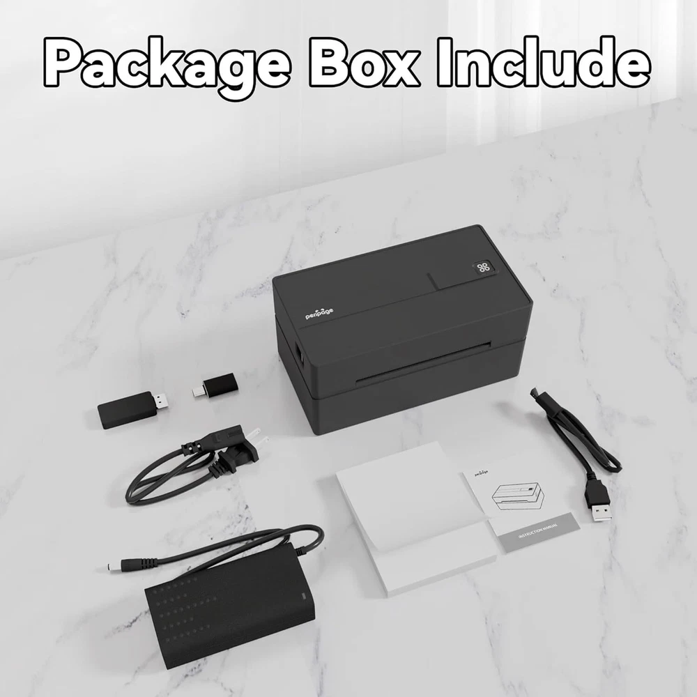 About this item Bluetooth Printing – Support phone and tablet Bluetooth connection for printing. Download the dedicated app from Google Play or Apple Store for simple and efficient printing of shipping labels or barcodes. USB Printing – Includes a driver USB stick with Windows and Mac drivers and installation instructions. Connect to a computer via data cable to perform batch and complex printing tasks. Multi-Size Compatibility – Supports shipping label widths from 1.41 inches to 4.13 inches (36-105mm) with customizable label print sizes within this range. Compatible with Multiple Platforms – Works with almost all major platforms, including Amazon, Etsy, Temu, eBay, USPS, Shopify, UPS, PayPal, Poshmark, Walmart, and more. Simple, Efficient, and Saving – Utilizes thermal printing technology with a speed up to 150 mm/sec, capable of printing 72 4x6 labels per minute. Easy operation that saves time, requiring only replacement of thermal labels—no ink needed! Product dimensions: 8 x 7 x 4.7 inches.
