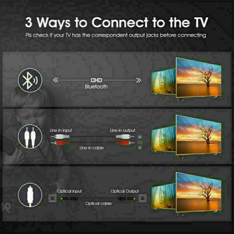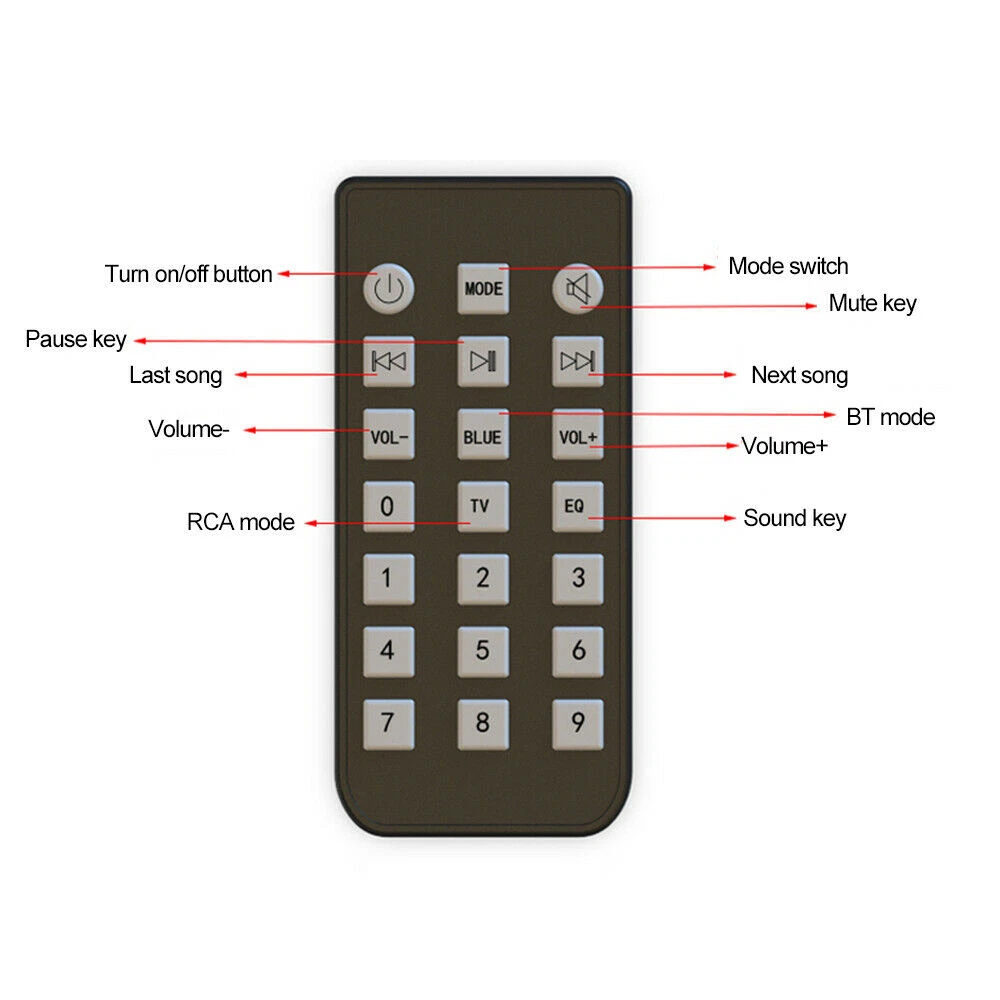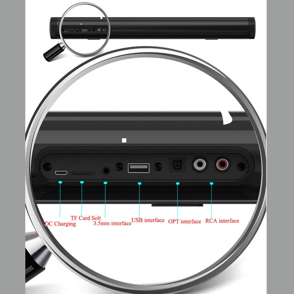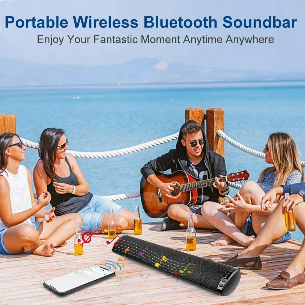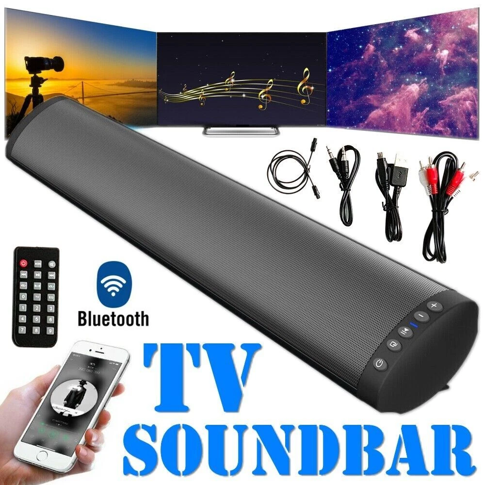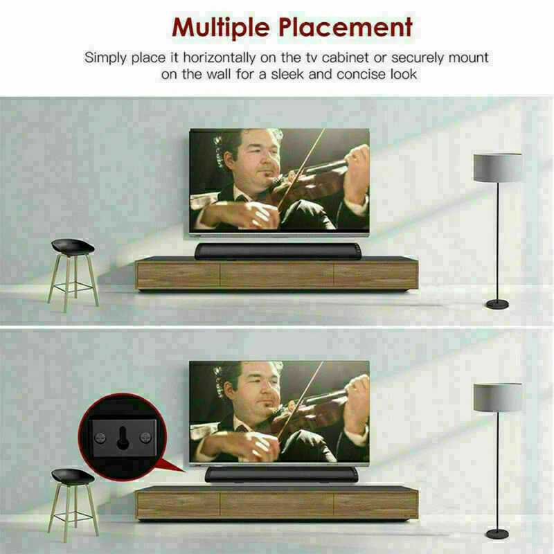 Bluetooth 5.0 Sound Bar Wireless Home Theater Subwoofer Wall Mount Soundbar Description: 🌐Full frequency range, 3D stereo, high-definition dual speakers, wireless Bluetooth function, surround sound, lossless sound quality decoding, FM radio, long-lasting battery life 🌐Built-in dual speakers + dynamic passive radiator, high output internal strong magnetic speaker + independent subwoofer diaphragm, perfect subwoofer effect. 🌐High-fidelity HI-FI sound quality. Through the integrated sound cavity resonance, the music scene is restored and the pure music emotion is reproduced 🌐Dual chip decoding driver. The combination of bass chip and HI=FI chip provides faster and more accurate decoding speed and more mellow bass performance 🌐360° surround sound. Feel the music everywhere, as if you are in a cabaret, theater. The combination of bass and surround sound reverberation presents an auditory feast as if you are on the scene 🌐Wireless Bluetooth transmission. Put aside the cumbersome wire constraints, connect to Bluetooth, and enjoy free wireless music. Smart compatible Bluetooth devices. Compatible with mobile phones, computers, tablets and other Bluetooth devices, easy wireless connection, and compatible with windows, Android, Apple and other operating systems 🌐Bluetooth disconnection can also be used. With a 3.5mm audio input interface, you can use the audio cable to connect when Bluetooth is turned off. It can be used as a desktop speaker for computers, PADs, notebooks, etc. 🌐With RCA interface, directly connected to TV audio playback 🌐Support U disk/TF card playback, support multimedia functions such as previous/next song, song cut, etc. 🌐FM radio function Specification: Bluetooth: Bluetooth version: V5.0 Bluetooth chip: AC6926A Transmission power: 4dBm Frequency: 2402MHz-2480MHz Distance: 8-10 meters Decoding format: MP3/WAV/WMA/FLAC/APE Audio: Speaker device: internal magnetic horn Rated power: 10W*2 Frequency response: 20HZ-20KHZ Signal to noise ratio: -80db Rated impedance: 4Ω Total harmonic distortion: 1% Battery: Battery type: 18650 aluminum polymer battery Battery capacity: 2000mA Rated voltage: 7.4V Protection circuit reference: overcharge protection (8.40±0.05) V/over discharge protection (5.0±0.1) V Charging mode: DC 5V 1A charging time: about 4H Play time: Use time at middle volume (speaker loudest, mobile phone 50% volume): about 6H Maximum volume usage time (both speakers and mobile phones are at maximum volume): about 3H Standby time: 240H Volume segment: 0-15 other: Input audio: Bluetooth/TF card/U disk/3.5mm/optical fiber/RCA Built-in radio: external antenna to close Receiving audio segment: 87.5-108 weight: 780g Size: 540*58*78.5mm Package Included: 1 x Bluetooth Soundbar Speakers 1 x Charging Cable 1 x 3.5mm Audio Cable 1 x RCA Cable 1 x Optical Audio Cable 1 x Remote Control 1 x User Manual 1 x Wall Mounting Screw Pack 【Service Guarantee】Thanks for visiting our Store! We try to accurately describe our item to the best of our knowledge, if there is any incorrect, please feel free to let us know via message. If you have any problem or concerns,we hope you can contact us via message,before you decide to leave neutral or negative feedback or open return request or case. When we see your email at work, we will reply to you as soon as possible. Payment Delivery details Terms of sales About us Contact us Payment 1.We only accept PayPal as payment method. 2.The item will be shipped to buyer’s CORRECT and VERIFIED Ebay Address. 3.We are not responsible for the package lost due to incorrect address. 4.Our price do not including any custom or duty, VAT and local tax. 5.Payment must be received within 7 days of winning the auction 6.Please contact us if you need file an extension for any late payment. Delivery details 1.All item are shipped via DHL eCommerce or USPS Frist Class express Service within 2 business days once full payment is settled.If you can't get your items in time,please contact to us first,we will check and solve it for you soon.We will reply your mail within 24 hours normally. Sometimes have a little delay due to the weekend or holiday.If you can't get our mail after 48 hours,please check your spam or contact to us with other mail address or via ebay. 2.We only ship to confirmed Ebay addresses. Your Ebay address MUST MATCH your Shipping address. 3.If you want to change the address please E-mail us right after you pay for the item. 4.SERVICE TRANSIT TIME is provided by the carrier and excludes weekends and holidays. Transit times may vary, particularly during the holiday season. 5.If you have not received your shipment within 30 days from payment, please contact us. We will track the shipment and get back to you as soon as possible with a reply. Our goal is customer satisfaction! Terms of sales 1.Please contact us via eBay Message if you have NOT received item in 30 days , we will check it with post office, and then resend or refund any missing item. 2.i n the unlikely event that your product is faulty in anyway, you must contact us ASAP and then return it within 7 Days of receipt. 3.Return shipping fee should be paid by buyer if wrong item you bought (wrong model or wrong color) and item is defective. We will provide replacement or refund after we received and confirmation. 4.if you need return, please contact and get an address for return from us, then declare your package as “Return”, write your Ebay ID and item number outside About us 1. Dear buyers, we appreciate your business, if you are satisfied with our service, 2. Please leave us a positive feedback and rate the details of the transaction (Detailed Seller Ratings) with a "PERFECT 5 Star. 3. Your recognition will make us more confident to develop business and serve you better. 4. Our goal is to make sure you are a happy buyer and pleasant shopping with us. Please email us before leaving any 1 or 2 ratings, negative feedback or open any dispute. We understand the conce