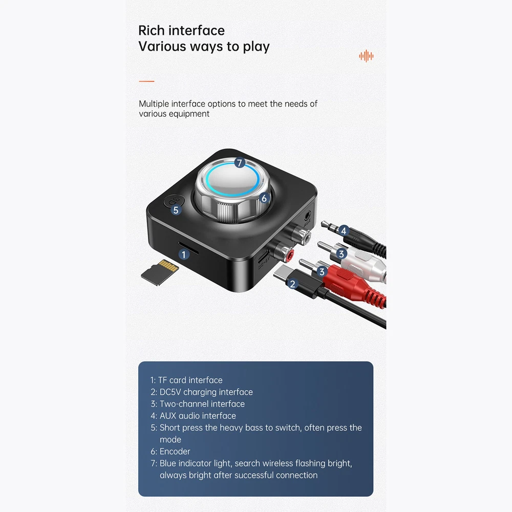 Product Description Bluetooth 5.0 Wireless Aux Audio Receiver 3.5mm Stereo Adapter Receiver Features: 1. This portable wireless audio Receiver and receiver is an ideal wireless audio solution suitable for various occasions and uses. 2. Broad compatibility. With the included 3.5 mm cable and 3.5 mm to RCA cable, the adapter can be widely used in your computer, laptop, home stereo system, earphones, smartphones, MP3 players, CD players, etc. Specifications: Bluetooth version: V5.0+EDR Protocol support: HSP, HFP, A2DP&AVRCP Bluetooth distance: 15M Frequency response: 2.4GHz Left and right channel isolation: 66Db Power supply mode: 5V/1A (the product will automatically turn on after power on, and the blue LED light will flash) Power on: Power on (blue LED flashes, Bluetooth is waiting for connection) Shut down: Long press the multi-function knob button to shut down the 2S product (the blue LED light is off) Bluetooth connection: pair the mobile phone's Bluetooth with the product's Bluetooth (the blue LED light is on, the Bluetooth connection is successful) Knob button: short press to pause/play when playing music (LED is always on) Knob button: Turn left to the previous song (LED is always on, song is switched) Knob button: Rotate to the right for the next song (LED is always on, and the song is switched) Knob button: turn left for a long time without loosing, the volume decreases (the LED is always on, the volume decreases to no sound and mute) Knob button: Rotate to the right for a long time without loosening the volume to increase (the LED is always on, and the maximum syllable has a beep) TF card mode: plug and read, after plug and read first (maximum support 64G) Play mode conversion: Bluetooth mode and TF mode can be converted by long pressing the 3D button (after switching the Bluetooth mode, short pressing the knob button to play mobile phone songs) Sound effect mode: Short press the 3D button to adjust the sound effect mode (switch between heavy bass and normal mode) Audio source interface 1: AUX audio interface (connect the product AUX and the device audio input port through an audio cable) Audio source interface 2: Lotus line interface (connect the L/R port of the product and the audio input port of the device through the Lotus line) Package includes: 1*Bluetooth USB 5.0 Receiver 1* Type-c charging cable 1* 3.5 audio cable 1* Lotus line Shipping Returns Contact Us Payment 1. Items sent from US warehouse. 2.Receiving time = Processing time + Shipping time 3. Processing Time: Around 1-2 business Days 4. Shipping Time: 3-5 business day it may have a little delay during some holiday (such as Christmas),any problem ,please feel free to contact 1. 30 days warranty from the purchased date. Please contact us via email before returning the defective item. 2.Our warranty does not extended to any product that are physically damaged or that are not under normal operating conditions as result of misuse or improper installation on the buyer/user's part. 3.Return items should include the original packaging and all accessories. buyers MUST contact us for the returning address. 4.In all cases, buyers pay shipping fees at their own cost to return products for exchange or refund. We will be responsible for the postage of replacements. Refund will be made upon receipt of the returned item. Pls contact us if you have any problems,we will try our best to solve for you We accept all verified payment from eBay. Shipping 1. Items sent from US warehouse. 2.Receiving time = Processing time + Shipping time 3. Processing Time: Around 1-2 business Days 4. Shipping Time: 3-5 business day it may have a little delay during some holiday (such as Christmas),any problem ,please feel free to contact Returns 1. 30 days warranty from the purchased date. Please contact us via email before returning the defective item. 2.Our warranty does not extended to any product that are physically damaged or that are not under normal operating conditions as result of misuse or improper installation on the buyer/user's part. 3.Return items should include the original packaging and all accessories. buyers MUST contact us for the returning address. 4.In all cases, buyers pay shipping fees at their own cost to return products for exchange or refund. We will be responsible for the postage of replacements. Refund will be made upon receipt of the returned item. Contact Us Pls contact us if you have any problems,we will try our best to solve for you Payment We accept all verified payment from eBay. You may also like TV Remote Control Controller For Bose Solo 5 TV Soundbar System 535 AUX1 CM525 18.99 USD Storage Case Travel Carrying Bag For Bose SoundLink 3 SoundLink III Speaker 20.0 USD 4Pcs/Set Tires & Wheels Rims For Tamiya TT01 TT02 XV01 HPS HPI 1/10 RC Car aa 22.77 USD Repair LCD Screen Hinge Flex Cable For Canon PowerShot G7X Mark II G7 X II G7X2 12.75 USD Echo Recoil Starter Assembly A051001312 A051001311 Pe-225 Srm-255 Pas-255 17.84 USD 1.99 USD 37mm Watch Dial With Hands For ETA 6497 ST3600 Watch Movement 5 Colors Optional 16.99 USD powered by