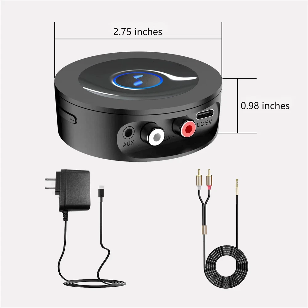 Bluetooth 5.2 Receiver for Home Stereo AUX Adapter for HiFi Music Streaming, Wired Speakers, with AUX 3.5mm/RCA, Long Range,Low Latency and HD Audio Bluetooth Receiver Only: This receiver works as an external Bluetooth of home stereo, stereo receiver, speaker, NOT for Bluetooth headphones. It pairs with smartphone, PC, tablet, supporting 2 connections at the same time. Low Latency and HD Audio: The powerful Bluetooth chip is adaptive to transmit low-latency and HD audio for movies or music. Long Range: The stable connection of this Bluetooth receiver can cover a range of 80ft at least without obstacles. AUX and RCA Outputs AUX and RCA Outputs: Equipped with 3.5mm AUX and RCA ports and cable, this receiver adapts to different inputs of audio players. Easy to Use: Just plug, pair and play, no more settings. NOTE: This is only a RECEIVER that works in conjunction with a low latency HD transmitter for the ultimate effect.