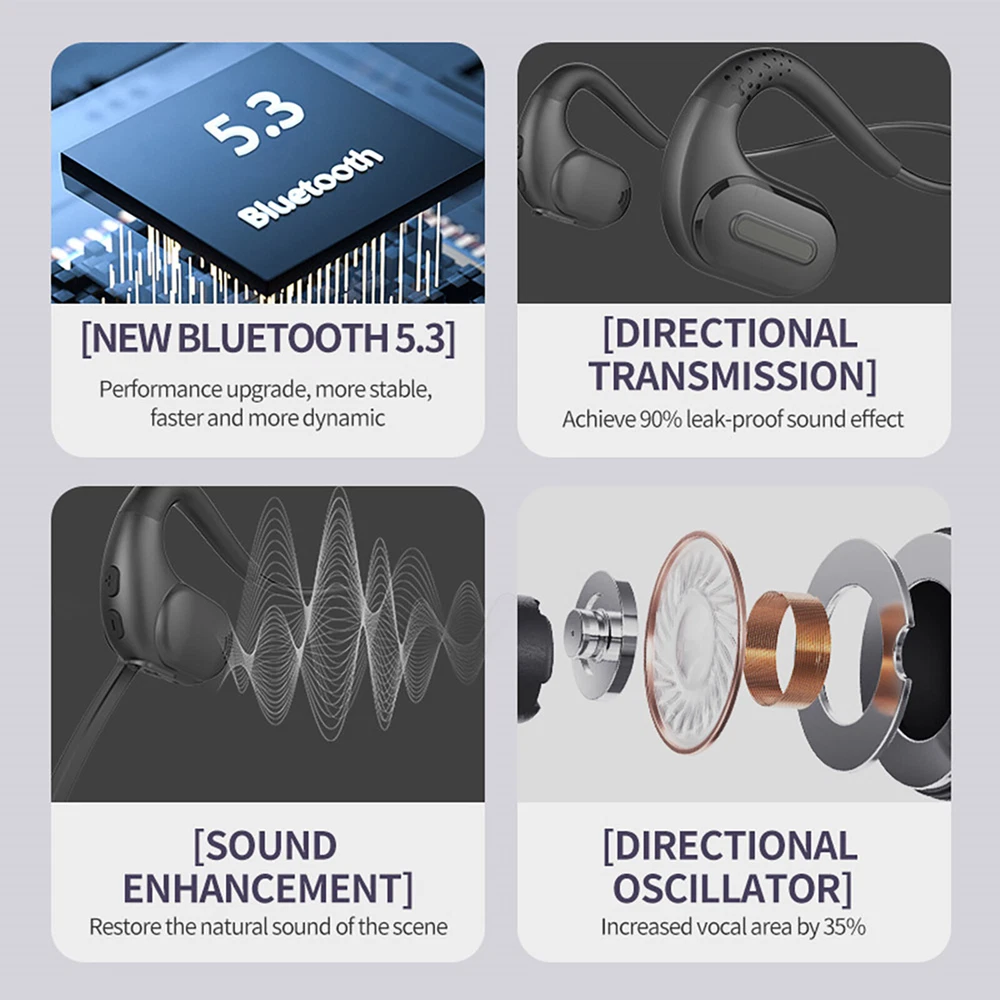 Product Description Features: 1. [Air Conductive Headphones] Hanging Ear Air Conductive Headphones Free your ears, compared with traditional in-ear headphones, this model has an open-ear design, no need to plug the headphones into your ears. Open ear headphones wireless bluetooth not only keep your ear canal clean and won't damage your eardrums, but they also don't cover your ears so you can be aware of your surroundings, avoid potential dangers and stay safe! 2. [Detachable Noise-Canceling Microphone] The open ear headphones are equipped with DSP noise-canceling technology to ensure clear calls and a great music experience. The detachable boom arm is magnetically designed and can be rotated 360° to maximize your voice pickup, thus improving call quality! In addition, the bluetooth headset with microphone has Φ12.8mm driver speaker, it is bigger than other headphones, the sound will be clearer and louder. 3. [All Day Lightweight and Comfortable] The wireless headset is ergonomically designed. The ear hooks are made of silicone, skin-friendly and comfortable, fit your ears firmly and fixed without moving or bouncing, you can wear them for a long time without causing ear pain. Bluetooth headset with microphone without deformation 360° bending memory wire, twist at will without breaking. Easier to carry, you can hang it around your neck and take it anywhere you want. 4. [Premium Bluetooth 5.3 Stable Connection] The wireless headset is equipped with a premium Bluetooth 5.3 chip for fast signal transmission and stable connection, with a range of up to 33 feet (10 meters). After successful connection, it will automatically connect to the last connected device. The Bluetooth headset can connect to two devices at the same time to ensure that you don't miss a call. The Bluetooth headset noise cancellation is widely compatible with cell phones/PC/PC/laptop/tablet/iPad etc. 5. [Professional IPX5 Waterproof for Sports] The open headset wireless bluetooth with microphone has an IPX5 waterproof rating, perfect for people who like sports, running, biking, hiking, skiing, snowboarding, exercising! Bluetooth headset with noise canceling microphone is the best partner for office, conference, truckers, online teaching, call center, home work. (Note: It only protects against small amounts of sweat and rain, not recommended for swimming!) 6. [Durable and Long Life] Durable and long life bluetooth headset with microphone, built-in high-capacity 150mAh rechargeable lithium-ion battery, standby time up to 200 hours, Type-C USB fast charging for about 1.5 hours, you can enjoy 10 hours of uninterrupted music/calls. Multi-function buttons for easy operation, turn on/off, play/pause music, activate voice assistant, switch between music/game mode, answer/hang up/reject/reconnect calls. Specifications: Product name: Bluetooth headset Product Type: On-ear Product Model: G9 Bluetooth version: 5.3 Transmission distance: 10 meters Bluetooth protocol: A2DP AVRCP HFP HSP Battery Capacity: 150mAh Operating time: 10H Charging time: 1.5H Standby time: 200H Charging port: type-c Output power: 66mW Frequency Response: 20Hz-20000KHz Speaker size: 12.8mm Speaker impedance: 30Ω Product Material: ABS Product color: Black Package includes: 1*Bluetooth headset 1*Type-c cable 1*Detachable microphone If you have any doubts or uncertainty about this item, contact us with no hesitation, we are always here and will solve your problems. Thanks and wish you a nice day! About Us We dedicated to provide excellent products and services for all customers on ebay. hope we all can have a nice experiences on eBay. Payment We accept all verified payment through PAYPAL payment. Shipping Usually, Item will be shipped within 1-2 working day after full payment is received. Normally, you will receive the item in 5-7 days. Please contact us if you don’t receive the items after 10 working days after the payment If you have any questions about shipping, please feel free to contact us. Returns Always believe we can solve problems by communication if it comes to any problems about products or any others. If it comes to a return, the products must be intact and as original when you received, and should be within 30 days after you received it. Contact Us Work time: 9:00 AM to 18:00 PM Beijing Time You can contact us at anytime you want, we will reply all messages at the first time. powered by