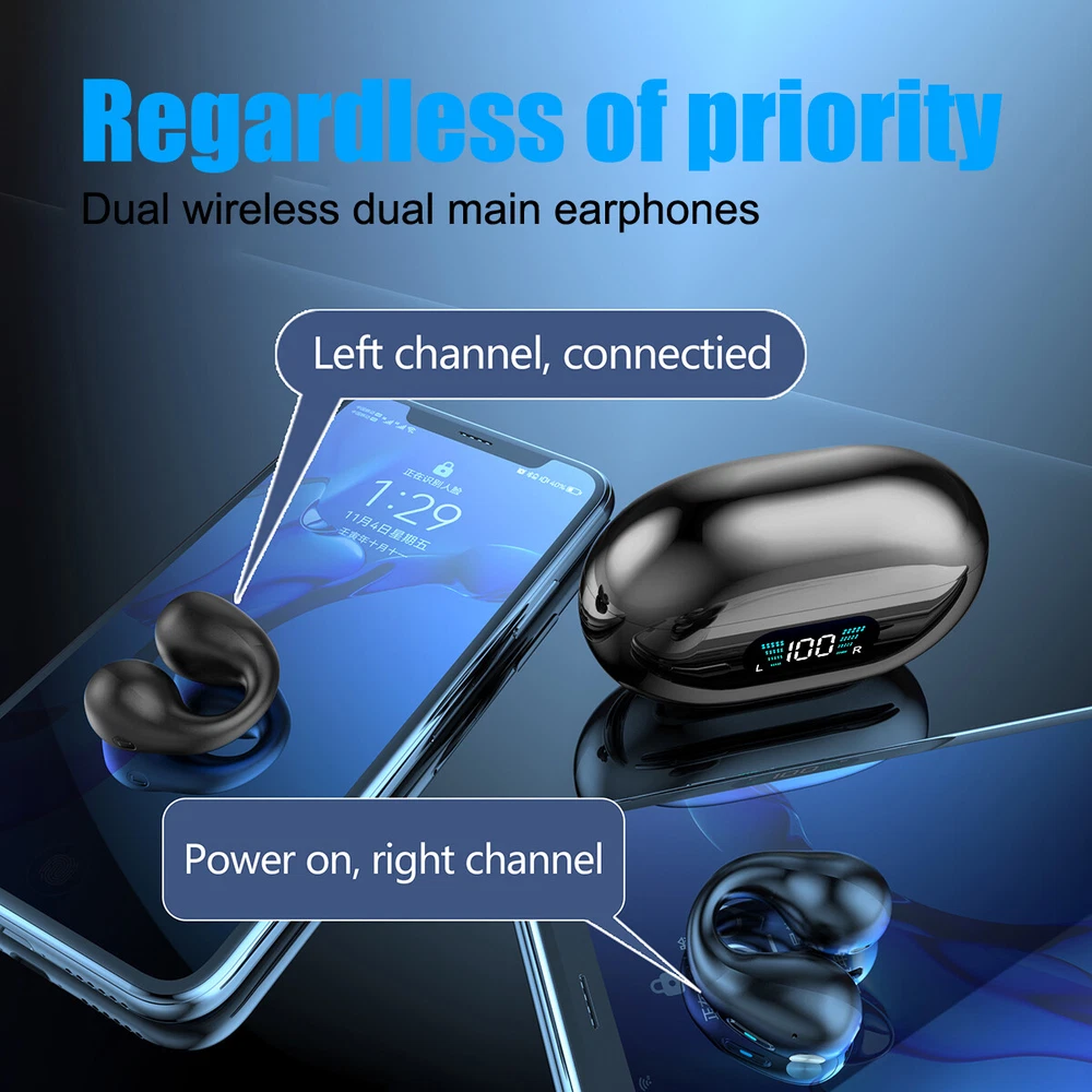 Product Description Features: *HiFi sound effect is fully open, inaudible and insensitive to wear, with three band balanced and surging stereo surround sound effect, and full high pitch, full mid-range, and powerful bass for full range adjustment. Open your ears to enjoy sports; *The clip on ear style is comfortable and comfortable to wear . Whether it's running rope skipping, dancing or boxing, the clip on ear style can not shake off the movement freely. *Comfortable ear angle and fit, CVC algorithm can intelligently identify the noise reduction environment color, which can play a good role in noise reduction, no matter in calls or music *Equipped with imported Qualcomm Bluetooth 5.3 chip , 2MB/s high bandwidth, low loss data transmission, fast response, stronger anti-interference, and farewell to problems such as delay and jamming *24-hour super endurance 500mAh electric cabin capacity, low power consumption 5.3 Bluetooth, headset can listen to music continuously for 24 hours when fully charged, combined with the charging cabin, and can last for 480 hours * 360 ° surround sound field experience the battlefield of gunfire , bring you the film and television stage experience of sound in its environment, enhance the stereo sense, and experience different surround stereo sound effects. *IPX6 is sweat proof, waterproof , sand proof, and devoted to sports. It's waterproof and dust-proof, and you don't need to worry about the damage caused by sweat to the earphones everyday. *Intelligent digital display of electric quantity in LED charging cabin , creative design of racing lamp, LED intelligent electric quantity display in charging cabin. The electric quantity in charging cabin and earphones is clear at a glance, so there is no need to worry about being out of power *One button intelligent control says goodbye to all complicated operations: Three clicks of the MFB key on the right ear decrease the volume, and every three clicks decreases the volume by one space (in the song playing state) Three clicks of the MFB key on the left ear increase the volume, and every three clicks increase the volume by one grid (in the song playing state) Long press the L ear MFB key for 1 second, long press the R ear MFB key for 1 second for the previous song, and long press the R ear MFB key for the next song Parameters: Product name: ear clip Bluetooth headset Charging function: the charging chamber charges the headset Horn size: 13mm diameter Body material: ABS+PC Voice prompt: Chinese/English prompt Sensitivity: - 85dBm Screen display: charging/power display Bluetooth version: Bluetooth 5.3 Charging time of headset: about 1 hour Charging time of charging chamber: about 2 hours Standby time: about 480 hours Battery capacity of headset: 40mAh Bluetooth transmission distance: ≤ 10m Instructions: Chinese/English Key/touch: touch Charging line length: 30CM Playback time: about 15 hours Charging voltage: DC 5V Charging port: Type-C Charging chamber capacity: 400mAh Frequency range: 2.402GHz - 2.480GHz Signal to noise ratio: ≥ 90dB Color: black/White Low battery reminder: voice low battery reminder Packing List: Headset * 1 pair manual * 1 charging cable * 1 Payment Shipping Terms Returns Contact Us We accept PayPal only. If buyer want to delay the payment because of financial problem, please contact me by the ebay message within 3 days Payment via PayPal (PayPal accepts all major credits/debit cards and eCheque) ECheque payment will tak e 3-10 days to get clear, thus DELAYing the shipment. Handling time: 1 business day (Orders are not processed on weekends & holidays) Tracking information will be sent once item is shipped. Local pick-up is unavailable at the moment. For international shipping and shipping to Guam, Hawaii and Alaska, Please contact us before placing the order. Item is shipped to ebay address. Leaving correct address can minimize delay. For any issues with Defects, Return, Item Exchange request, please contact us first and send us a message first before opening any type of case or request. We devote ourselves making EVERY CUSTOMER in 100% Satisfactory and resolve any problem. We highly value and appreciate your business. Thank you. No returns will be accepted without an RMA number. Please contact us for the RMA number. Return is acceptable within 30 days of delivery. Return for replacement or money back is optional. Returned items must be in the brand new, unaltered and resalable condition. Seller is not responsible for any labor cost, expense in a dealer store, or damage due to wrong installation. Return is accepted within 14 days after the buyer's receiving the item. (Excluding contrived damagement or misusage).100% money-back Guaranteed! All product will be tested in 100% before delivery.If the item is defected by the processing of postage,Buyer has up to 14 days from date of receipt for exchange of a new one.All shipping charges for returned products are to be paid by the buyer,Please contact us for the return address All messages will be answered within 24 office hours. Please contact us either by clicking "contact seller" in the "purchase history" section or simply click "ask a question" at the bottom of this page. If you are unsatisfied with our item or service, please contact us before leaving any feedback. We are committed to resolve all issues in a friendly and satisfactory manner. We always reply to messages within 2 business days (off-duty at weekend). If you do not get a response from us, then please check your junk or spam mailbox. Payment We accept PayPal only. If buyer want to delay the payment because of financial problem, please contact me by the ebay message within 3 days Payment via PayPal (PayPal accepts all major credits/debit cards and eCheque) ECheque payment will tak e 3-10 days to get clear, thus DELAYing the shipment. Shipping Handling time: 1 business day (Orders are not processed on weekends & holidays) Tracking information will be sent once item is shipped. Local pi