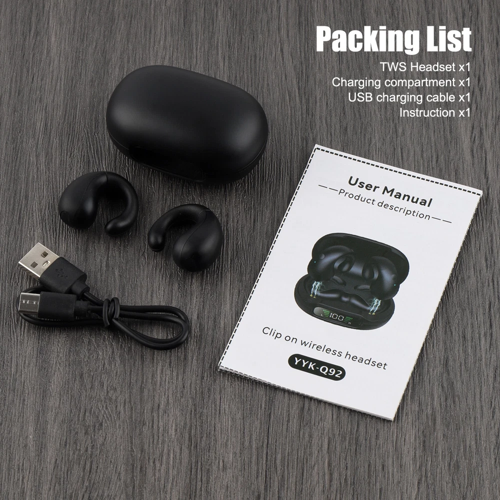 You may also like Wireless Bluetooth 5.2 Headset TWS Earphones Earbuds Stereo Headphones Ear Hook/ 9.42 USD Free shipping LED Over The Ear Earbuds True Wireless Open 144+ Translator Earphones V5.4 OWS . 19.99 USD Free shipping TWS Wireless Bluetooth Waterproof Earbuds Bluetooth5.3 Headset Noise Cancelling. 11.88 USD Free shipping Translator Earbuds 150+Languages-Real Time Online Off-Line Translation Earphones 13.99 USD Free shipping for iPhone IOS Translate Earbuds Real-Time Translator Earphones Online / OffLine 17.39 USD Free shipping Wireless Bluetooth 5.3 Bone Conduction Headphones Outdoor Sport Earbuds Headset_ 12.59 USD Free shipping New Wireless Bluetooth 5.3 Earbuds Ear Clip -Bone Conduction Headphones Headset. 15.45 USD Free shipping 2024 144+Languages Translator Earbuds Real Time Translator Earphones Smart Voice 15.95 USD Free shipping Open-Ear Wireless Bluetooth 5.3 Earphones Bone Conduction Headphones Waterproof# 21.99 USD Free shipping Smart Voice Translator Earbuds 150+ Languages Real Time Translator Earphones A++ 17.88 USD Free shipping TWS Smart Touch Screen Earbuds Wireless Bluetooth Headphones Headset Mic Stereo※ 23.82 USD Free shipping Product Description Bluetooth 5.3 Wireless Ear-Clip Bone Conduction Headphones Earbuds Sport headset Product selling points: 1) Senseless clip on earphones, comfortable to wear, painless to wear for a long time, firm clip on the ears, and can't be thrown off violently 2) Panoramic stereo sound effect, clear sound quality, lossless sound quality 3) The headphones adopt the latest directional sound transmission technology, with no leakage of sound and concentrated volume 4) The earphones are equipped with titanium metal memory material, which does not deform after bending, making them sturdy and durable 5) Comfortable and skin friendly shell material, friendly to ear skin. High elasticity material, stretchable and adjustable angle 6) Adopting Bluetooth 5.3 chip, with clear sound quality and stable connection. Low power consumption and longer usage time 7) Accurate touch area, fast operation feedback, no accidental touch, full score for user experience 8) Built in new material battery, paired with battery compartment for easy full day battery life 9) Digital display of battery level, clear understanding of battery remaining 10) The size of the charging compartment is only 6.6 * 4.1 * 3.2cm, which is compact and does not take up space when placed in a pocket Product parameters: Product material: ABS silicone titanium metal Earphone size: see image Earphone style: clip on, stylish, sporty Bluetooth version: V5.3 Bluetooth name: Q92 Connection distance: 10 meters Wearing method: ear clip Applicable equipment: universal Control method: touch control Earphone battery: 40mA Talk time: approximately 6 hours Listening time: about 6 hours Headphone charging time: 1 hour Charging compartment battery: 300 mA Packaging list: TWS earphone x1 Charging compartment x1 USB charging cable x1 Instructions x1 Payment We accept PayPal only. If buyer want to delay the payment because of financial problem, please contact me by the ebay message within 3 days Payment via PayPal (PayPal accepts all major credits/debit cards and eCheque) ECheque payment will tak e 3-10 days to get clear, thus DELAYing the shipment. Shipping Handling time: 1 business day (Orders are not processed on weekends & holidays) Tracking information will be sent once item is shipped. Local pick-up is unavailable at the moment. For international shipping and shipping to Guam, Hawaii and Alaska, Please contact us before placing the order. Item is shipped to ebay address. Leaving correct address can minimize delay. Terms For any issues with Defects, Return, Item Exchange request, please contact us first and send us a message first before opening any type of case or request. We devote ourselves making EVERY CUSTOMER in 100% Satisfactory and resolve any problem. We highly value and appreciate your business. Thank you. No returns will be accepted without an RMA number. Please contact us for the RMA number. Return is acceptable within 30 days of delivery. Return for replacement or money back is optional. Returned items must be in the brand new, unaltered and resalable condition. Seller is not responsible for any labor cost, expense in a dealer store, or damage due to wrong installation. Returns Return is accepted within 14 days after the buyer's receiving the item. (Excluding contrived damagement or misusage).100% money-back Guaranteed! All product will be tested in 100% before delivery.If the item is defected by the processing of postage,Buyer has up to 14 days from date of receipt for exchange of a new one.All shipping charges for returned products are to be paid by the buyer,Please contact us for the return address Contact Us All messages will be answered within 24 office hours. Please contact us either by clicking "contact seller" in the "purchase history" section or simply click "ask a question" at the bottom of this page. If you are unsatisfied with our item or service, please contact us before leaving any feedback. We are committed to resolve all issues in a friendly and satisfactory manner. We always reply to messages within 2 business days (off-duty at weekend). If you do not get a response from us, then please check your junk or spam mailbox. powered by