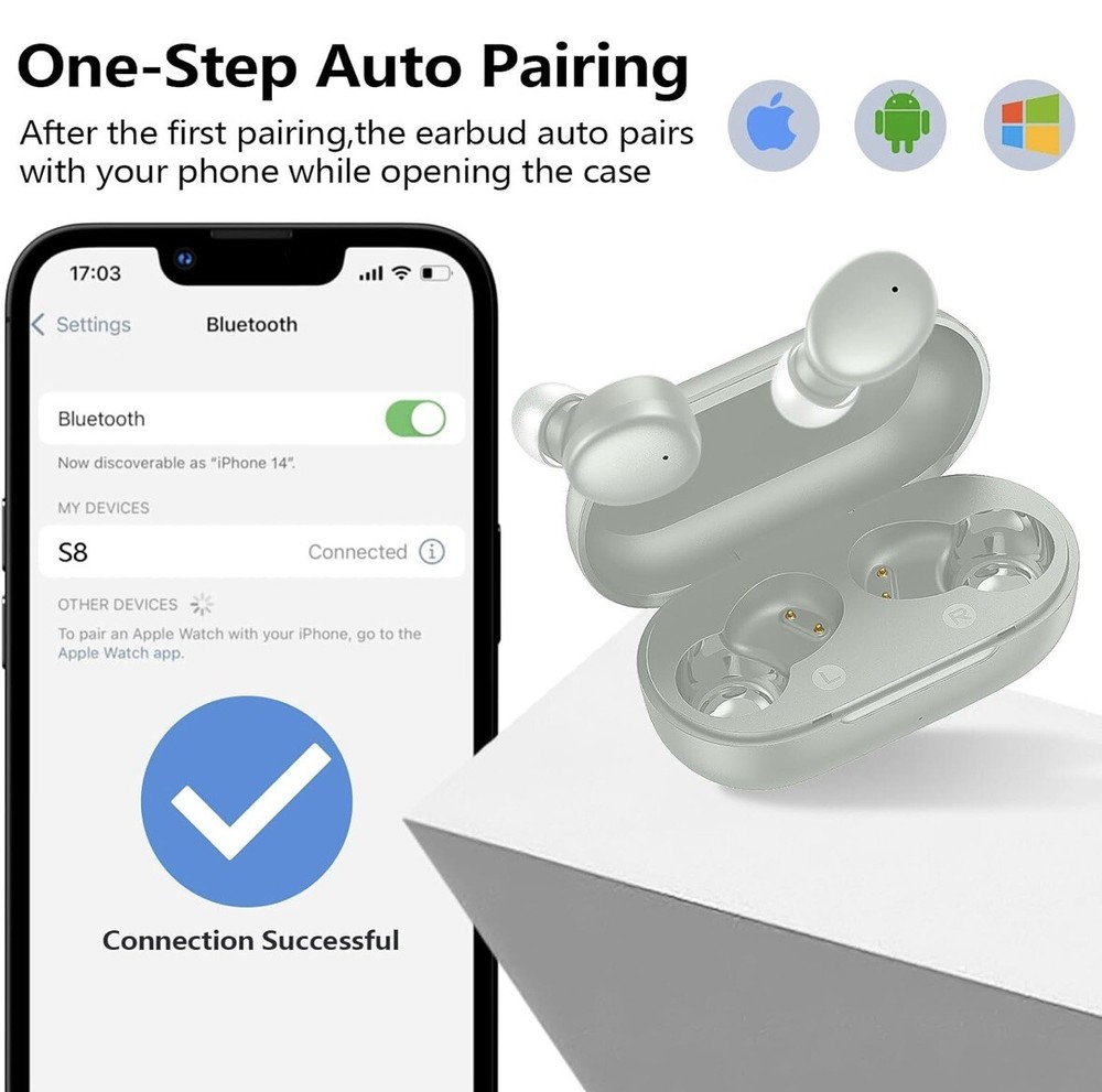 Compact and Lightweight Design: Weighing just 3.7g per earbud, the kurdene S8 wireless earbuds are ultra-lightweight and portable, making them an excellent choice for workouts and daily commutes. They come with three pairs of ear caps to ensure a perfect fit for your ear canal shape. Immersive Audio Experience: Featuring 10mm dynamic drivers and advanced Bluetooth 5.3 technology, the S8 earbuds deliver powerful, wide-range audio with dynamic treble and deep bass, providing an immersive listening experience for music, videos, and calls. Intuitive Touch Controls: With highly responsive touch controls, you can effortlessly switch music tracks, adjust volume, answer calls, and activate voice assistants without fumbling for your phone or dealing with physical buttons. Long-Lasting Battery Life: A single charge provides up to 8 hours of playtime, while the included charging case extends the total playtime to an impressive 60 hours, ensuring you can enjoy your favorite audio content without interruption