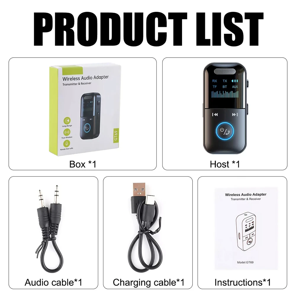 You may also like 60pcs Dial Feet Stickers Watch Movement Repairment Spare Parts Watchmaker Tool g 20.99 USD Free shipping A380 Qantas Australian Civil Airliner Aircraft Plane Aviation Model With Stand j 12.99 USD Free shipping RCA to HDMI Converter, Composite to HDMI Adapter Support 1080P PAL/NTSC A 16.99 USD Free shipping 1 Set Luminous Watch Hands For NH35/NH36 Watch Movement Replacement Parts 10.69 USD Free shipping Tri-band N9 MINI GSM AUDIO LISTENING BUG 2x SENSITIVE MICROPHONE Ear Bug Device 17.99 USD Free shipping 21,600bph Date At 6 Automatic Mechanical Watch Movement w/ Stem for NH35 NH35A 63.99 USD Free shipping Product Description Bluetooth 5.4 Audio Music Wireless Receiver AUX 3.5mm Home Car Adapter W/ Cable Features: 1. High quality chips with good stability and superior performance 2. Integrated reception/transmission/MP3 playback 3. The product is equipped with a built-in battery, providing long-lasting battery life 4. Digital display screen design, clear and visible 5. Compact and exquisite, with powerful functions 6. Supports TF card expansion, with a maximum support of 32GB for TF cards 7. Equipped with a 3.5mm audio cable that can directly connect to the device 8. Improve cars, audio systems, computers, televisions, tablets, and more Specifications: Product Name: Bluetooth Adapter Bluetooth version: 5.4 Transmission distance: approximately 10 meters Power supply method: Type-C interface Battery capacity: 200mAh Working hours: Approximately 6 hours on full charge TF card support: up to 32G (not included) Transmission speed: 100M (Mbps) Working frequency: 2.4 (MHz) Function: Receive/transmit/MP3 playback/3.5mm audio cable connection TX (transmission mode) 1. Connect the adapter to a computer, TV, or other device that needs to be used with an audio cable, and turn the side switch to TX 2. Power on, when "TX" is displayed and continuously blinks, the adapter is in emission mode 3. Turn on the Bluetooth earphones or Bluetooth speakers and make sure they are in Bluetooth pairing mode. Wait for the adapter to automatically pair with Bluetooth headphones or Bluetooth speakers. After successful pairing, the display screen "TX" stops blinking and remains constantly on. Then, you can play music on your computer or TV, and the sound will be transmitted to Bluetooth headphones or Bluetooth speakers. RX (receiving mode) 1. Connect the adapter to the speaker using an audio cable and turn the side switch to RX 2. When turned on, the display screen will display "RX" and flash. At this point, the adapter is in receive mode. 3. Turn on Bluetooth, search for "GT69" and connect. After successful pairing, the "RX" on the display screen stops flashing and remains on, allowing music to be played. Play music from TF card 1. Insert the TF card into the TF card slot on the side, the screen will display "TF", and the adapter will automatically start playing. 2. Long press simultaneously: Press and hold the up and down buttons while switching modes Remarks If pairing fails, please confirm that the device to be paired is not being used by other devices. You can try pressing the "R" key a few more times. If it fails multiple times, please restart the adapter and Bluetooth earphones or Bluetooth speakers, and then repeat the above steps. Package includes: 1* Bluetooth Adapter 1* Audio Cable 1* Charging Cable Shipping Contact Us We ship most of our orders within 24 hours, and may up to 48 hours from US Warehouse. In 2-5 working days, you will receive your items. Sometimes due to problems with our transportation company system, your shipping information may be delayed to update. We recommend that you try again after 3-4 days. If you still haven't checked the shipping information, you can contact us by ebay message. If you have any questions, our Customer Service staffs welcome you to email us. We strive to answer all questions and resolve any problems as quickly as possible. You can contact us 7*24, we will reply at the first time, and we will surely solve your problems. Note: 1.We try our best to reply to your emails as soon as possible, however, due to high volume of daily incoming emails and time zone difference, we may not be able to reply your emails immediately. Please allow 1 business days for us to response. If you do not receive any reply from us, please check your email ensuring your mailbox has not reached full size. 2.Due to some ISP SPAM filter settings, you may not be able to receive our replies; if you have problems receiving our emails, you may need to use a different email account to contact us. 3.Please give us the opportunity to resolve any problem. We understand the concerns and frustrations you might have, and will try our best to resolve the issues. Please email us before leaving any negative feedback or open any dispute on PayPal. 4.We care about our valued customers, and will always try to help you. So if you have any problems, please e-mail us immediately. Shipping We ship most of our orders within 24 hours, and may up to 48 hours from US Warehouse. In 2-5 working days, you will receive your items. Sometimes due to problems with our transportation company system, your shipping information may be delayed to update. We recommend that you try again after 3-4 days. If you still haven't checked the shipping information, you can contact us by ebay message. Contact Us If you have any questions, our Customer Service staffs welcome you to email us. We strive to answer all questions and resolve any problems as quickly as possible. You can contact us 7*24, we will reply at the first time, and we will surely solve your problems. Note: 1.We try our best to reply to your emails as soon as possible, however, due to high volume of daily incoming emails and time zone difference, we may not be able to reply your emails immediately. Please allow 1 business days for us to response. If you do not receive any reply from us, please check your email ensuring your mailbox has not reached full size. 2.