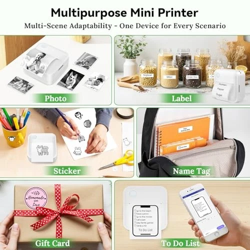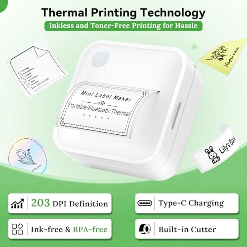 Mini Portable Sticker Printer Label Maker with 8 Rolls Paper