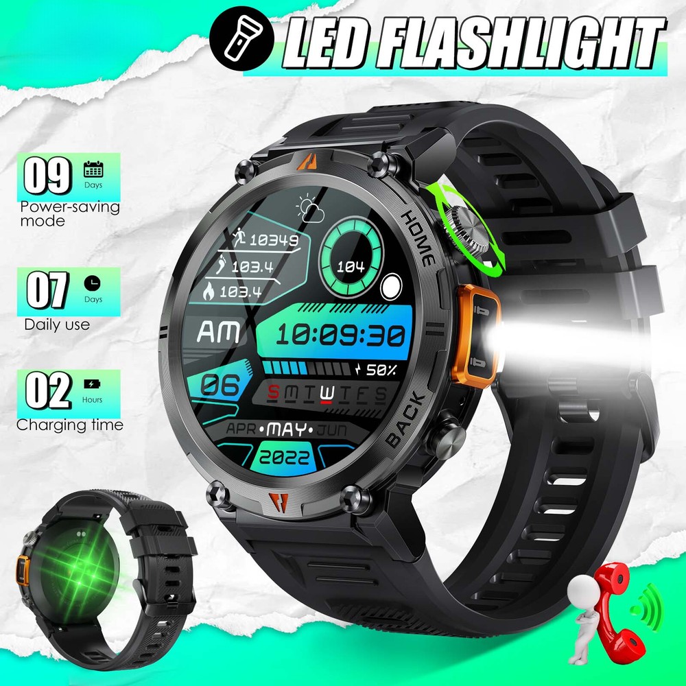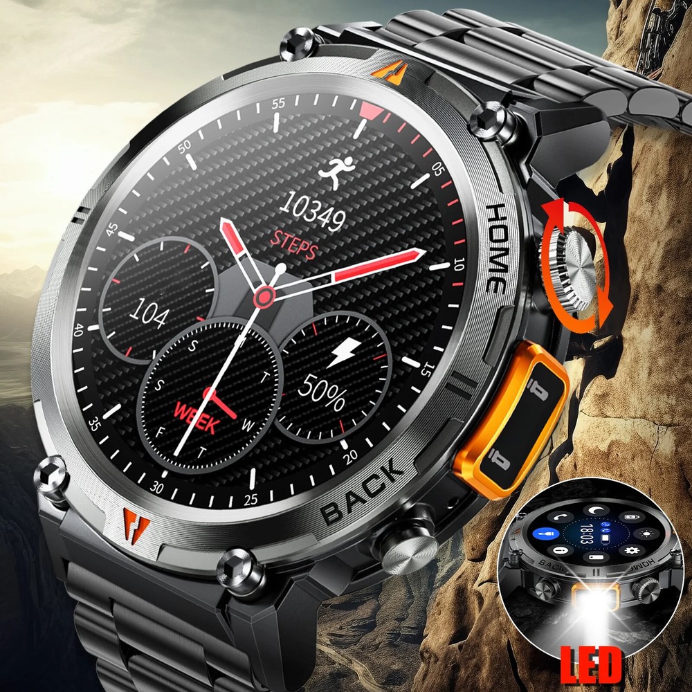 This smartwatch is a game-changer! The 1.45" HD touchscreen is super responsive, and the sleek zinc alloy case gives it a premium feel. Love the accurate heart rate tracking and sleep monitoring—super helpful for fitness goals. The built-in flashlight is surprisingly handy, and Bluetooth calling works flawlessly. Battery lasts a solid week, and magnetic charging is convenient. The waterproof design means no worries during workouts or rain. Comfortable silicone band, crisp display, and smooth performance—great value for the price!