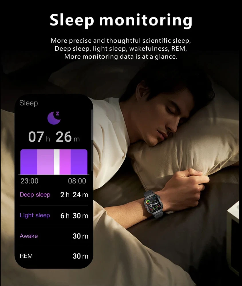 2024 New For Xiaomi Military Smart Watch Men IP68 5ATM Outdoor Sports Fitness Tracker Health Monitor 1.96" BT Call Smartwatch Parameter: Display: 1.96-inch HD Touch TP: full screen touch Buttons: 2 buttons with encoder Battery: 420mAh high voltage and large capacity Working time: 7-10 days Standby time: about 50 days Bluetooth: BLE5.2 APP:gloryFit System support: Android 4.4 or above, IOS 9.0 or above, Apple 5S or above Waterproof level: 3ATM Function: Continuous heart rate, one-click link, Bluetooth calling, true blood oxygen saturation, blood pressure monitoring, sleep monitoring, brightness adjustment, breathing training, voice assistant, raising hands and screen, information push, APP message reminder, more than 100 sports modes, weather Forecast, flashlight, clock display, alarm clock, SOS mini-game, calculator, female menstrual cycle, music playback, multi-function dial, custom wallpaper, sedentary reminder, do not disturb mode, search bracelet, remote camera, step counting, distance , calories, and more language: Watch languages: Chinese, English, Korean, Japanese, German, Spanish, French, Italian, Portuguese, Arabic, Polish, Russian, Indonesian, Turkish, Dutch, Czech, Traditional Chinese, Vietnamese APP languages: Ukrainian, Russian, Indonesian, Turkish, Hebrew, German, Italian, Czech, Slovak, Japanese, French, Polish, Thai, Simplified Chinese, Traditional Chinese, Romanian, English, Portuguese , Mongolian, Spanish, Vietnamese, Arabic, Korean Q:Why is the blood pressure value deviated from the sphygmomanometer? A:The deviation between the measurement value of the watch and the sphygmomanometer is determined by a variety of factors. The measurement site of the sphygmomanometer is in the radial artery, and the measurement site of the watch is the two main branches of the arteriole. Normaly, the aortic blood pressure measurement and the arteriole Blood pressure measurements will vary by three to forty; if you use a watch and a sphygmomanometer to measure at the same time, because the blood ?ows in the artery in the direction of the centrifuge, the sphygmomanometer measures the straps so that the lower part of your elbow is under pressure. Temporary blood cannot ?ow smoothly to the branch of the artery below, and the vascular tension is increased, which will make the upper and lower blood pressure measurement values more biased. Q:Why can't the watch receive the message push? A:Android phone settings1. Con?rm that the message push switch is enabled on the mobile client.2. The con?rmation message can be displayed normally in the mobile phone noti?cation bar. The watch message push is pushed by reading the mobile phone noti?cation bar message; if there is no message in the mobile phone noti?cation bar, the watch will not be able to receive the push(need to ?nd the noti?cation setting in the phone settings, open WeChat, QQ phone, SMS, noti?cation button of mobile client)3. Open the auxiliary function settings of the wristband client(see the auxiliary function in the settings on the phone, and open the auxiliary function settings of the wristband client) Apple phone settings:1. Con?rm that the message push switch is enabled on the mobile client.2. the con?rmation message can be displayed normally in the mobile phone noti?cation bar(need to ?nd the noti?cation settings in the phone settings, open WeChat, QQ phone, SMS, mobile phone client noti?cation switch) Q:Why does the pedometer not count steps when I have already started walking? A:To reduce errors, smart watch usually sets an initial value of 10, it will count steps when we walk more than 10 steps. The APP will show the real walking steps and start counting from step 10. Q:What application is used when connecting to a smart phone? A:The app is designed by the supplier. You can scan the QR code on the package or manual to download it when you get the item. Q:Why the device cannot boot or start up properly? A:Please charge your new device for at least 10 minutes or more before the first usage, this ensures normal device boot and optimal operation. For devices with removable batteries, ensure they are properly installed before charging. Q: Can not find device when pairing device? A:Please make sure the distance between phone and device less than 0.5m Please make sure the device is not under low battey.if there is still problem after 1.5hours charging,Please cantact us. Q:Can not connect the devicewith app? A:Some smart phone bluetooth service will be abnormal when reboot.Please reboot the smart phone for pairing device. Q:Why the android mobile disconnect? A:Android mobile phone system memory management will be forced to turn off the background app,you need to turn off the power saving mode or pull the app into the ayatem housekeeping green background inside,app will not be forced to close.app must be running in the background,bluetooth will not automatically disconnect. Q: Why couldn’t I connect the Bluetooth? A:1. Please download the app firstly 2. Search Bluetooth name on your APP and then connect it. 3. You can see request to connect on the phone, click “pair. If you had connected the Bluetooth before, please clear all your phone's Bluetooth devices. Q:Is the watch waterproof? A: Smart Watch is splash-proof and sweat-proof, so it is ok while you are doing sports . But you can’t swim with it. (please note: it does not support the brewing hot water, hot bath, and water vapor. Please avoid using and storing the device at the place of high temperature & high humidity.)