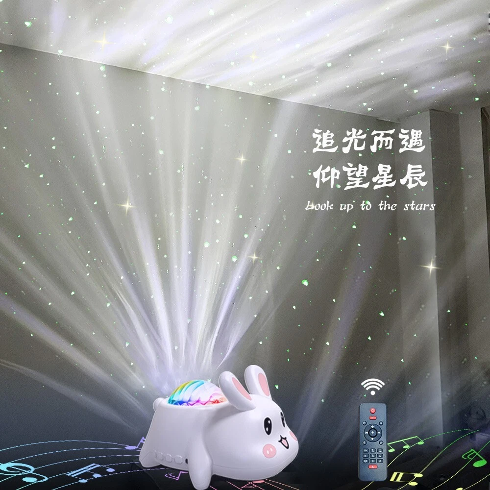 Bluetooth Speaker Holiday Birthday Gift Starry Sky Cute Rabbit Projection Lamp Description The Bluetooth Speaker Holiday Birthday Gift Starry Sky Cute Rabbit Projection Lamp is a charming and multifunctional decor piece that combines whimsical design with practical features. This adorable lamp projects a beautiful starry sky across walls and ceilings, creating a serene and magical atmosphere. Featuring a cute rabbit design, it adds a playful and cozy touch to any room. The built-in Bluetooth speaker allows you to play music or your favorite audio, syncing with the light projections for an immersive experience. Perfect for holiday gifts, birthdays, or as a nightlight, this lamp brings a touch of fun and relaxation to bedrooms, living rooms, or play areas. Please message me if you have any questions.