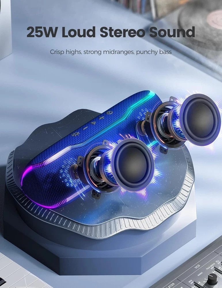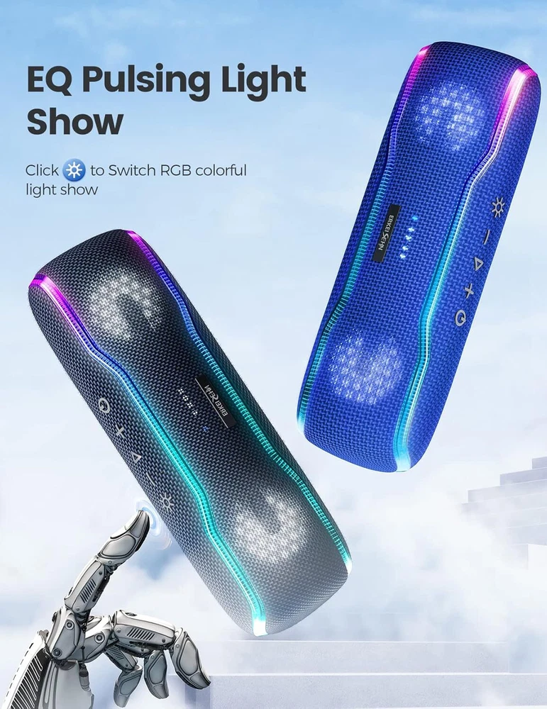 Product Description ERKEISEHN Bluetooth Speaker, IPX7 Waterproof Wireless Speaker with Colorful Flashing Light, 25W Super Bass with 24H Playtime, 100ft Bluetooth Range, TWS Pairing for Outdoor, Home, Party, Beach, Travel [Loud Stereo Sound & Dual Pairing] Deliver surprisingly loud and well-balanced sound with virtually no distortion through 2 drivers and our proprietary technology. Enjoy up to 25W room-filling sound with punchy bass, strong midranges, and crisp highs. Pair 2 speakers together via Bluetooth to play the same music in perfect sync, double the volume, and create an immersive stereo sound experience. It is your perfect partner for playing games, listening to music and watching movies. [IPX7 Waterproof & Rugged Design] Being IPX7 waterproof, this wireless Bluetooth speaker is protected against rain, spills, and splashes and can even survive submersion in up to 3.3 feet of water for up to 30 minutes. Engineered to with stand bumps and drops, the outdoor speaker in a rounded triangular prism shape is more durable than others and compact enough to hold. Perfect for using in house parties or taking to pool parties, beach parties, barbecues, biking, hiking, camping, etc. [Bluetooth 5.3 & Up to 24 Hours Playtime] Bluetooth 5.3 provides incredible wireless Bluetooth range of up to 100 feet from your device. And this portable wireless Bluetooth party speaker lasts all day long with up to 24 hours of playtime per charge. You can turn on/off the multi-color lights & two hidden speaker lights by click the "Light Button" on the surface to suit your needs and extend the battery life. The actual playtime varies by volume level, audio content, and use. [EQ Pulsing Colorful Light Show] Get the party started with crisp and clear sound and rock the party with multi-color flashing lights. A short press of the "Light Button" to enable the flashing colorful LED lights and livens up your party. The multi-color LED lights and two hidden speaker lights will sync to the beat of the music to create a pulsing light show. [What You Get] 1 waterproof Bluetooth speaker,1 Type-C charging cable, 1 quick start guide, and lifetime technical support. The built-in microphone lets you handle phone calls handsfree without reaching for your phone. You can also stream music via the AUX jack. Crystal clear music and colorful flashing lights make these Bluetooth speakers with lights great gifts for men and women, girls and boys. About Us We are a reputable seller with many years of experience selling on eBay. Our goal is to provide high-quality products and excellent customer service. Payment 1.We accept PayPal only. 2.All major credit cards are accepted through secure payment processor PayPal. 3.Payment must be received within 7 business days of auction closing. 4.We ship to your eBay or Paypal address. Please make sure your eBay and Paypal address is correct before you pay. Feedback will be left automatically after we receive your feedback. Please contact us before leaving a Negative feedback or Neutral feedback. We would try our best to help you solving any problem. Shipping Items will be shipped within 1-3 business days when we received payment. (Orders are not processed on weekends & holidays) Tracking information will be sent once item is shipped. Delivery time depends on destination and other factors Item is shipped to ebay address. Leaving correct address can minimize delay. For international shipping and shipping to Guam, Hawaii and Alaska, Please contact us before placing the order. International buyers please note: Import duties, taxes and charges are not included in the item price or shipping charges. These charges are buyer’s responsibility. We will try our best to reduce the risk of the custom duties. Local pick-up is unavailable at the moment. Returns For any issues with Defects, Return, Item Exchange request, please contact us first and send us a message first before opening any type of case or request. We devote ourselves making EVERY CUSTOMER in 100% Satisfactory and resolve any problem. We highly value and appreciate your business. Thank you. No returns will be accepted without an RMA number. Please contact us for the RMA number. Return is acceptable within 30 days of delivery. Return for replacement or money back is optional. Returned items must be in the brand new, unaltered and resalable condition. Seller is not responsible for any labor cost, expense in a dealer store, or damage due to wrong installation. Contact Us We reply any email messages within 1 business / working days(off-duty at weekend). If you do not get a response from us, then please check your junk or spam mailbox. Our Business hours: Mon-Fri 9:00-18:00, UTC/GMT +8 hours. Please contact us either by clicking "contact seller" in the "purchase history" section or simply click "ask a question" at the bottom of this page. If you are unsatisfied with our item or service, please contact us before leaving any feedback. We are committed to resolve all issues in a friendly and satisfactory manner. powered by