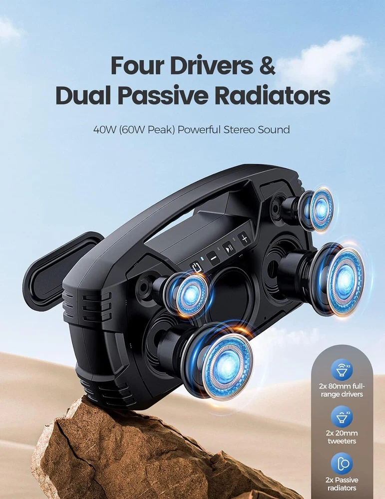 Bluetooth Speaker Outdoor IPX7 Waterproof Portable Wireless Speaker 40W(60 Peak)