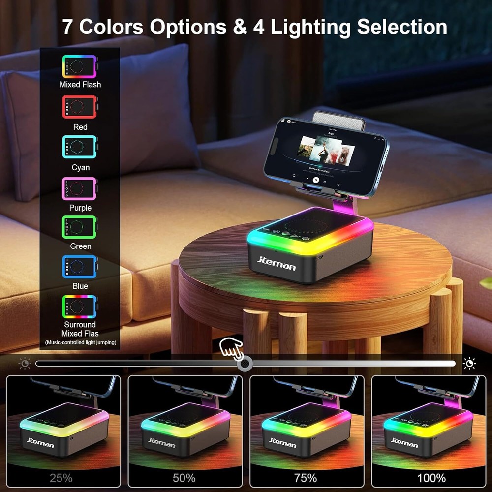 Gifts for Men Women, Cell Phone Stand with Bluetooth Speaker and Light, Portable Lanyard, Cool Tech Gifts for Dad Mom Husband, Unique Birthday Gift Ideas Item Description 【Big Stereo Sound】Our phone stand with speaker is loud and clear, built-in 4Ω5W Power Speaker, provide HD stereo surround sound, allowing you to fully enjoy the pleasure of music. Upgraded Bluetooth 5.3, without any delay. The cool gadget is a great gift for him husband. (NOTE: Not a Power Bank) 【Bluetooth Speaker with Light】Our multifunctional Bluetooth speakers with light has 7 colors options, the rhythmic mode can be danced to the beat of the music. 4 kinds of brightness can be adjusted. Turn on the lights while enjoying the music, it's a real party atmosphere! PS: LONG PRESSING THE FIFTH BUTTON 3 SECONDS TO TURN OFF THE LIGHT. 【Adjustment & Reliable】The angle and height of the phone stand can be adjusted to the most comfortable viewing angle. Anti-slip silicone design, stability and strong support, not easy to move. To avoid the phone falling or phone stand speaker tilting, please do not pull the viewing angle over 90 degrees. 【Portable and Lightweight】Our portable Bluetooth speakers with foldable design, compact and easy to carry. The detachable lanyard makes it easy to hang on your hand or your bag. Lightweight but stable, it doesn't move easily even when playing loud music. Perfect for use at home, in the office, travel, indoor and outdoor. 【Universal Compatibility】The cell phone stand supports for most 4-13" smartphones, tablets, e-readers, Kindel, Switch, iPad and more. The wireless Bluetooth speaker compatible with iPhone, Samsung, Android smartphones, Computer, and any device with Bluetooth. 【Cool Gadgets for Men】It's a great birthday gifts for men women father, mother, wife, husband, friends and anyone you love. Also perfect for fathers day gifts, mothers day gifts, anniversary gifts, graduation gifts, retirement gifts, teacher appreciation gifts, Thanksgiving gifts, Christmas gifts and more. › See more product details Payment We accept payment only through PAYPAL Shipping We ship products worldwide through standard express courier service, it will reach within 7 to 10 days to abroad buyers, we ship the product after recieved clear payment and give full information about shipment to the buyer Return We accept product return within 7 to 21 days from delivery date but product should be in original position and not in damaged condition,the return shipping charges will be buyer responsibility