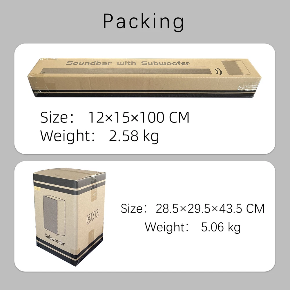 Product Description Bluetooth Subwoofer Audio BS-18E Heavy Bass Fidelity Sound Quality Home Theater Sound Blaster Echo Wall Speaker Features: 1. Bluetooth Soundbar, 2.1 Surround Sound Stereo Soundbar. 2. Professional, Multifunctional TV Soundbar, Simple design, Fashionable style, Bluetooth, HDMI, Coaxial, Optical, AUX, USB and more audio input, Passive subwoofer with high stability, to avoid delay and bring us good sense of experience. 3. Wireless bluetooth connection, Bluetooth 5.0, High stability, high-fidelity,low-latency. 4. Simple&Fashionable, Cable length 3M. 5. Stereo Surround sound. 6. Private cinema at home. 7. Easy to install, easy to use. Place On The TV Cabinet or Hang On The Wall. Wall-mounted operating instruction: ①Use suitable tools to drive the glue column into the wall. ②Use screws to fix the wall-hanging plastic part on the plastic column. ③Lock the screws to the corresponding screw holes on the back of the soundbar, and reserve about 5mm screws to protrude. ④Align the plastic parts on the wall to hang the soundbar, and pay attention to safety during the process. Specifications: Color: Black. Bluetooth Version: V5.0. Size of soundbar: 96x6x5.5 CM Weight of soundbar: 1.76 kg Size of subwoofer: 23x24x34 CM Weight of subwoofer: 3.9 kg Power source: DC 15V/3A Configuration: HF+MF+LF+ Guiding tude Package included: 1 x Speaker 1 x Subwoofer Audio 1 x Remote Control 1 x Power Cable 1 x USB Cable 1 x 3.5mm RCA Cable 1 x Audio Cable 1 x English User Manual About Us Shipping Terms Returns Contact Us About Item All items sold by us are being described to the best of our abilities, as accurate as possible, and with utmost conscientiousness on our part. However, to avoid any potential oversights, I respectfully request your assistance in helping us to make this a mutually satisfactory transaction by THOROUGHLY reviewing item description and photos, and asking all questions PRIOR TO BIDDING. Customer Satisfactory 1.We back our commitment with superb service, 100% full money back and a customer satisfaction guarantee. 2.I am here and ready to assist you with any questions or concerns you might have before or after the purchase. 3.My goal is to make sure you are a happy customer and pleasant shopping with us. Feedback If you are satisfied with the purchase and our total service, your comment is very important in our business success. Please take a minute to leave us a positive feedback with an overall Detailed Selling Rating (DSR) of 5. Our eBay account setup auto feedback, so eBay system gives you automatically Positive feedback back after your positive feedback left. IF YOU PLAN TO GIVE US A NEUTRAL/NEGATIVE FEEDBACK OR OPEN EBAY/PAYPAL CASE, PLEASE WRITE TO US IMMEDIATELY SO THAT WE CAN DO OUR BEST TO RESOLVE YOUR PROBLEM. United States Buyers Same business day free shipping within United States All orders will be shipped through USPS First Class, UPS and Fedex depends on the weight of the items. Shipping Time Usually ,Parcel will be delivered 2-5 working day include Handling time. Sometimes shiping time may has a little delay, such as Bad wether,Holidays We stand behind everything that we sell and will do everything possible to assure you are satisfied. When you receive your purchase if you are not 100% satisfied, please sent me ebay message and we will do our best to make you happy. If you still want to return your purchase, simply ship the item(s) back to us and we will refund your original purchase price and the original shipping charge. Buyers are responsible for the postal cost of returning the items. We must be notified of the intent to return your item within 30 days of receiving the item. Items returned must be in the same condition that they were received. How to return 1,Please ask us for return address . 2,Shipping back the package . The RMA#(Return Merchant Authorization Number = Your ebay ID) must be clearly written on the return package ,Otherwise the package will be refused. 3,Sent us the return tracking number. 4,All returns will be inspected prior to a credit being issued. 1:Returns are accepted within 60 days of purchase. 2:All returned items MUST BE in the original packaging. 3:We will be happy to assist you if if any item needs to be returned or replaced 4:Please don't open a return request before contacting us first to solve, many thanks. Sent ebay message in English If you have any questions, our Customer Service staffs welcome you to sent me ebay message. We strive to answer all questions and resolve any problems as quickly as possible. Business Hours: Monday-Saturday 9:00-17:00 About Us About Item All items sold by us are being described to the best of our abilities, as accurate as possible, and with utmost conscientiousness on our part. However, to avoid any potential oversights, I respectfully request your assistance in helping us to make this a mutually satisfactory transaction by THOROUGHLY reviewing item description and photos, and asking all questions PRIOR TO BIDDING. Customer Satisfactory 1.We back our commitment with superb service, 100% full money back and a customer satisfaction guarantee. 2.I am here and ready to assist you with any questions or concerns you might have before or after the purchase. 3.My goal is to make sure you are a happy customer and pleasant shopping with us. Feedback If you are satisfied with the purchase and our total service, your comment is very important in our business success. Please take a minute to leave us a positive feedback with an overall Detailed Selling Rating (DSR) of 5. Our eBay account setup auto feedback, so eBay system gives you automatically Positive feedback back after your positive feedback left. IF YOU PLAN TO GIVE US A NEUTRAL/NEGATIVE FEEDBACK OR OPEN EBAY/PAYPAL CASE, PLEASE WRITE TO US IMMEDIATELY SO THAT WE CAN DO OUR BEST TO RESOLVE YOUR PROBLEM. Shipping United States Buyers Same business day free shipping within United States All orders will be shipped through USPS First Class, UPS and