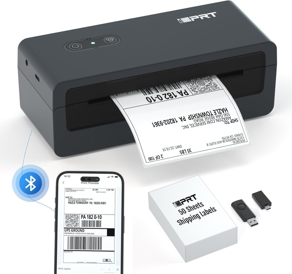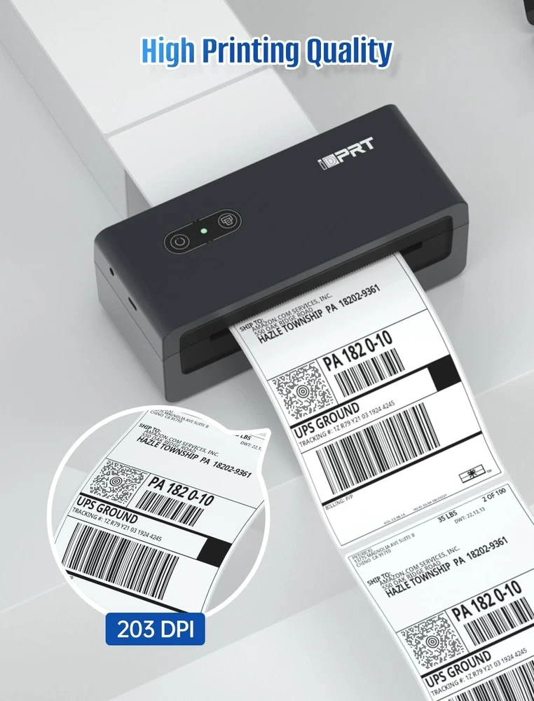 Shipping Label Printer 4x6 Bluetooth Thermal Label Printer for Small Business and Shipping Package, Support Android, i, Windows, macOS, Widely Used for , Shopify, Bluetooth Label Printer - Download the "HereLabel" app to print via Bluetooth on your thermal label printers for i(iOS) & Android. (Note: can't be connected to Bluetooth directly, they need to be connect and print through the "HereLabel" app.) Shipping Label Printer - Windows / macOS all support Bluetooth connecting via software "Hanin Drive Management" / "Driver BT Tool". (Since we have updated it, please scan the QR code on the printer cover to go to the website to download, not install from the USB drive). And laptops can also print via USB after install driver. Strong Platform and Label Compatibility - The thermal label printer can be used with almost all mainstream platforms, including , Shopify, , USPS, UPS, Etsy, PayPal, Poshmark, etc. (Note: Please set the logistics label on platform to the same size as the thermal paper , such as 4X6, then download and save it as PDF. Then upload it to the editor APP "HereLabel" for printing.) Cost Saving & High Speed - Our Thermal printer, inkless, no toner required. Each thermal paper is only $, cheaper than ink cartridges and paper. The wireless thermal printer has high-speed printing (100mm/s), helping you improve your work efficiency and make your business great, suitable for small businesses, offices and home use. Compact Label Printer for Small Business - The wireless label printer supports printing thermal paper widths from " to ". The Desktop label printer has functions of automatic calibration, positioning, intelligent self- and paper return.Bluetooth thermal label printer is compact and saves desk space, making it easy to use in home, office and warehouse. Perfect for printing shipping labels, mailing labels, barcode labels, etc.