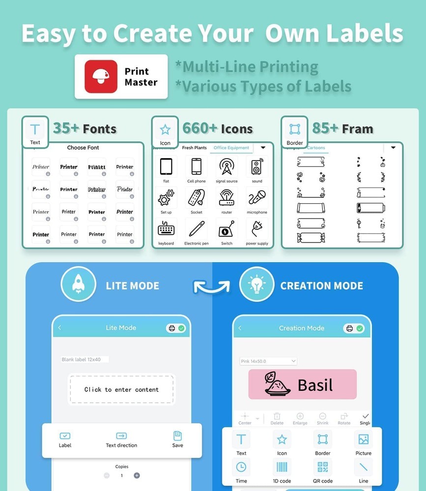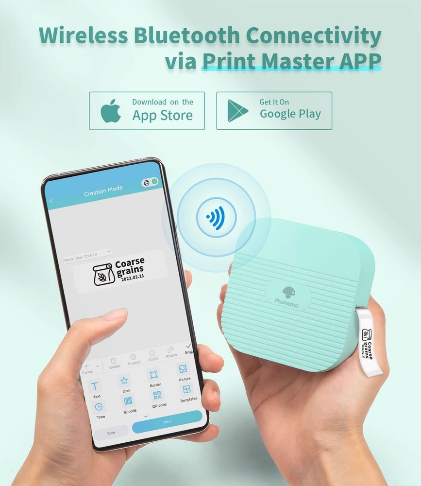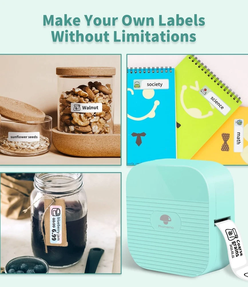 Feature: Mini & Bluetooth 🏷 Phomemo Q31 label printer machine weighs only 98 g, the compact size fits in your palm and is easily carried around in pockets. Connection via Bluetooth to your iPhone or Android device. Pratical for Organization The mini label maker machine supports different printing width from 6 to 15 mm. It produces name tags, date tags, category labels, notes and so much more for your home and office organization. Also designed for small business usage to print price tags and small package labels.(Compatible with Phomemo Q31/Q30/Q30S labels) Convenient Label Editing 🏷 Edit on phone via app “ Print Master ”, providing more possibilities and convenience vs. traditional keyboards. Various fonts and icons are available to achieve ideal effects. It takes only few minutes to customize your own labels and you could save labels for later re-use. Economical Choice 🏷 Phomemo Q31 thermal label maker machine generates patterns on thermal labels by heating, requiring no ink or any other consumables. It offers reliable printing quality in 203 dpi for black & white texts. The Q31 Label Machine supports two types of power supply, you can choose to start it by inserting 4 AAA batteries or plugging it into a USB charger. Get Started Easily 🏷 Everything you need to kick off is in the package - the printer, already equipped with a label roll(12*40mm,White), a USB charging cable and the instruction manual. If you need help, please feel free to contact us. Specifications Material: ABS + Metal Print Media: Thermal Paper Size: Approx. 3.23 x 3.23 x 1.28 inches Paper Capacity specification: 6/12/14/15mm Package Weight: 98g Color: White、Black Power Supply:4 AAA-batteries (not include) or USB Charge Interface: 5V, Micro USB Connection: Bluetooth 4.2 Support System: for IOS + Android Resolution: 203dpi Network Printing: supported Printing paper: 6/12/14/15 mm ATTENTION: Please connect the printer to your phone via the Printer Master app. Package Included: 1 x Label Maker Machine 1 x Label Sticer(12*40mm,White) 1 x USB Cabel Lifetime Technical Support