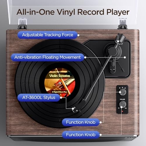 Return Policy Fast Delivery Trusted seller All in One Vinyl Record Player,Bluetooth Turntable Built in 4 Stereo Speakers Phono Preamp,High Fidelity Turntables for Vinyl Records with Magnetic Cartridge AT-3600L MM,Belt Drive 2-Speed,Auto Off Product Description 【All-in-One】: This turntable spins at both 33 and 45 RPM speeds,the vinyl record player with 4 built in speakers(Bass 4" X2,4Ω 30W;Treble 2"X2,8Ω 10W) can make you enjoy high-fidelity sound. It also can play other devices’ music wirelessly by Bluetooth or using the Aux-in port. For better or louder sound, connect external speaker via RCA cable. Our turntable record players for vinyl with speakers includes both Phono and Line outputs that can play with or without a Phono equalizer. 【Magnetic Cartridge Stylus】: The AT-3600L (MM) cartridge can track your record’s grooves with precision for high-definition audio. While a universal headshell allows users to change cartridge stylus easily. 【Adjustable Counterweight】: The adjustable counterweight makes turntable record player produce rich and warm audio freedom from noise and distortion.Note: The counterweight scale should be adjusted to 3.5g for best results,listen to your favorite music. 【Bluetooth Streaming】: Built-in Bluetooth 5.0, you can enjoy your vinyl collection with all the convenience of wireless technology. You can listen to your favorite music from your Bluetooth compatible device like iPhone and Android smartphones, tablets, PCs, usb-mp3 players by this vinyl record player with speakers easily. 【Exquisite Appearance】: The turntables for vinyl records are made of wood and metal materials with a unique sense of layering. The removable dust cover keeps your record player clean and new. Great for home decoration & entertainment. The vinyl record player Bluetooth will be a perfect gift for birthday and Christmas, especially for a music lover. 【Support Recording via USB to PC】: Connect this turntable to your computer via USB and encode your favorite vinyl audio into MP3 music files for digitalized storage and playback on your computer, smartphone or tablet. Preserving classic music allows you to take your favorite vinyl records with you wver you go. Shipping Returns Payment Shipping Shipping is FREE to all addresses other than APO/PO boxes in the lower 48 states. All our stock ships from US-based warehouses. Shipped via USPS or UPS (depending on location and package weight) Unless stated otherwise, all orders will ship within 24-72 hours of your payment being processed. Check our feedback to see the great reviews of FAST shipping we offer. Returns Seller does not accept returns Payment We currently accept payment via eBay managed payments only. Once payment is cleared, we will dispatch your shipment within 1-3 business days. Please refer to the "Shipping" tab for more information regarding shipping speed to your destination.