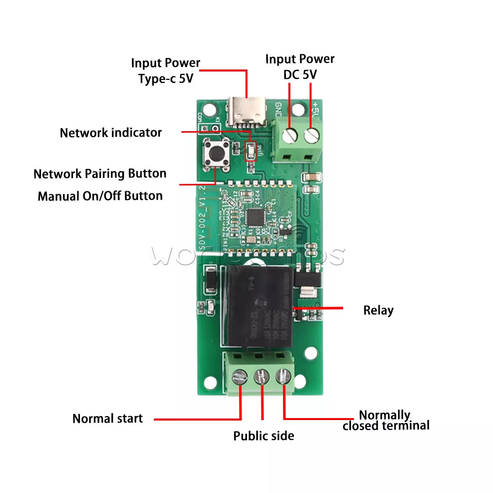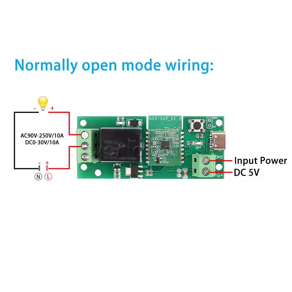 Home Arduino Module Sensor Chips About Us Features 1. easy to use, this wifi control module, no programming, just need to download an APP, connect to WIFI to control the self-contained cloud, support 2.4G remote control. 2. With indicator, with signal indicator, relay suction indicator. 3. Small power consumption, board power consumption less than 1W static current 80MA. 4. Support wireless frequency, Wifi 2.4GHz b/g/n + Bluetooth, can be timed, delayed, sharing devices to support more than one person to control together or a person to control multiple switches. 5. Wide range of use, can be applied to smart home, wifi control, short distance remote control, etc., can be connected to different types and brands of home appliances. DC 5V Input voltage: DC 5V or Type-C-5v Maximum power: 2200W/10A Wireless frequency: Wifi 2.4GHz b/g/n + Bluetooth Operating temperature: -20° C ~ 70° C Size specification: 71(L)*31(W)*19(H)mm DC7-32V Input voltage: DC7-32V or type-C-5V Maximum power: 2200W/10A Wireless frequency: Wifi 2.4GHz b/g/n + Bluetooth Operating temperature: -20° C ~ 70° C Size specification: 69(L)*41(W)*20(H)mm Please check the following before using the device: 1.Your smartphone or tablet is connected to a 2.4G WIF1 that can access the Internet (5G WIFI is not supported for the time being). 2.Your cell phone is turned on Bluetooth. 3. For Android phones or tablets, the system must be version 4.0 or above. 4.Use Apple phone or IPad must be able to access APP store and download APP. 5.If your wireless router has set up MAC address filtering please enter the router background to turn off the MAC filtering function first. Instructions for product use: ①Search for "eWelink" in major application markets to download and install. ② During the installation process, if there is a prompt for permission requests, please select allow. ③Register for an account and log in to E-Weblink. ④Correctly connect the wires according to the diagram. ⑤ Turn on the power after completing the wiring. The default setting of the device is off for incoming calls, you can change the setting to on or hold for incoming calls in the APP. Note: The switching principle of this device is to control the on and off of the fire wire of the circuit, so as to realize the working and stopping of electrical appliances. Add device ①Reset the device (if the network indicator light (blue light) is already in blinking state (blinking 3 times and stopping 1 time) after power on, skip this step). ②Power on the device ③Long press the network pairing button, hold it for about 5 seconds, until the network indicator (blue light) is blinking 3 times and stops 1 time, then you can carry out the EWL APP pairing. List 1 x Module 1 x Instruction manual Payment Shipping Refund Payment Customer satisfaction is our top goal. We believe our items are so outstanding. All products are quality checked. They are new and in good condition when shipped to our customers. We are convinced you will be happy with your Purchase. If product is defective or damage upon arrival, or wrong product shipped, please contact us immediately. Returns accepted within 30 days of delivery date and item must be in original new condition. Please contact us first if you have any problems/questions/concerns. We will be happy to resolve any issues you may have in a cordial and friendly manner. Shipping Please fill in the correct address and zip code and I will ship quickly! Refund If the item is defect when you receive it or you are not satisfied with it, please return it within 30 days for a replacement or money back. But the items must be back in factory condition. Please contact us and double check the return address before you return it.