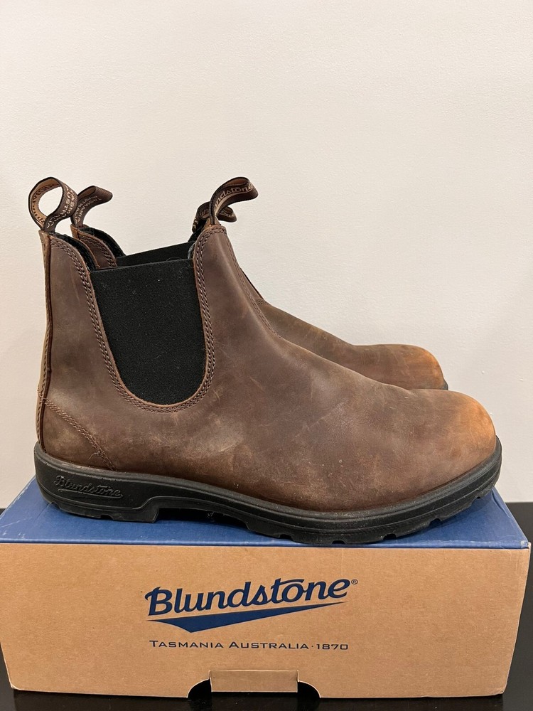 Crafted for durability and comfort, the Blundstone 1615 boots are a timeless addition to any man's wardrobe. These elastic-sided Chelsea boots come in a versatile olive green, easily pairing with both casual and more formal attire. The robust leather upper material ensures long-lasting wear while offering a smooth aesthetic. With a size 12 fitting, these boots provide ample room for a comfortable experience. The Blundstone brand is synonymous with quality, ensuring that these boots are not only stylish but also built to withstand the rigors of daily wear. Whether for work or leisure, the 1615 model is a reliable choice for any occasion.